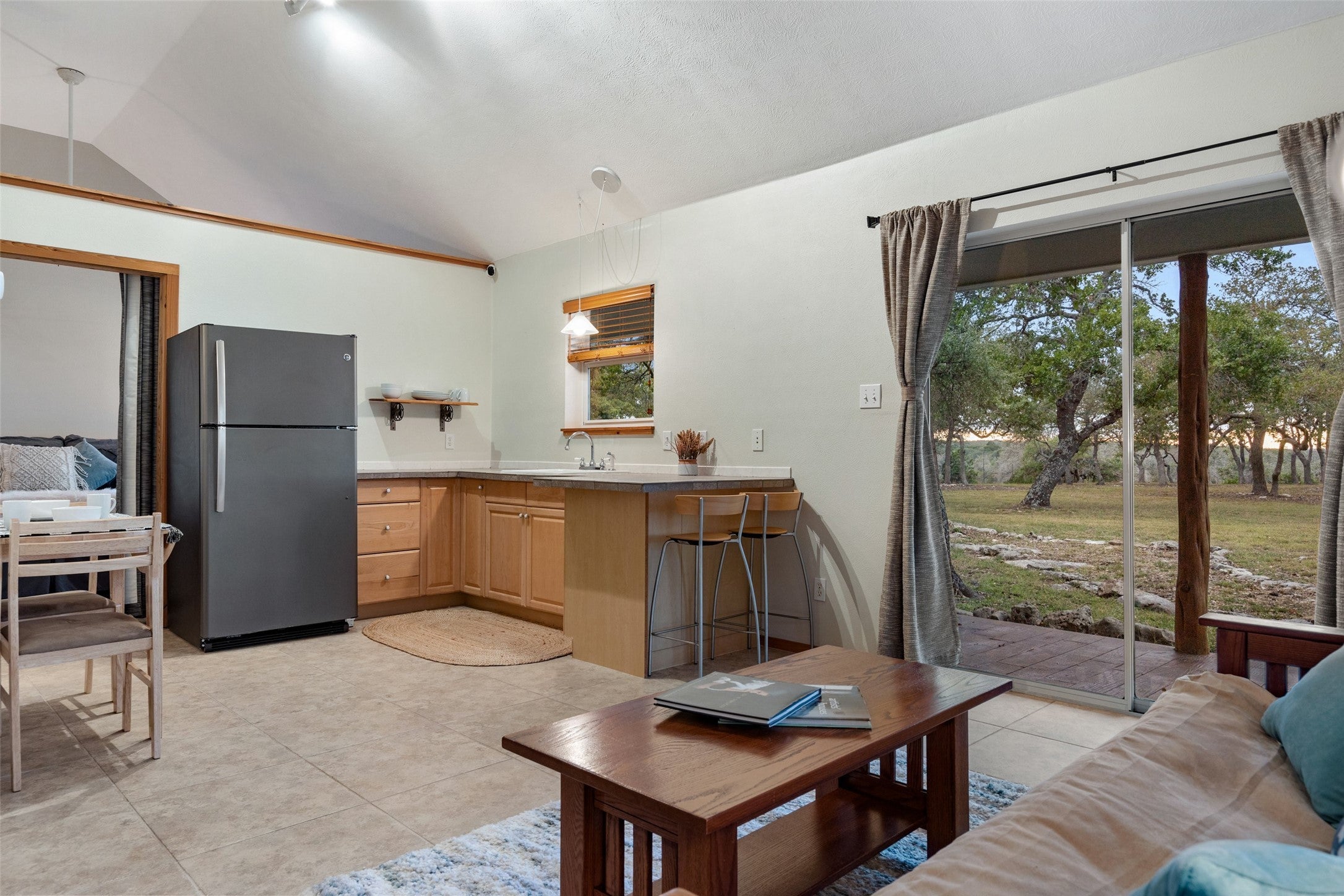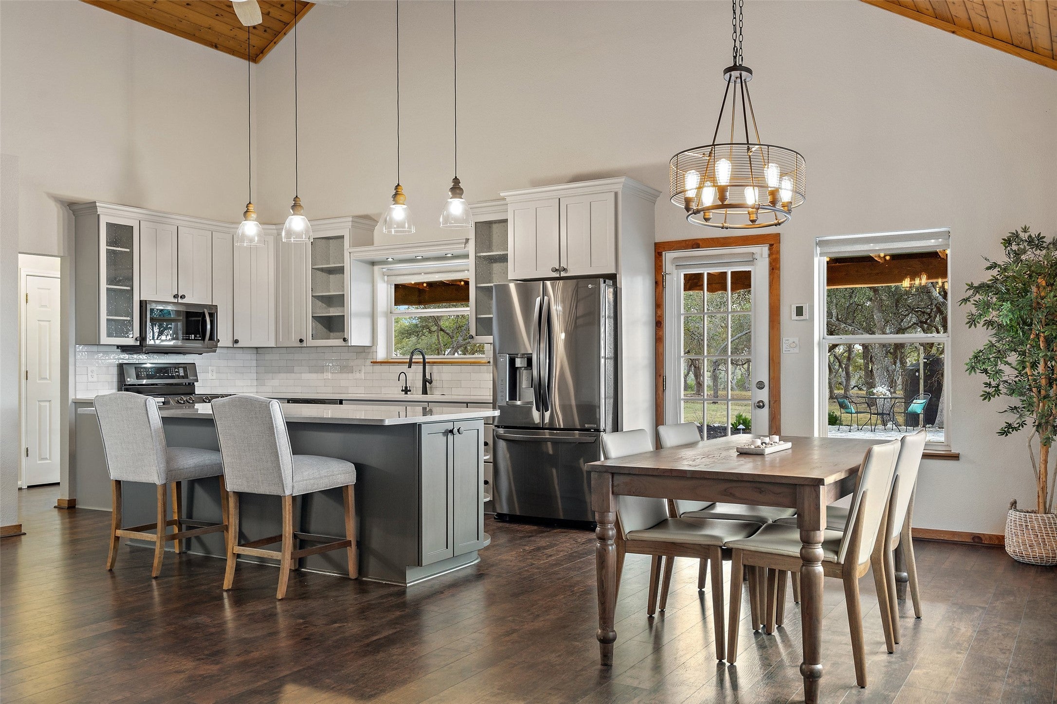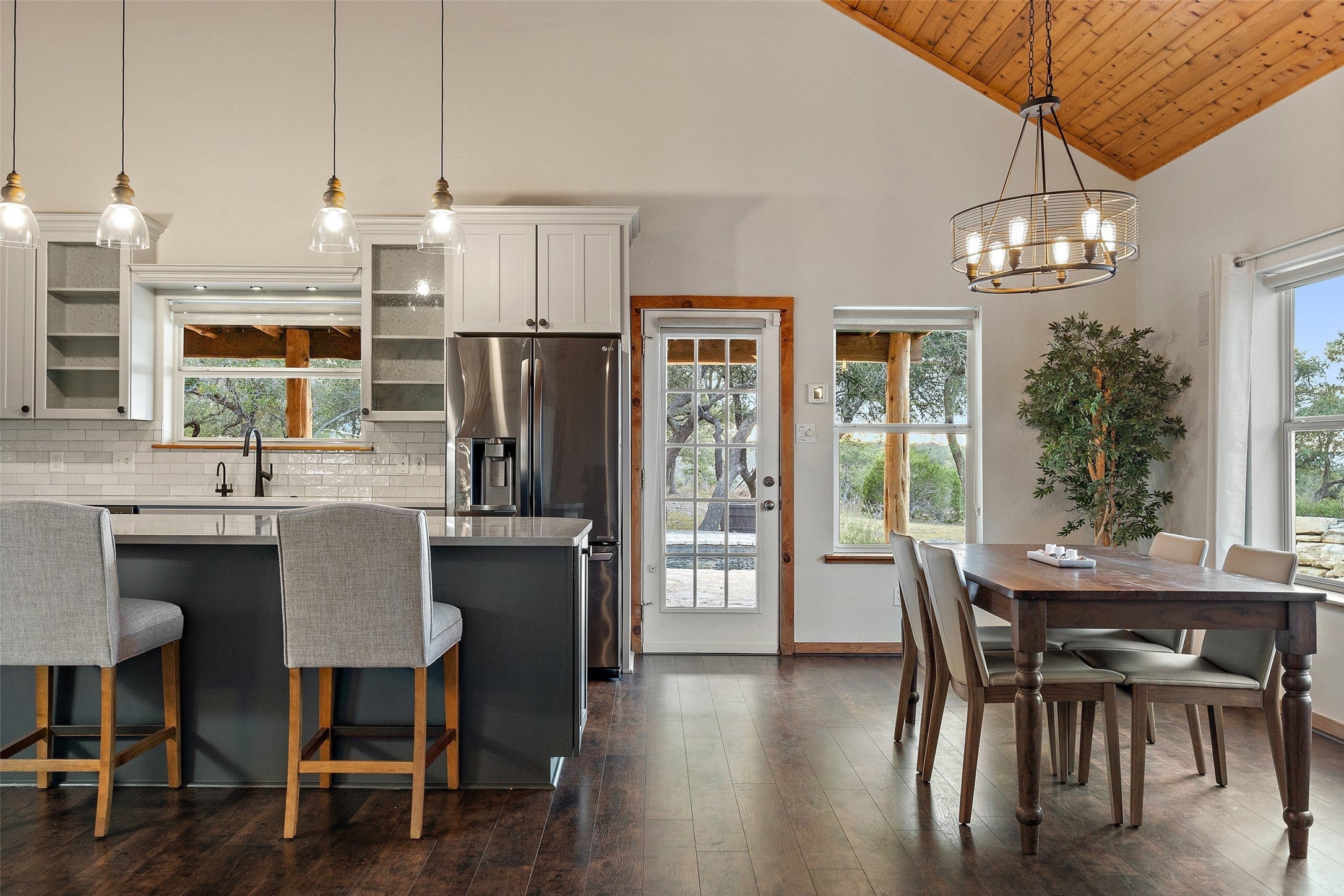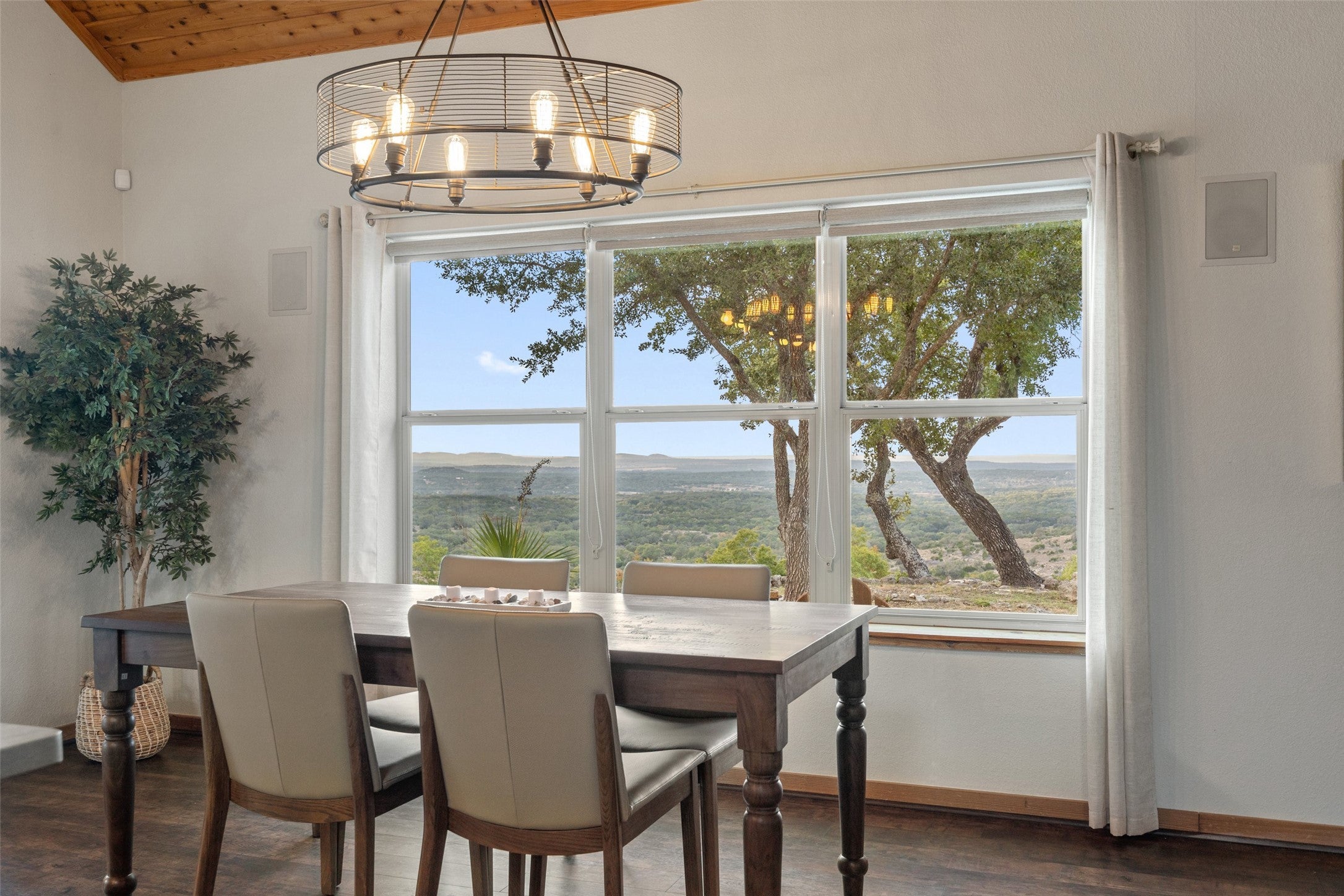 Transcendent Hill Country Views from this exceptionally private and gated 25+ acre Dripping Springs Estate in Blanco County. Comprised of an inviting 2600+ SF main home that captures the remarkable long-range vistas and rocked poolscape along with a fully appointed 520+/- guest apartment attached to the three-car garage and 1800+/- SF insulated metal building complete with heated and cooled office space. This ranchette lives much larger than its 25 acre footprint in light of the elevated and relatively flat topography but remains easy to maintain. Rainwater harvesting system in place along with a well. Studded with grand post oak trees throughout and a serene habitat for whitetail and songbirds, the land is equally as stunning as the view. A high fenced garden sits behind the guest apartment and is ready to be planted. Efficiently located near Austin and San Antonio, just 15 minutes to local shops and restaurants. Rainwater catchment and well currently in place, outside of city limits, and lightly restricted. Pets negotiable.
