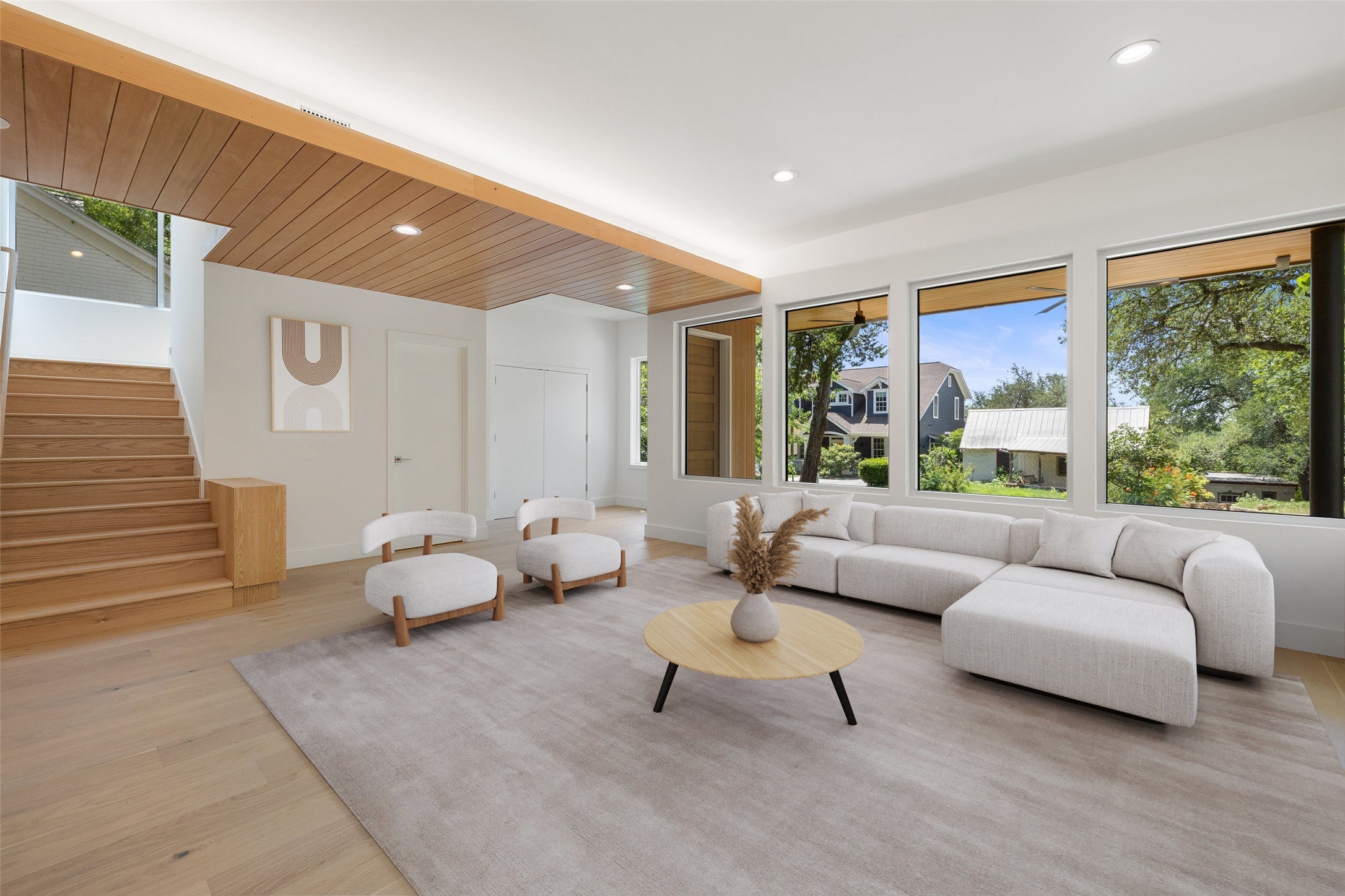 - Frame, Stone, Cedar, Glass, Low VOC Insulation, Spray Foam Insulation, Wood Siding