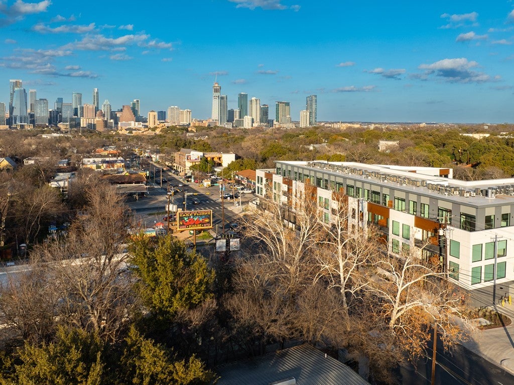 Welcome to One Oak, an exclusive boutique condo community located in the heart of Austin’s sought-after Bouldin neighborhood in 78704. Just steps from the vibrant South First and South Congress corridors, this Canopy Penthouse Collection residence seamlessly blends elevated design with one of the city’s most walkable and desirable locations. Inside, an open-concept layout of this One Of A Kind Penthouse is brought to life by floor-to-ceiling windows that frame sweeping views of Downtown Austin and Bouldin Creek throughout the unit. The chef’s kitchen is a modern showpiece, featuring sleek Italkraft cabinetry, quartz countertops, and a premium Bosch appliance package—perfectly balancing function and style. The primary suite is your personal sanctuary, offering a spa-like bath with a freestanding soaking tub, walk-in shower, full-wall tile, dual vanities, and backlit mirrors. The primary bedroom features stunning city views, adding to the penthouse’s elevated lifestyle. The 475 sq ft rooftop deck spans the length of the unit and is an entertainer’s dream with panoramic views, perfect for relaxing or hosting under the Austin sky. Whether it’s lounging, dining, or creating your own outdoor retreat, this space offers unmatched versatility and charm with vibrant views of the Austin skyline coupled with greenery views of Bouldin Creek. Additional features include two dedicated garage parking spaces, plus access to resort-style amenities: a sparkling pool with BBQ grills and a fire pit, a state-of-the-art gym, yoga lawn, chic owner’s lounge, co-working spaces, and even cold storage for grocery deliveries. One Oak delivers luxury, lifestyle, and location—right in the heart of Austin.
