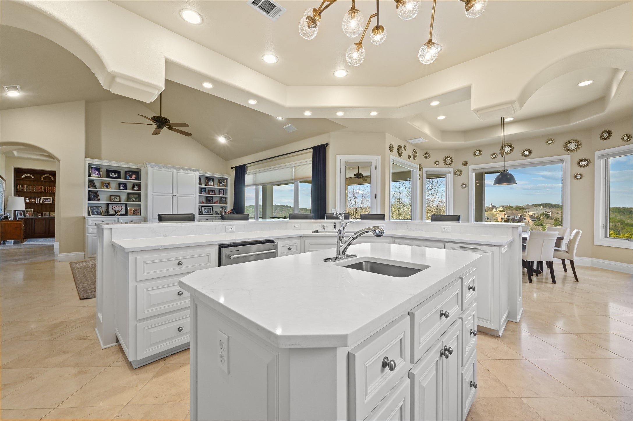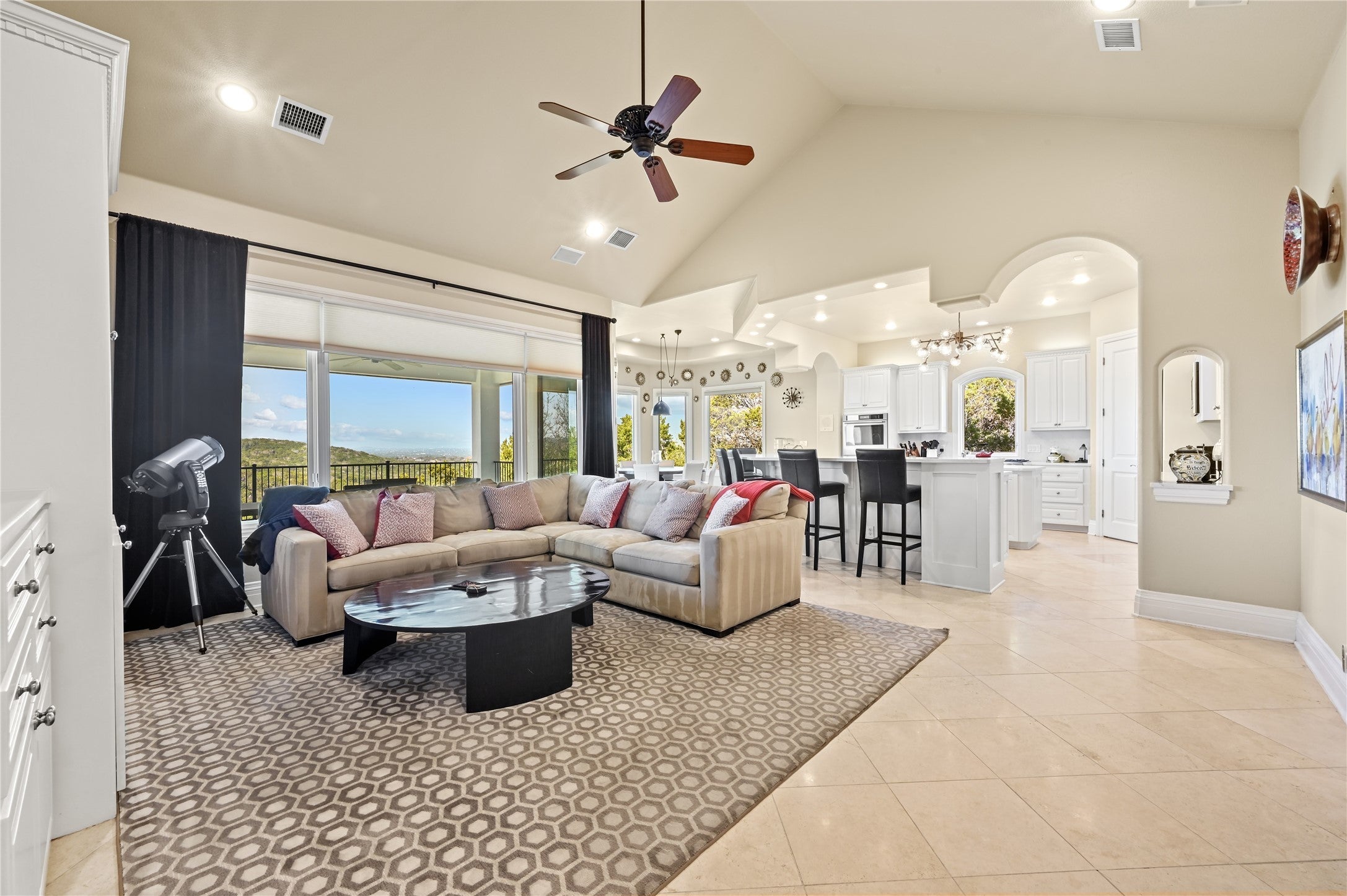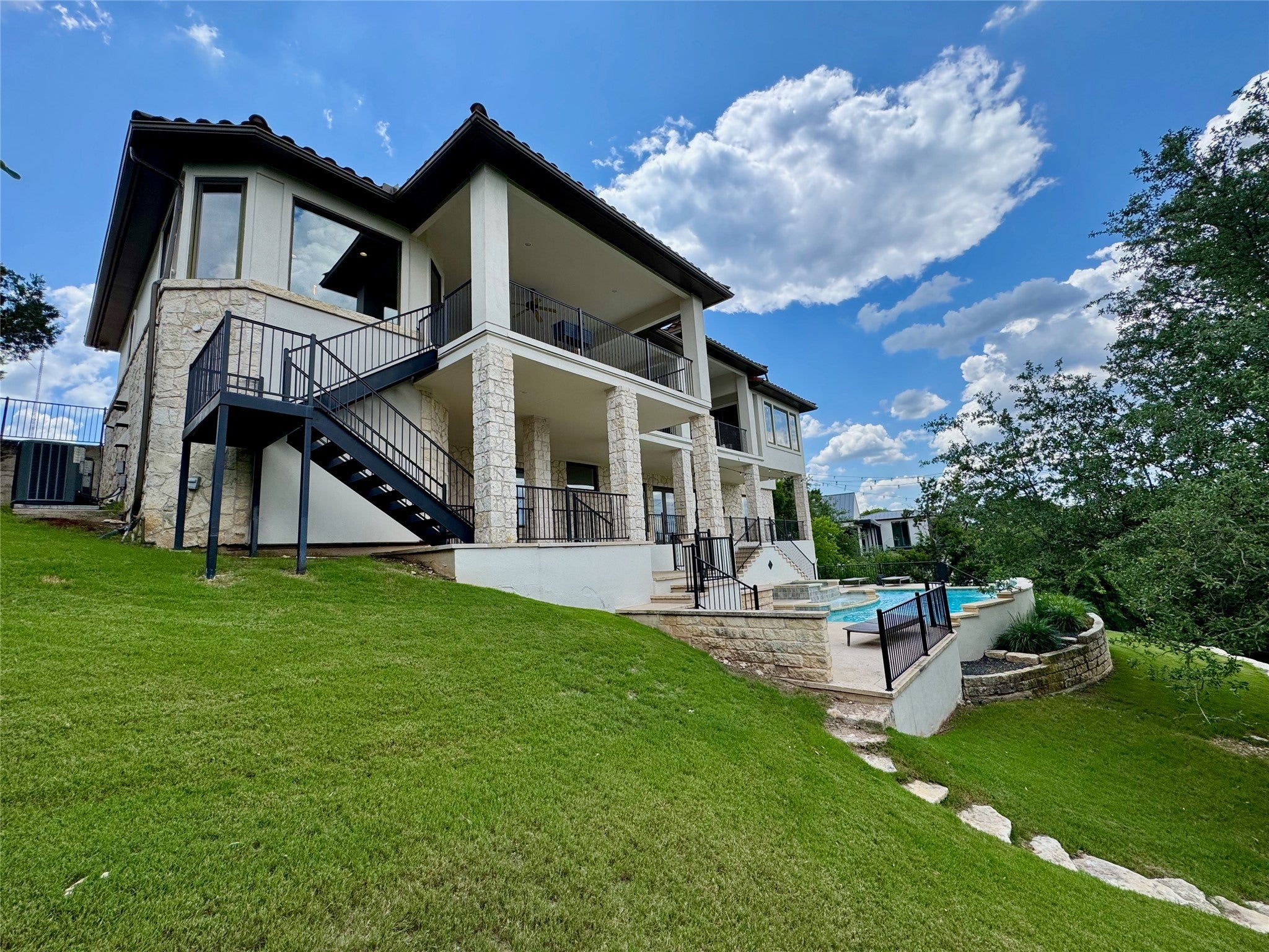 Discover luxury hilltop living in this spectacular greenbelt home, offering breathtaking panoramic hill country views. Thoughtfully designed with a coveted flipped floor plan, the main level boasts soaring ceilings, an abundance of natural light, and an effortless open flow perfect for entertaining. Enjoy multiple balconies and generous outdoor spaces that overlook the sprawling yard and resort-style swimming pool. The freshly updated entertainer’s kitchen serves as the heart of the home, now featuring stunning new countertops and professional-grade stainless steel appliances, including a center island, breakfast bar, and dual ovens. Luxury continues into the oversized owner’s suite, a true retreat complete with a private sitting area, cozy fireplace, and a spa-like bath updated with new countertops, dual vanities, a soaking tub, and a walk-in shower with multi-body spray heads. The lower level offers four spacious bedrooms, three additional bathrooms, a dedicated homework station, extra storage, and a large game room that opens to the covered patio and pool area. A bonus flex space is perfect for a home gym or pool house. Nestled in a peaceful Westlake neighborhood, this home is minutes from Austin Country Club and the vibrant shops and restaurants of Davenport Village. Zoned to the highly acclaimed Eanes ISD, one of the best school districts in Texas, this is an incredible opportunity to own a stunning home in one of Austin’s most desired neighborhoods. Now is the time to take advantage of this unparalleled offering! Schedule your private tour today!