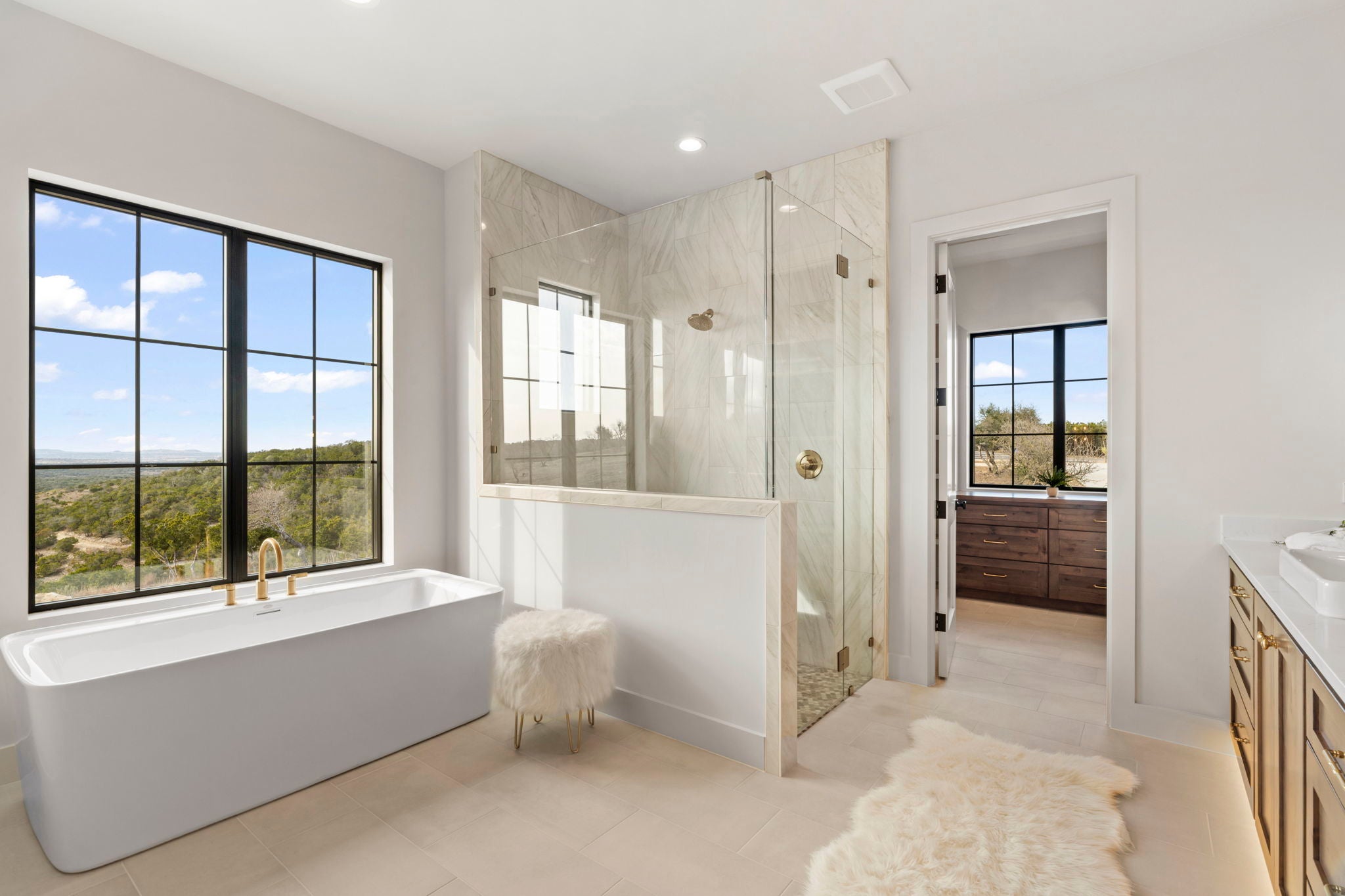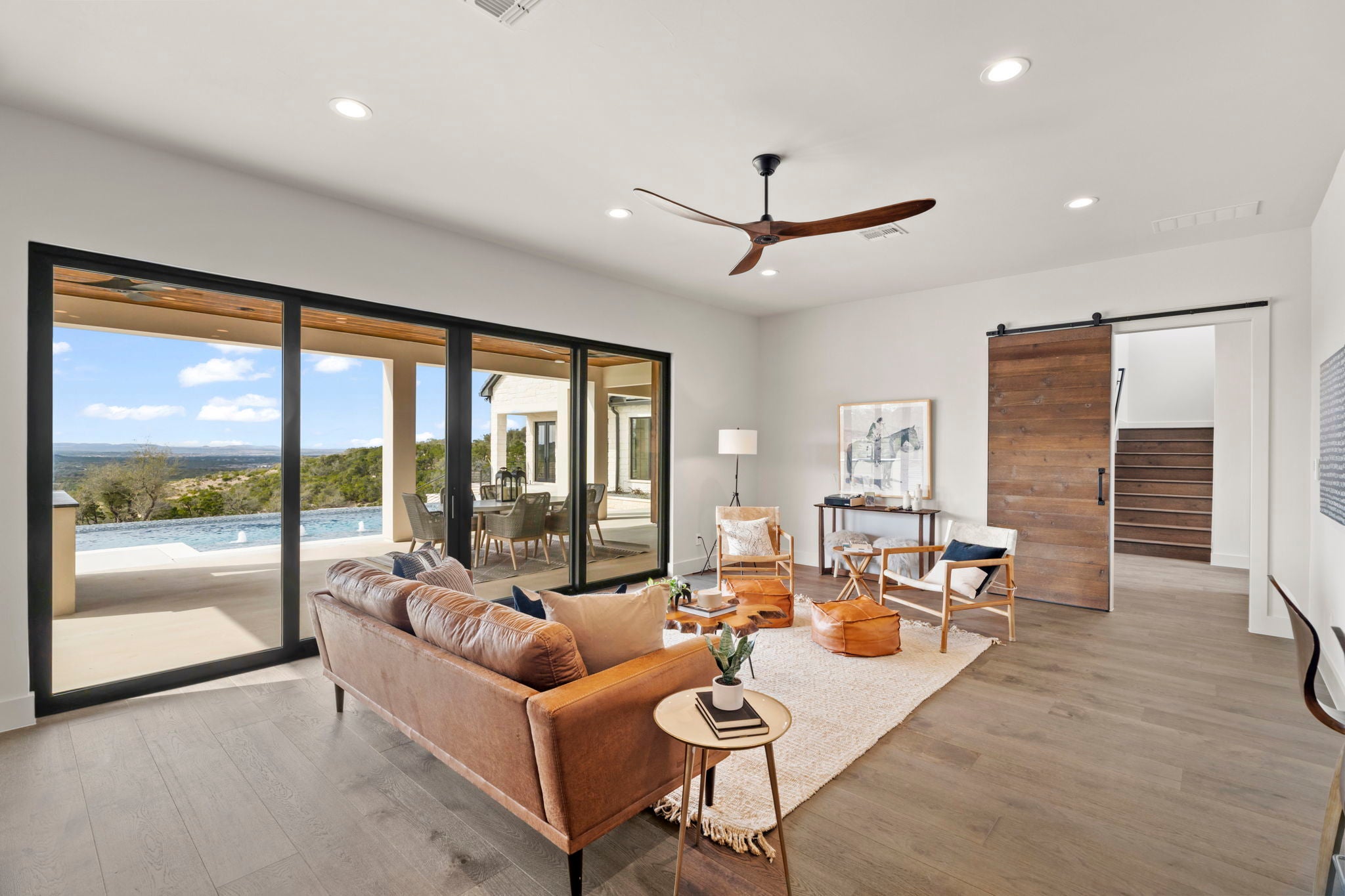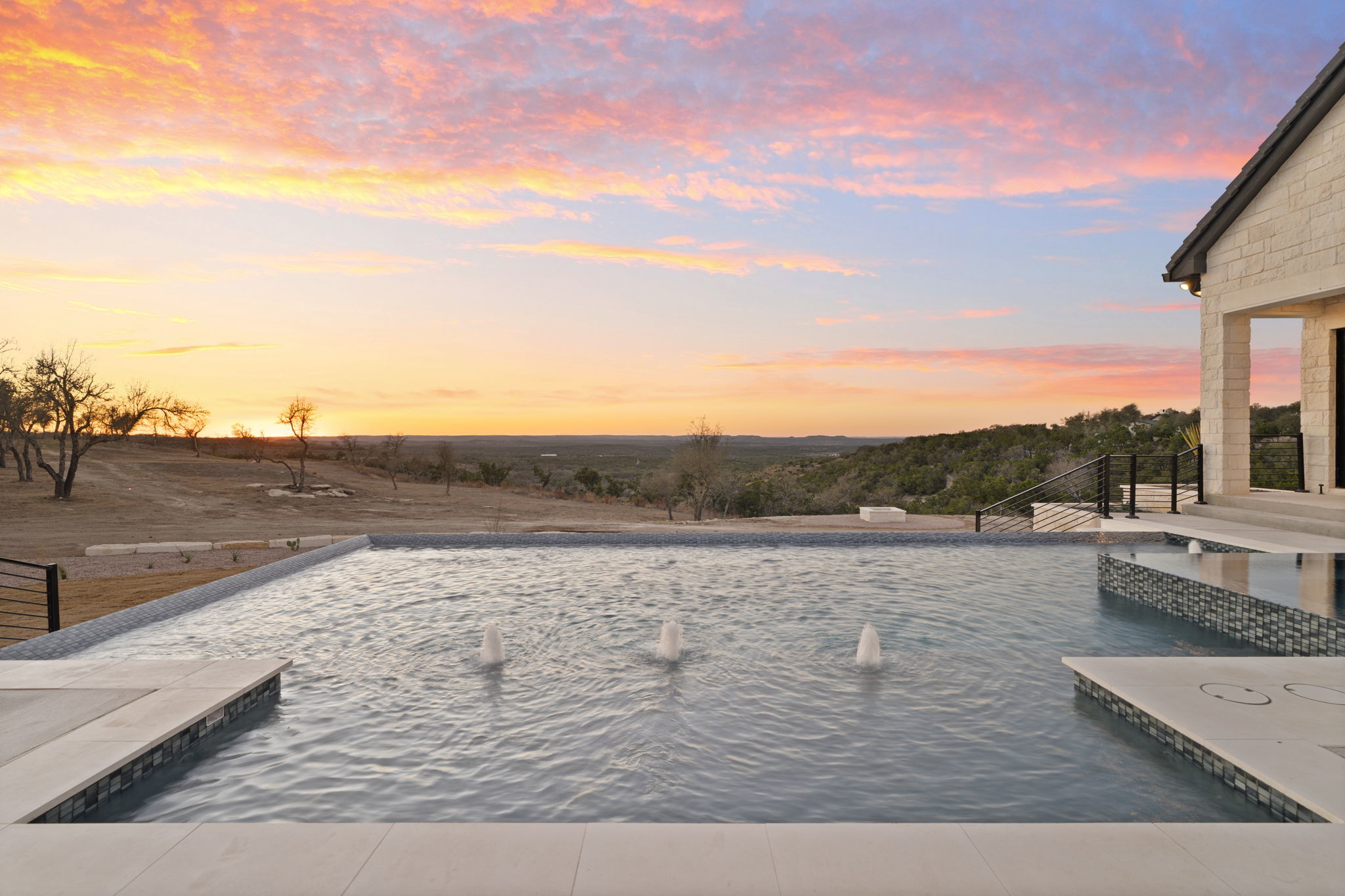 Luxury redefines Hill Country living in this breathtaking custom masterpiece by Keith Wing Custom Builders, now complete in the prestigious Ranches at Dripping Springs - gated 389-acre community with just 26 premium ranchettes, each 12 to 18 acres of unmatched privacy and natural beauty. Nestled amid iconic Texas landscapes, this expansive estate harmoniously embraces its surroundings—offering panoramic epic views, sweeping open spaces, a tranquil grotto, and the gentle whisper of a seasonal creek. Meticulously crafted with premium, top tier finishes and sophisticated luxury upgrades, the home delivers an effortless fusion of timeless elegance and everyday comfort. The gourmet kitchen flows seamlessly into a show-stopping butler pantry—complete with an additional dishwasher, dedicated refrigerator, double ovens, a deep sink, and exquisite custom wooden glass doors that add both functionality and refined beauty for effortless entertaining and storage. The primary suite is a true sanctuary: the master bedroom opens directly onto the expansive outdoor living area, inviting effortless indoor-outdoor flow and morning coffee with stunning Hill Country vistas. The indulgent master bath features his-and-hers walk-in closets, breathtaking custom cabinetry, spa-like sophistication, and large windows framing serene panoramic views that make every moment feel elevated. The crown jewel remains the unparalleled outdoor retreat: a stunning resort-style pool with cascading features, expansive covered and open-air lounging spaces, and a fully equipped gourmet outdoor kitchen—designed for seamless entertaining under the vast Hill Country sky. Sustainability in place with well and rainwater collection system. This is a rare, once-in-a-lifetime opportunity to claim one of the premier ranchettes in the heart of the Texas Hill Country—where natural beauty meets uncompromising luxury. A detailed spec presentation booklet showcases the exquisite finish-out selections.