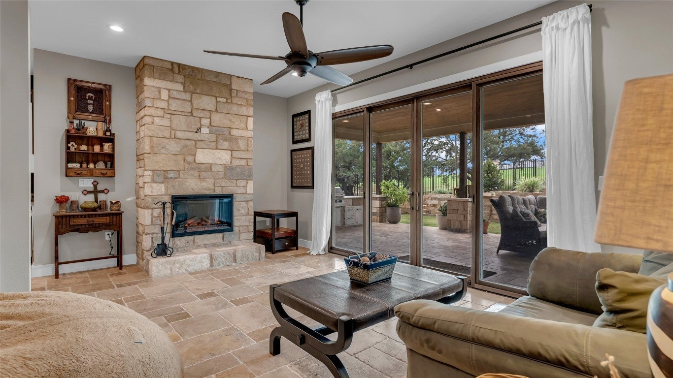 - Den, Electric, Living Room, Stone