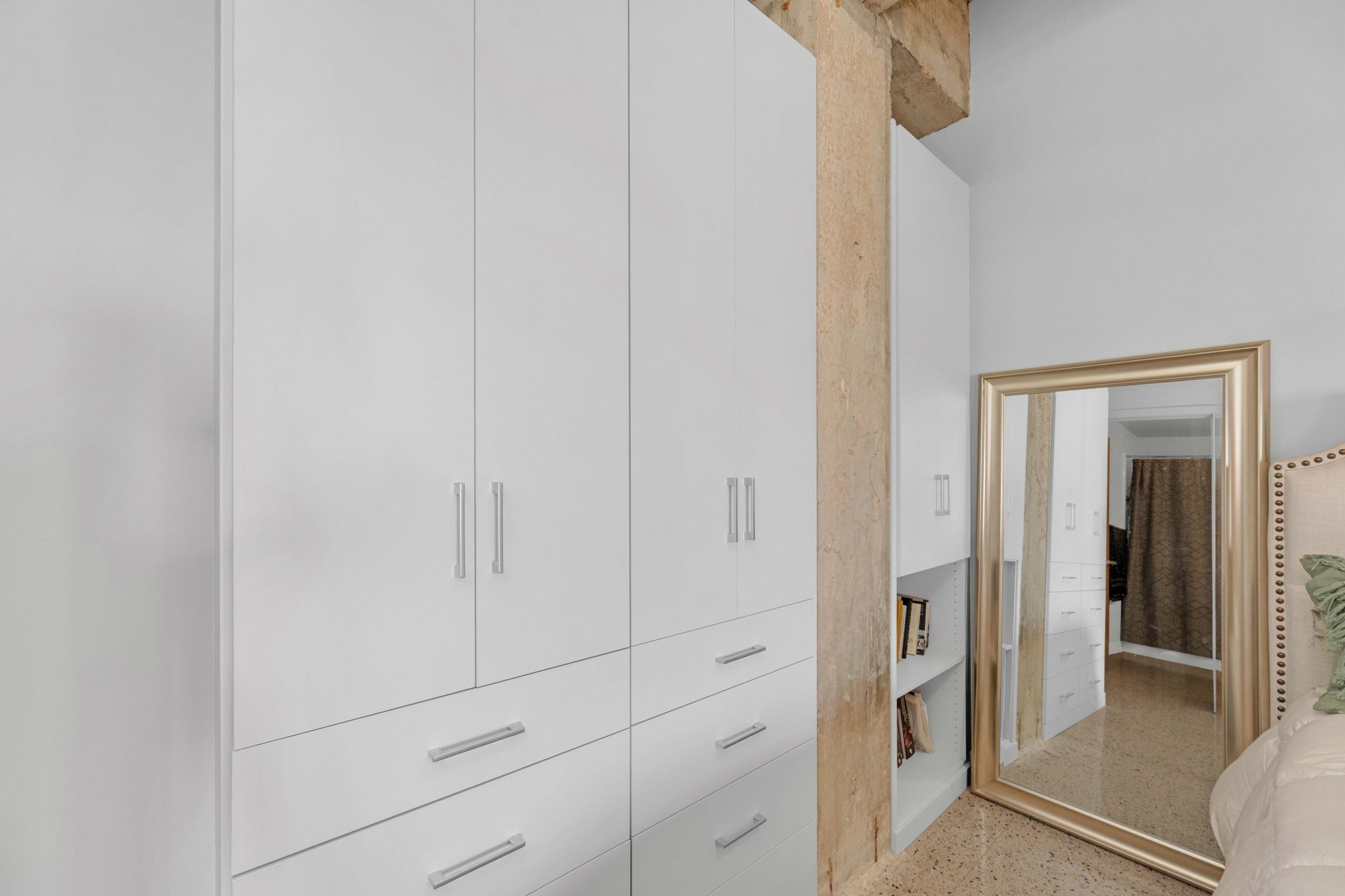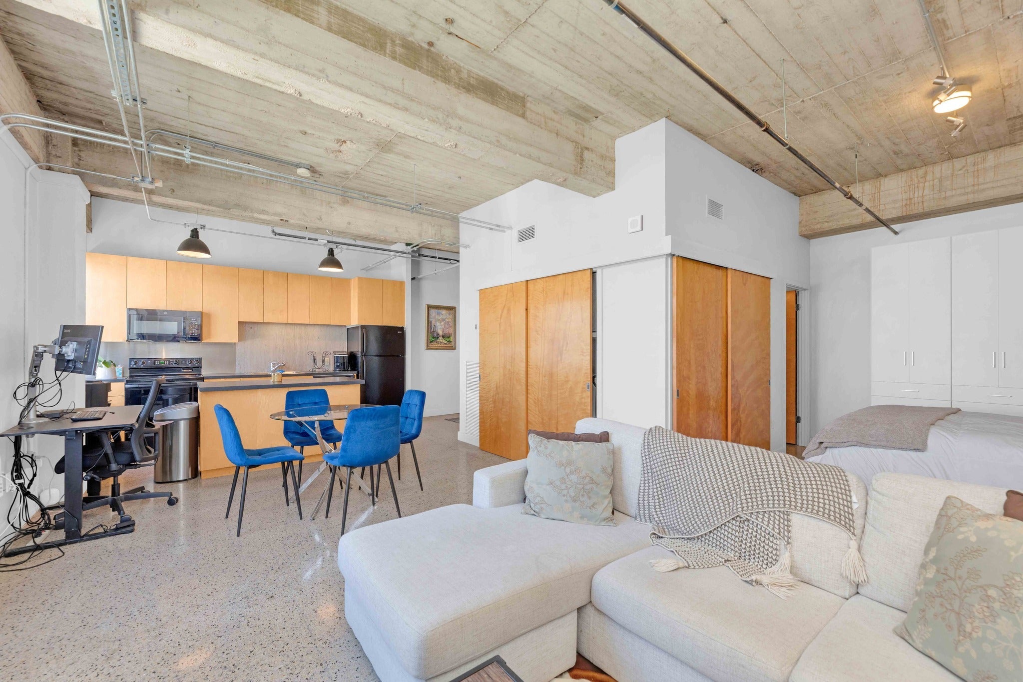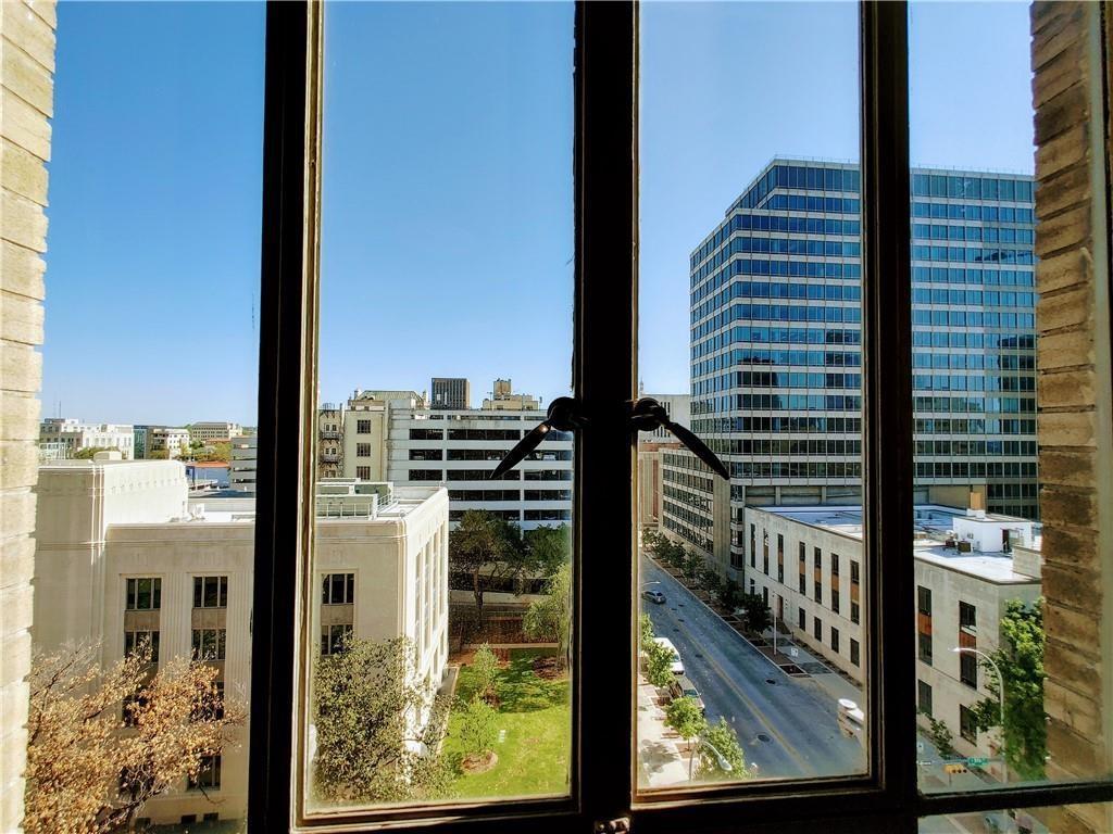 Experience downtown Austin living in this 8th-floor loft at the historic Brown Building. This 1-bedroom, 1-bath residence blends Art Deco architecture with modern updates in a highly walkable central location. Interior features include high ceilings, exposed concrete elements, and terrazzo floors, creating a distinctive loft-style design. The open-concept layout offers a kitchen with island seating, updated track lighting, and a flexible living area with city views. The north-facing orientation provides consistent natural light without direct afternoon sun exposure. The bedroom area is positioned for added privacy and includes recently installed custom built-ins, offering enhanced storage functionality. The floor plan also features a spacious entry corridor, ideal for additional storage, workspace, or flexible use. Additional features include an in-unit washer and dryer, window treatments, and one reserved covered garage parking space. The building offers controlled access, elevator service, a rooftop deck with city and Capitol views, fitness center, bike storage, recycling area, and wine locker availability. The building also features fiber internet availability providing high-speed connectivity options. Located one block from Congress Avenue and within close proximity to dining, retail, entertainment, public transportation, and downtown offices. This property offers a convenient, low-maintenance living option in a central location. Available furnished ($2,650/month) or unfurnished ($2,450/month). Pets considered with owner approval. Minimum lease terms and application requirements apply.