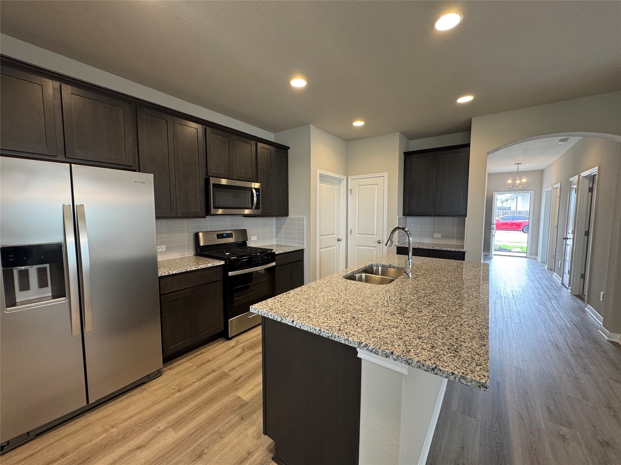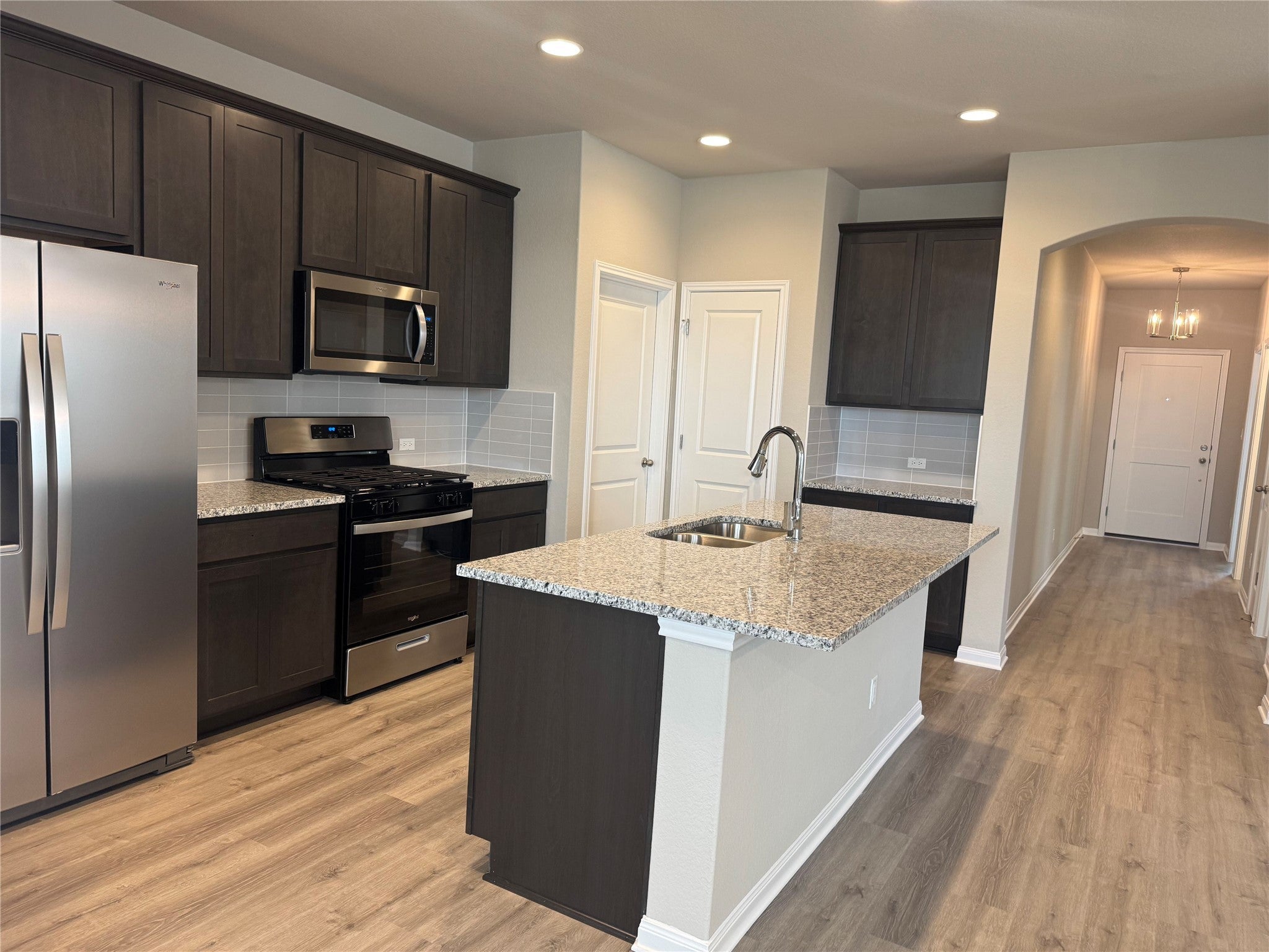 Welcome to Wellspring, a small private gated community in Round Rock offering comfort, convenience, and low-maintenance living. This thoughtfully designed single-story home features 3 bedrooms, 2 full baths, and an open-concept layout that balances everyday functionality with inviting gathering space. Luxury vinyl flooring extends through the entry, living, dining, and family areas. The spacious kitchen offers granite countertops, stained cabinetry, a multi-shelf pantry, stainless steel Whirlpool appliances, a vented microwave, dishwasher, and 5-burner gas range. The private primary suite includes dual quartz vanities, an oversized walk-in shower with quartz bench, and a large walk-in closet. Enjoy the covered back patio and private fenced backyard. Wellspring residents have access to a resort-style pool, pickleball court, gas grills, strolling gardens, and yard games. HOA includes full yard maintenance for both front and backyard. Additional features include a full 2-car garage with opener and sprinkler system. Prime location with quick access to major transportation routes, just minutes from Old Settlers Park, Kalahari Resort, downtown Round Rock, Samsung in Taylor, Austin-Bergstrom Airport, and The Domain. Wellspring offers a unique blend of cottages and townhomes, each with its own private fenced yard, for an exceptional lease opportunity.