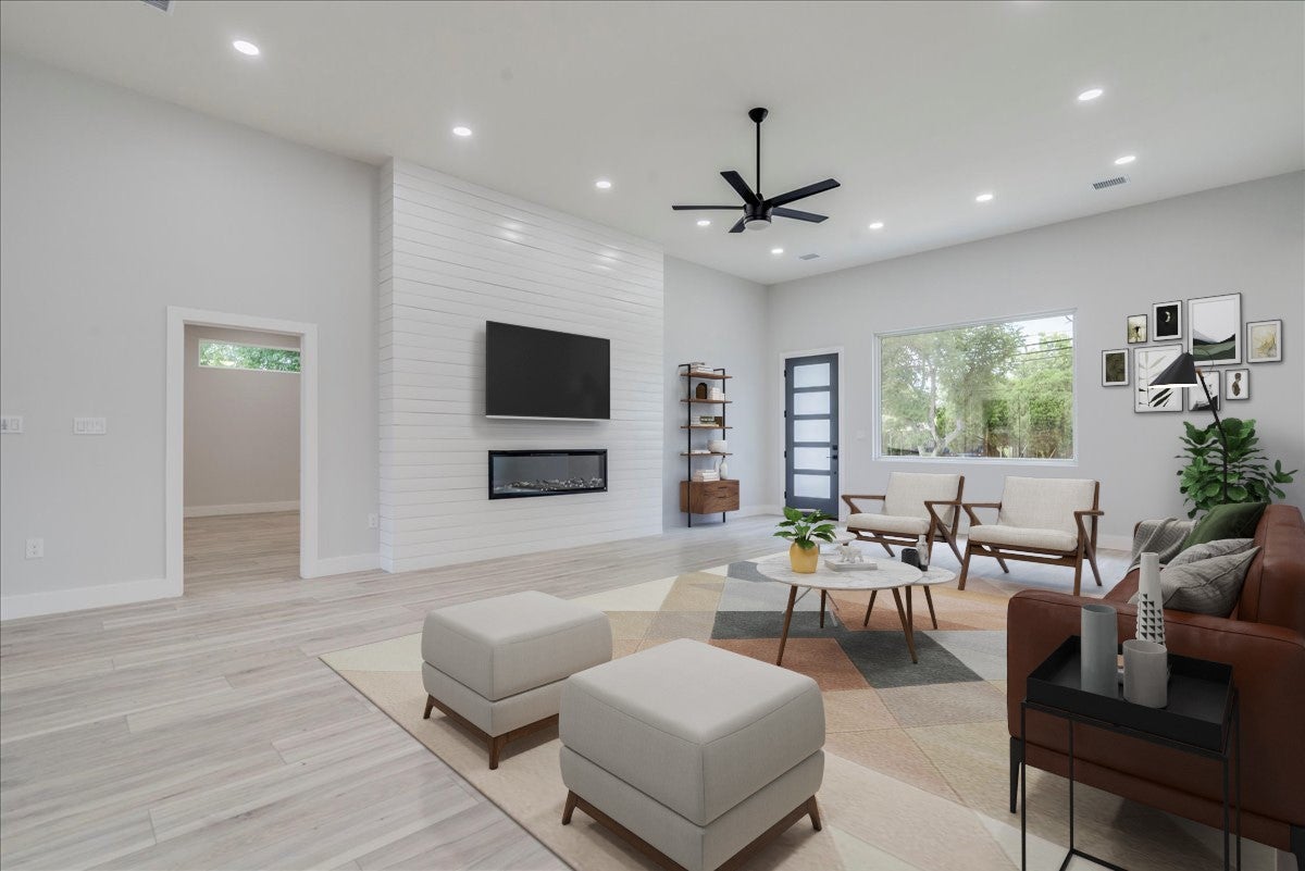 Perfect “Taylor-Made” Custom Home! 5.5% interest rate available for qualifying buyers. Just minutes from charming Main Street and only 5 minutes from the new Samsung facility, this unique multigenerational property at 1215 Howard Ln features two homes on one lot. The main home offers 3 bedrooms, 2 bathrooms, and 2,257 sqft of thoughtfully designed living space. Step inside to a spacious open-concept layout that flows seamlessly to the backyard—perfect for entertaining. High-end, modern finishes shine throughout. The chef’s kitchen is a highlight, with a large island overlooking the stunning floor-to-ceiling fireplace and a 6-burner stove ready for culinary adventures. Above the detached garage sits the guest/second home, a 900 sqft, 2-bedroom, 1-bathroom space complete with a full kitchen and laundry room. Ideal for extended family or as an income-producing unit. Step outside to a large covered patio with a built-in outdoor kitchen, creating the ultimate backyard entertaining space. The expansive yard is ready for your custom touch—think pool, garden, or play space. The garage includes a full bathroom and climate-controlled space, making it perfect as a workshop, entertaining area, or bonus room. Located just 8 miles from Granger Lake—offering fishing, camping, boating, and swimming—this home combines small-town charm with proximity to city conveniences. Built with exceptional quality, this is not your average new build. A must-see in Taylor, Texas! Schedule your private tour today!