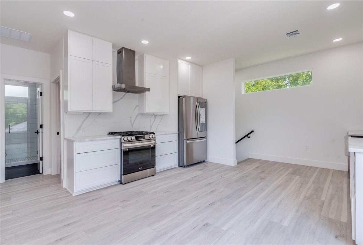 - Dryer, Dishwasher, ENERGY STAR Qualified Appliances, Free-Standing Gas Range, Disposal, Microwave, Refrigerator, Tankless Water Heater, Washer, Range Hood, Stainless Steel Appliance(s)