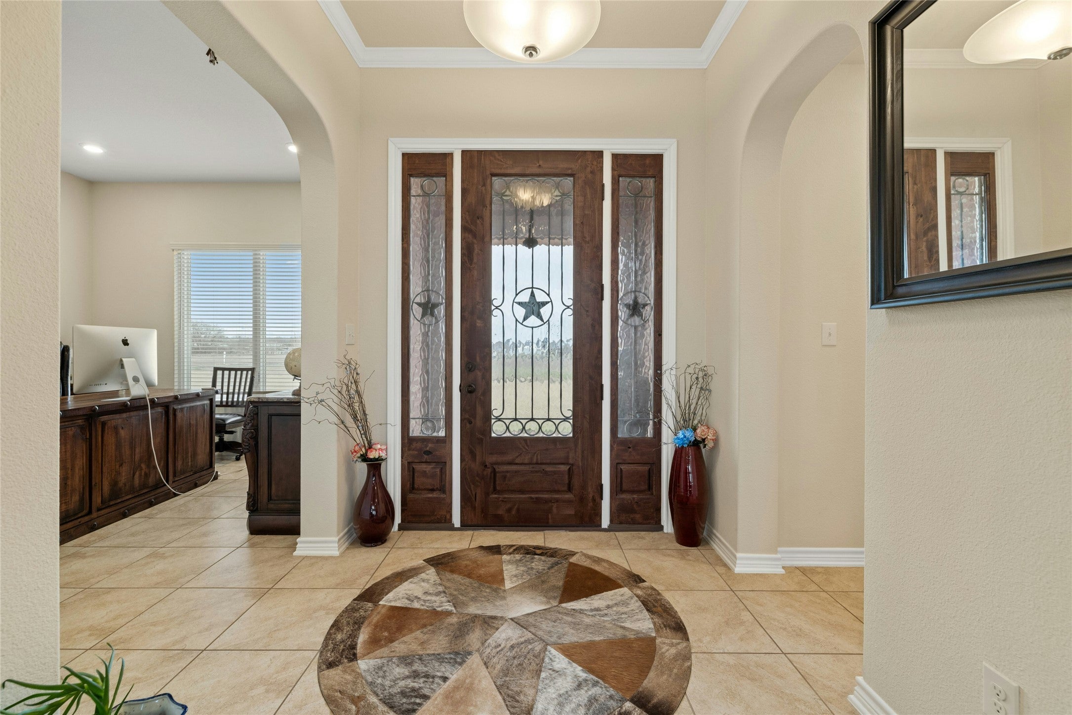 Your Dream Texas Retreat Awaits! Welcome to 1800 County Road 305, Jarrell, TX 76537—a rare opportunity to own a stunning 10-acre estate with the perfect blend of luxury, space, and functionality. This 3-bedroom, 3.5-bathroom home offers 2,225 square feet of thoughtfully designed living space, ideal for families, professionals, and those who crave wide-open spaces with modern comforts. Step inside and be greeted by a spacious open-concept living area, complete with a cozy fireplace, stylish tile flooring, and ceiling fans to enhance comfort year-round. The large kitchen is a chef’s dream, featuring a center island, walk-in pantry, and ample storage—perfect for entertaining or enjoying home-cooked meals. The study/office provides the ideal space for remote work or quiet relaxation. The primary suite is a private retreat, boasting a large walk-in closet with center-isle storage, a luxurious walk-in shower, and premium finishes. Each of the three full-size bathrooms also features a walk-in shower, ensuring convenience and accessibility for all. Beyond the home, this property truly shines with its 5,000-square-foot, 5-bay solar-powered barn/workshop—a dream come true for hobbyists, car enthusiasts, or anyone needing a fully powered, versatile space. A 3-car garage adds even more room for vehicles and storage, while the covered patio and automated sprinkler system make outdoor living effortless. Plus, with a full-home 14KW generator, you'll have peace of mind knowing your home stays powered no matter what. Location is everything, and this home is just minutes from top-rated schools, including Double Creek Elementary (1 mile), Jarrell Middle School (2.1 miles), and Jarrell High School (2 miles). Enjoy the privacy of country living while still being conveniently close to essential amenities. Don’t miss out on this one-of-a-kind Texas retreat—schedule your private tour today with Front Door Properties and experience the best of Jarrell living!