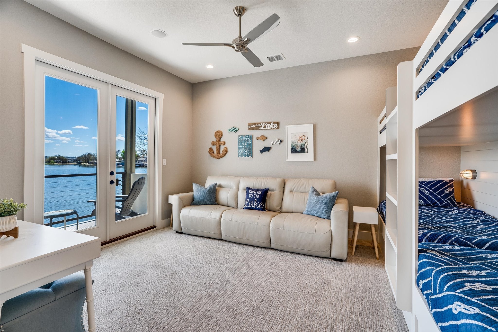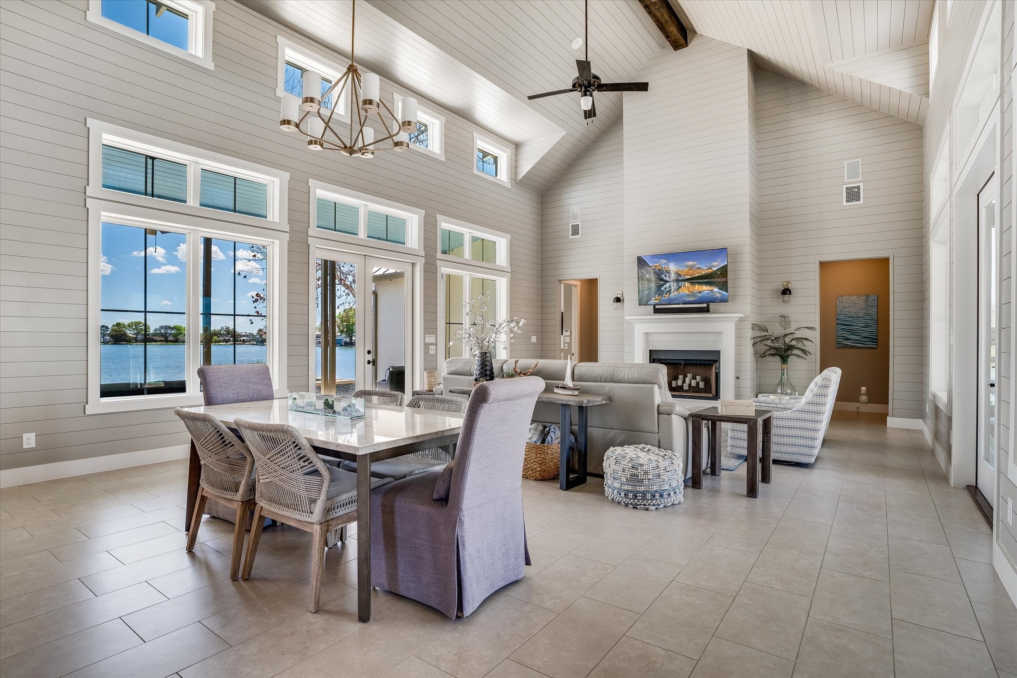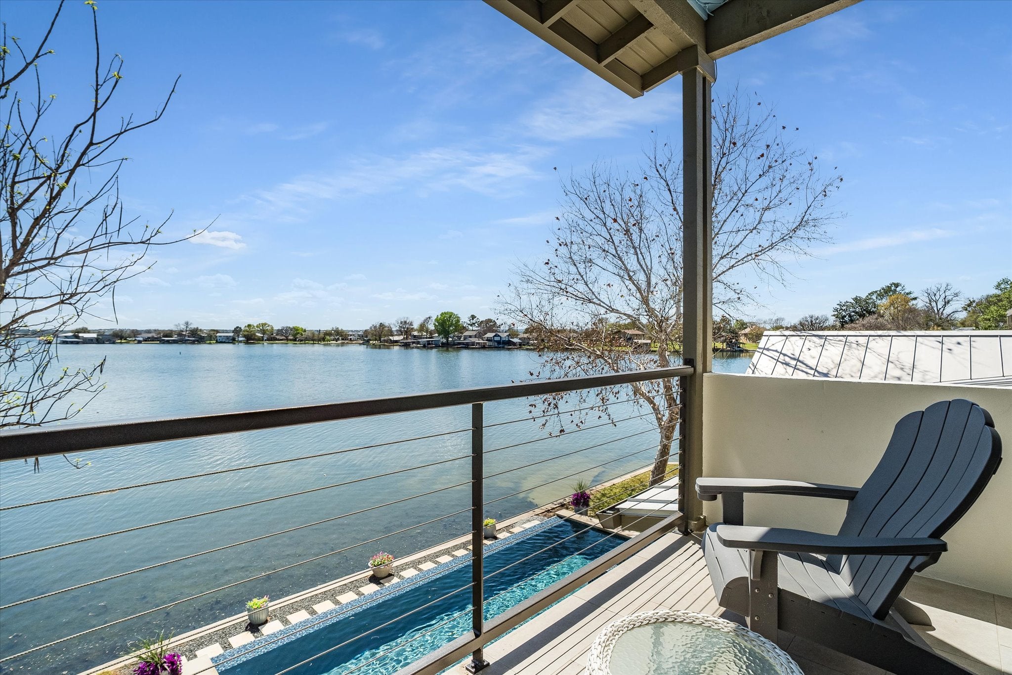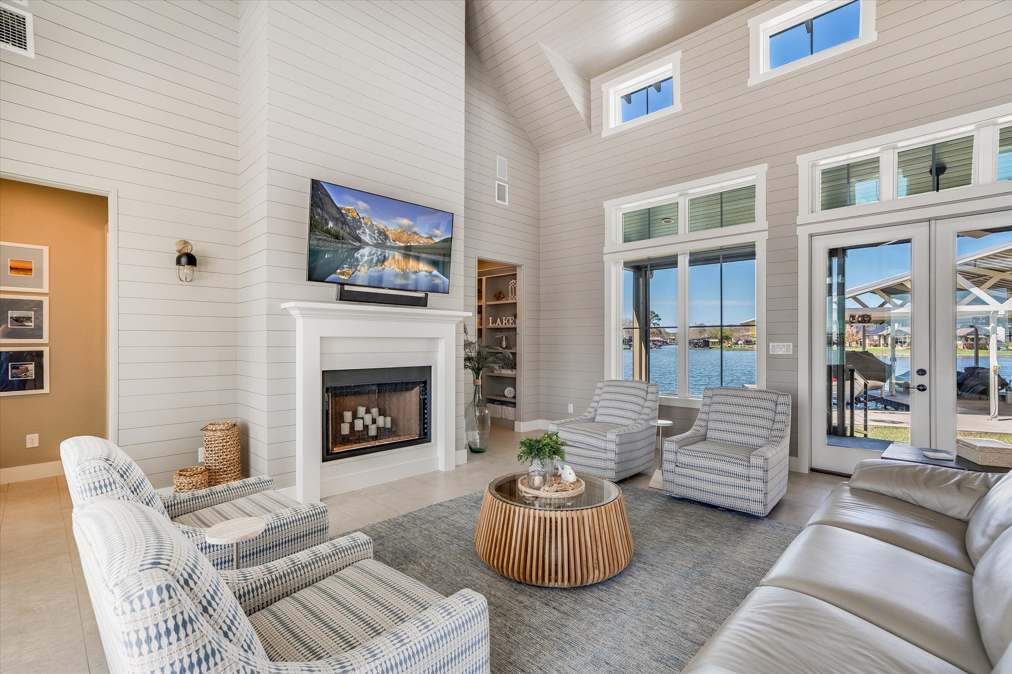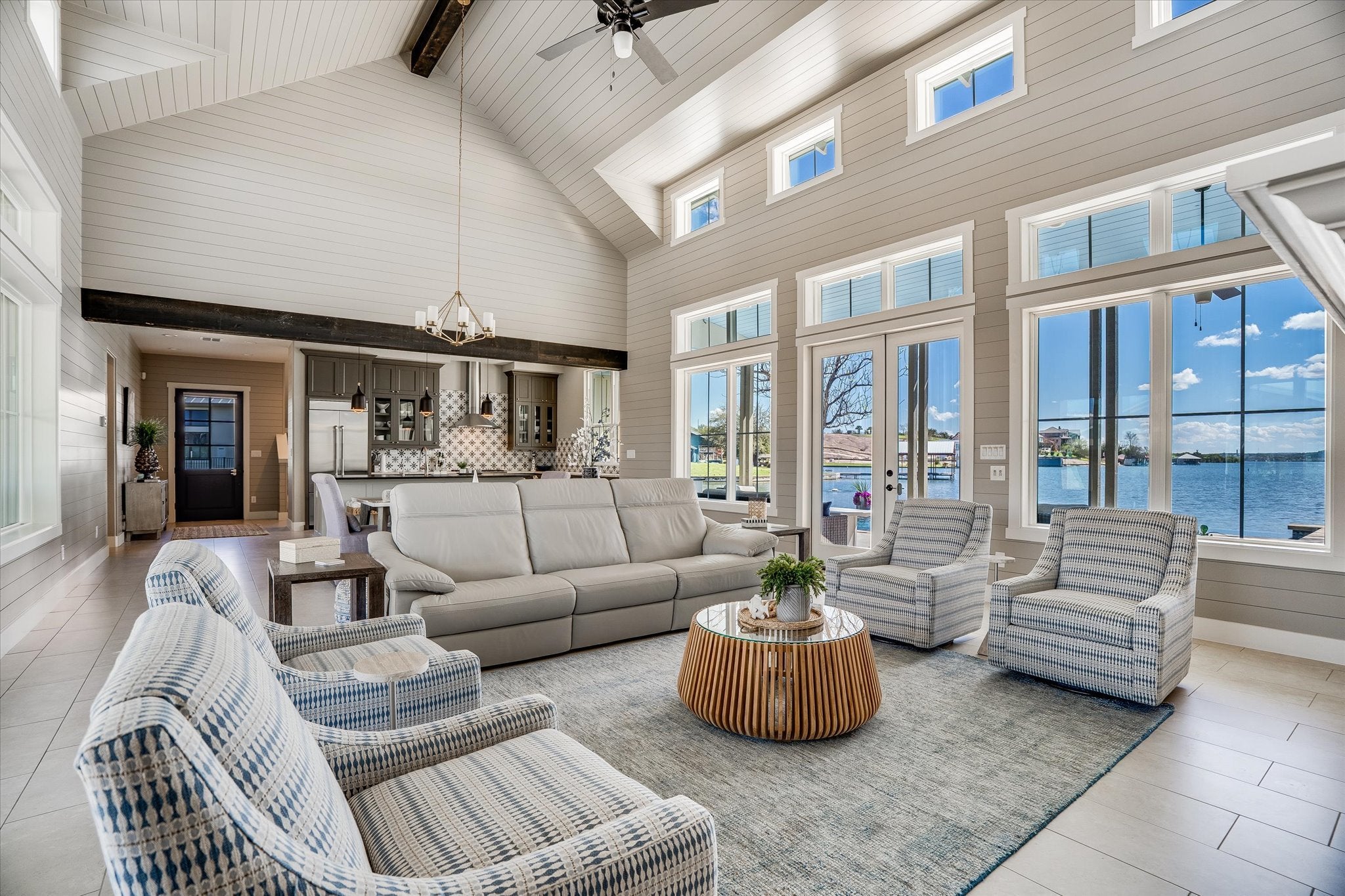 Situated on its own private peninsula on Lake LBJ, this exceptional waterfront retreat offers a rare opportunity to own over 500 feet of shoreline with breathtaking open-water views. Designed with a relaxed coastal influence, the home captures the refreshing south-facing lake breeze and delivers the ultimate lakefront lifestyle. Inside, the home features four spacious bedrooms plus a dedicated bunk room, perfect for hosting family and guests. The open-concept living area is warm and inviting with coastal plank accent walls, abundant natural light, and seamless flow for entertaining. The kitchen is designed for both style and function, complete with a gas range and thoughtful built-ins, while the bunk room includes custom built-in bunks ideal for large gatherings. Step outside and enjoy the resort-style outdoor living spaces. The property features a negative-edge pool overlooking the lake, multiple patios for relaxing or entertaining, and expansive waterfront views in every direction. A large boathouse with multiple lifts provides plenty of room for boats and watercraft, making lake days effortless. Additional highlights include a private gated entrance, a Spider Be Gone pest control system throughout the entire property, and short-term rentals allowed, making this home not only a stunning personal retreat but also a strong investment opportunity. With unmatched privacy, panoramic views, and one of the most impressive waterfront settings on Lake LBJ, this peninsula property is truly one-of-a-kind.