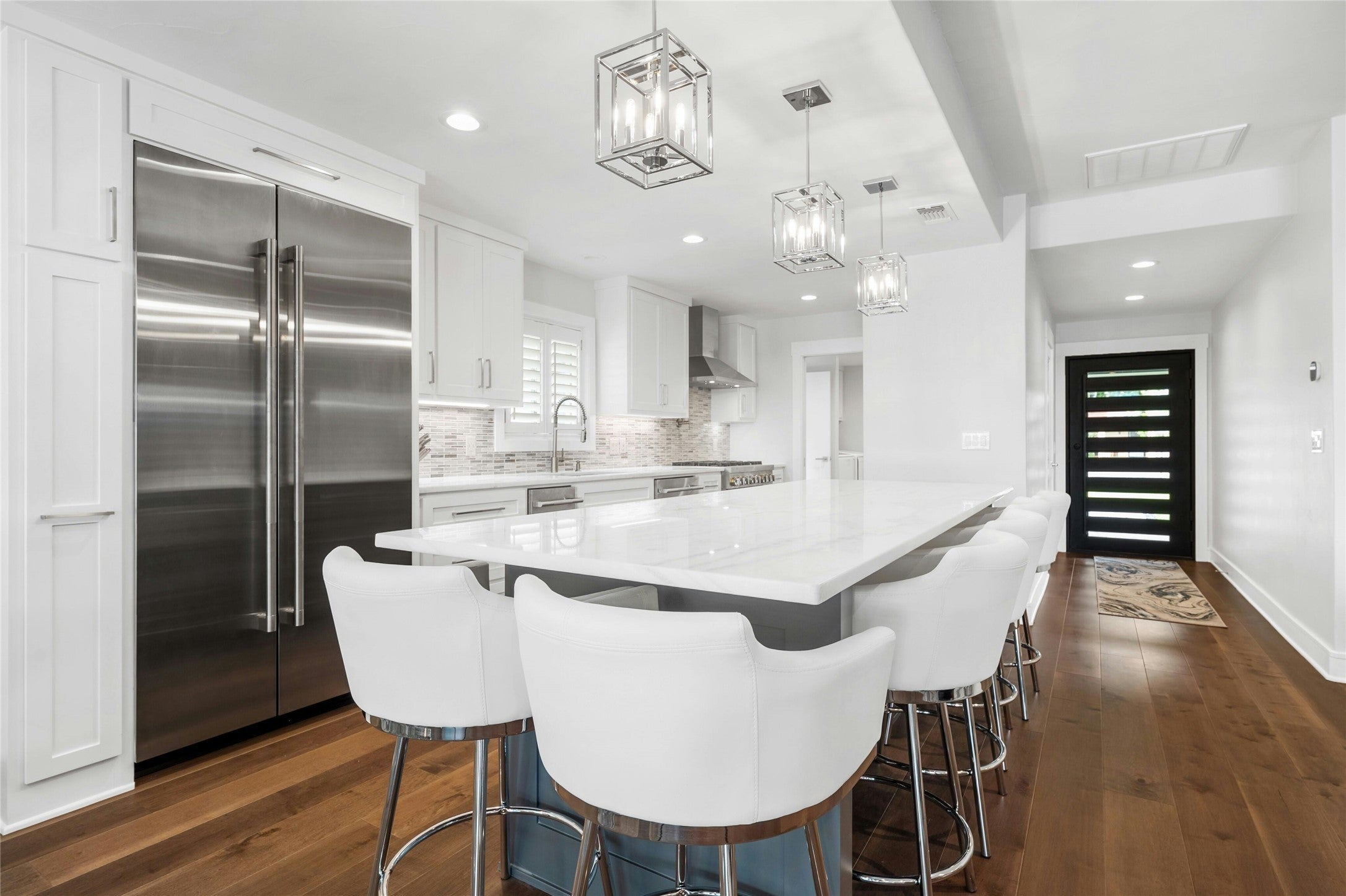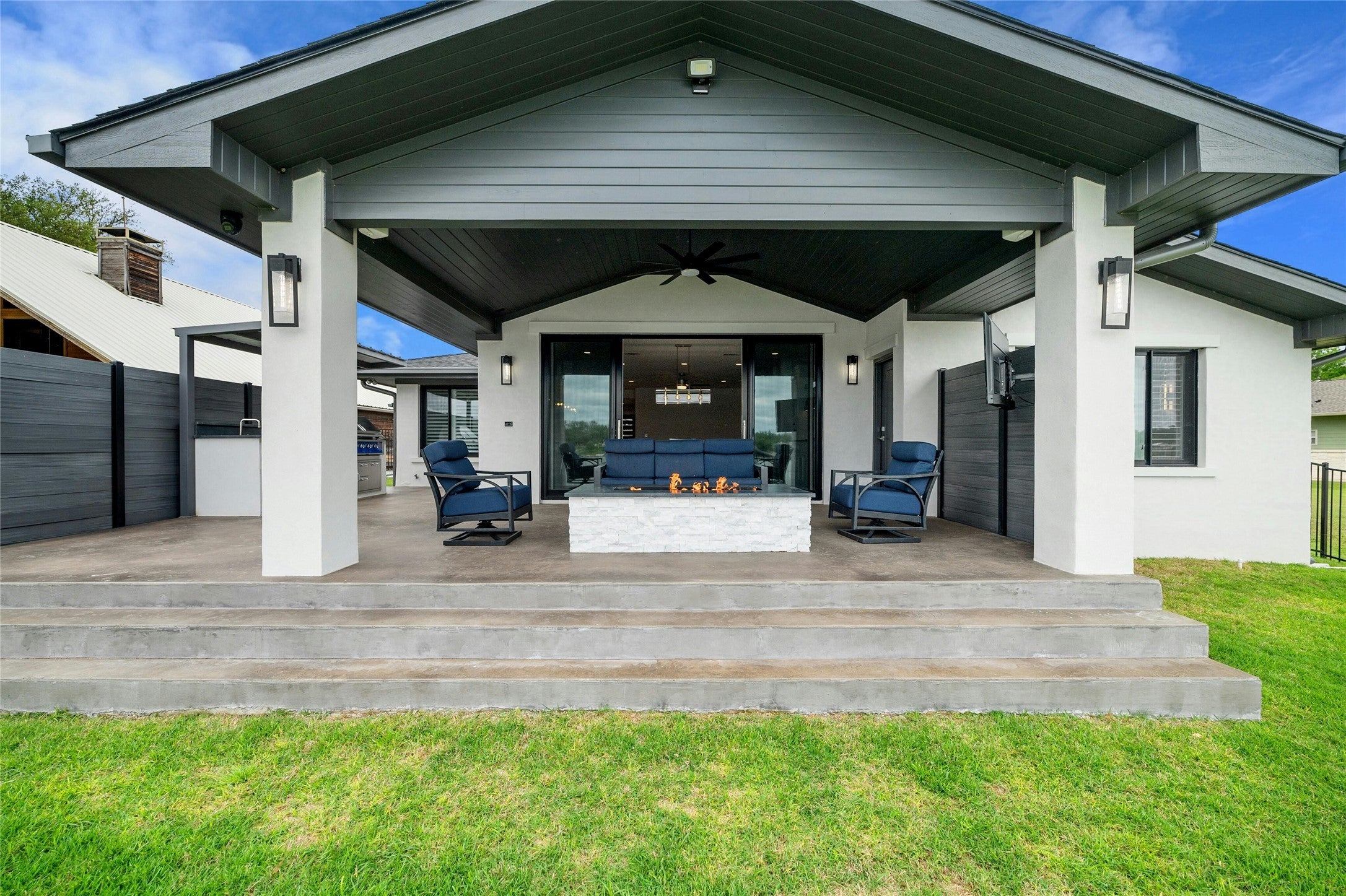 Enjoy exceptional lake living in this magnificent one-story complete down to the studs remodel on open water of the Llano arm. Breathtaking views await from the back patio or on top the two-story covered boat dock. This luxurious property is now available, presenting an incredible opportunity to own a truly exquisite home on lake LBJ. The remodeled kitchen features top of the line Jenn Air stainless steel appliances, marble stone counter tops and oversized island for entertaining. Whether you are hosting a large gathering or preparing a simple meal for yourself, this kitchen will exceed your expectations. Step into the family room and enjoy the ambiance of the 72” linear Xtrordinair fireplace with beautiful unobstructed lake views. The luxurious primary suite with Kallista bathroom fixtures, walk in closet, dual vanity and oversized shower with back message jets indulges the senses. This three-bedroom, three-bathroom home has tons of functional storage, family room, wet bar, dedicated office with an incredible lake view, large utility room and private outdoor covered patio with built in fire pit is a must see! This amazing property has 70’ of lake frontage, sand beach area with ramp into the lake, 2 story spacious boat dock complete with a boat lift, jet ski lift and storage area for all your lake toys. Short term rental allowed if desired. Only minutes from HEB, Boat Town and other amenities. A perfect time to make this designer home your own in time for summer