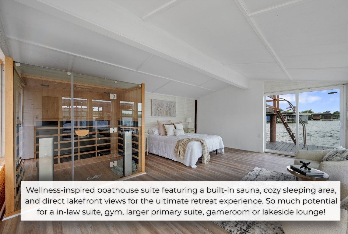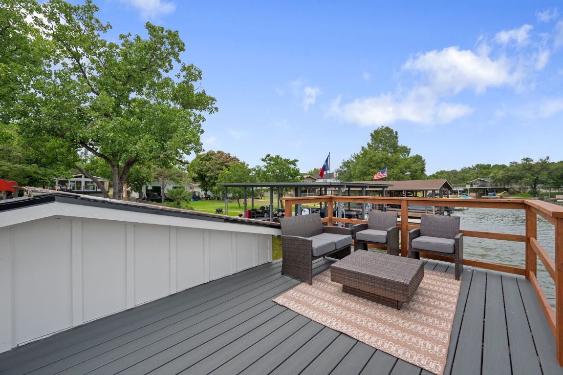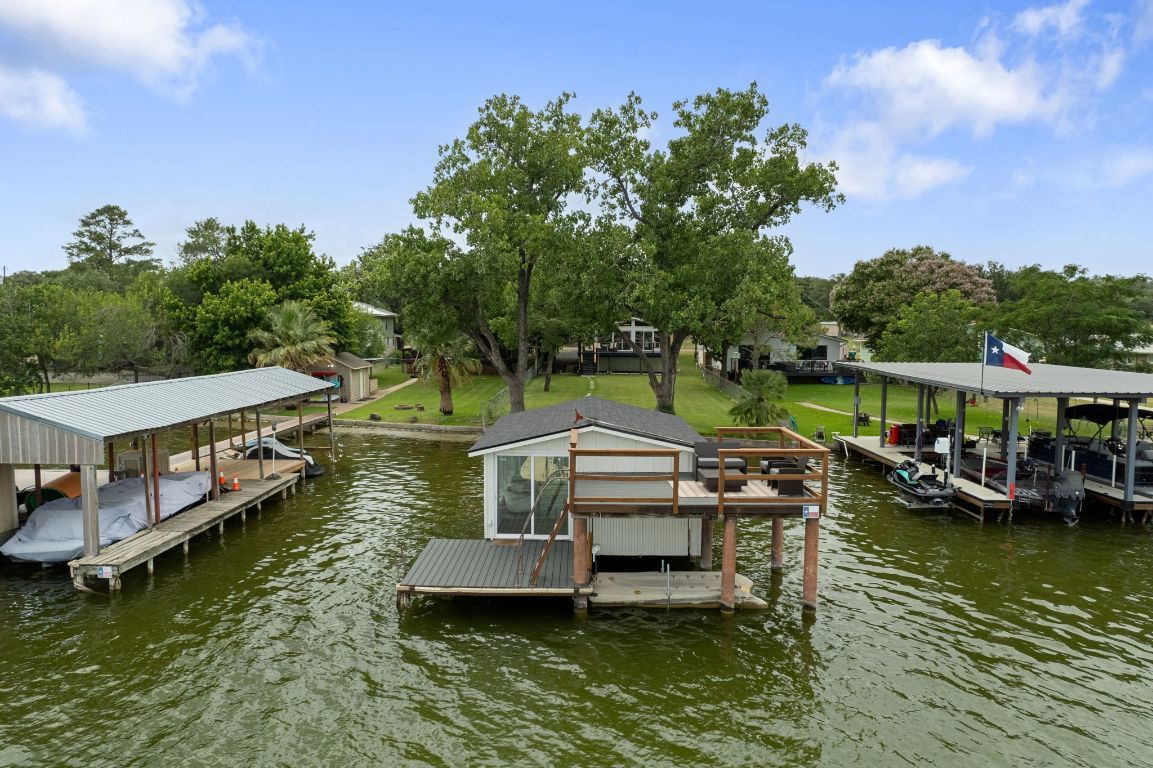 **Rare Find: Positioned on a deep, open-water cove—not a narrow canal—this is true lakefront living. Perfect for swimming right off the dock, lounging on lily pads, and hosting unforgettable waterfront gatherings.** Welcome to your reimagined lakeside escape in the heart of Granite Shoals—one of Lake LBJ’s most sought-after & laid back waterfront communities + lake towns. This turnkey retreat combines modern Hill Country luxury with lifestyle ease, offering direct lake access, a fully renovated private boathouse with guest suite and jet ski slip, and over $300K in high-end upgrades. Every detail has been thoughtfully curated for full-time living, weekend getaways, or a high-performing short-term rental. If a second bathroom is added off of the boat house it could serve as a second unit for a bed and breakfast for the future or true In-law apartment on the water! Inside, the open-concept layout is anchored by a dramatic floor-to-ceiling window wall that floods the space with natural light and captures panoramic lake views. The custom kitchen with a beautiful Emerald Green Quartzite waterfall island, and spa-like bathroom are fully remodeled with stylish, high-quality finishes you won’t find in a typical flip or cookie-cutter renovation. The boathouse is a a wellness sanctuary with a built-in sauna for hot/cold therapy, plus new siding, windows, and flooring that make it a true extension of the home. Additional highlights include: Brand-new septic system (with space left for a future pool) New roofs on main house + boathouse Whole-home water filtration Bathroom Remodel ~40K Kitchen Remodel ~40K Window Wall ~20K Upper + Lower Deck Remodel Granite Shoals offers 19 city parks, boat ramps, tennis courts, and trails—all just 10 minutes from Marble Falls for groceries, dining, and local wineries, and under an hour to Austin for work or play. Come check out this stunning/ very unique property and make every day a vacation!