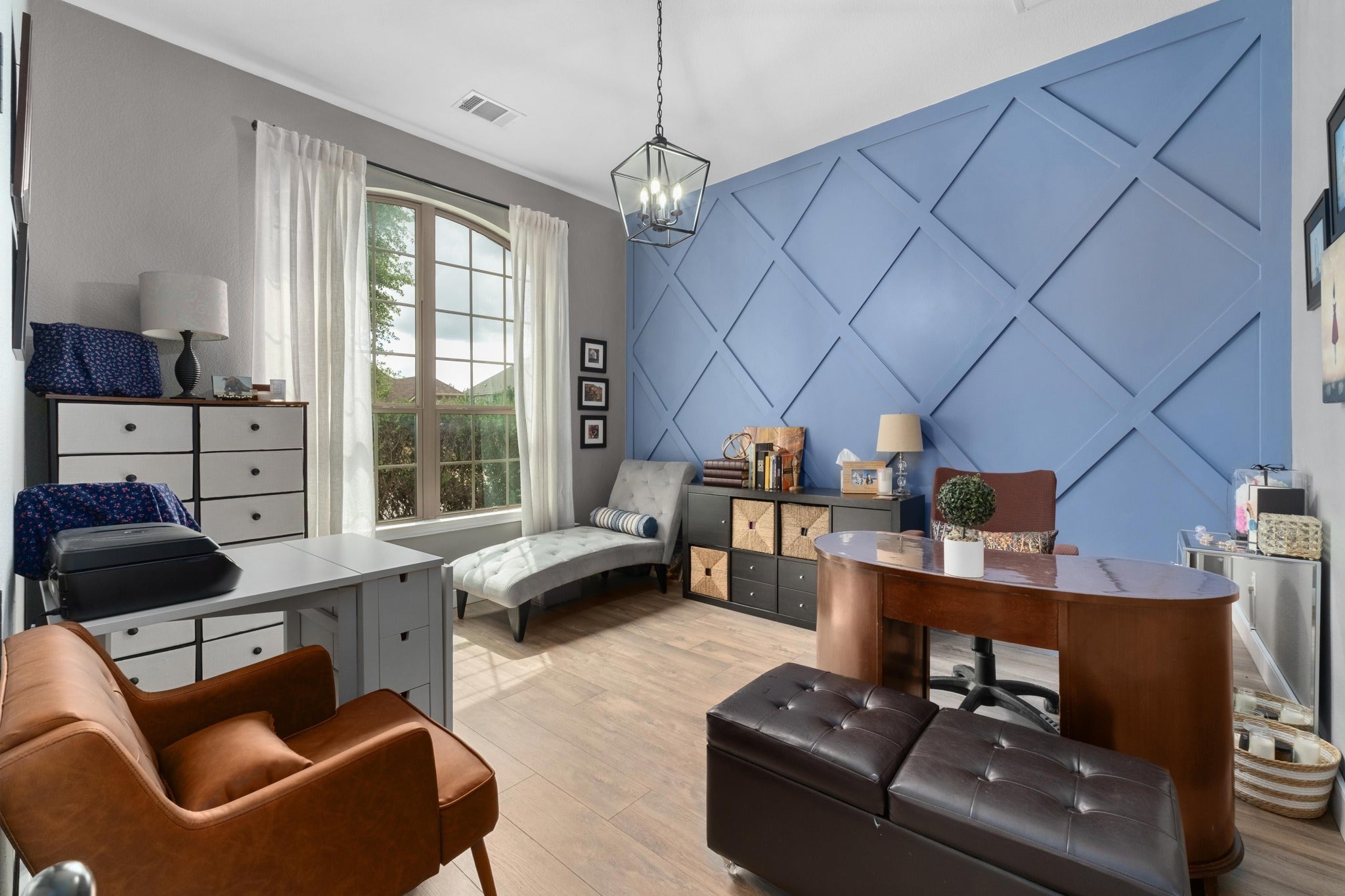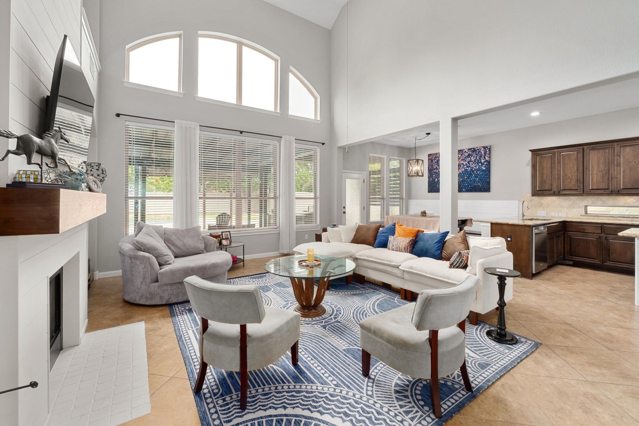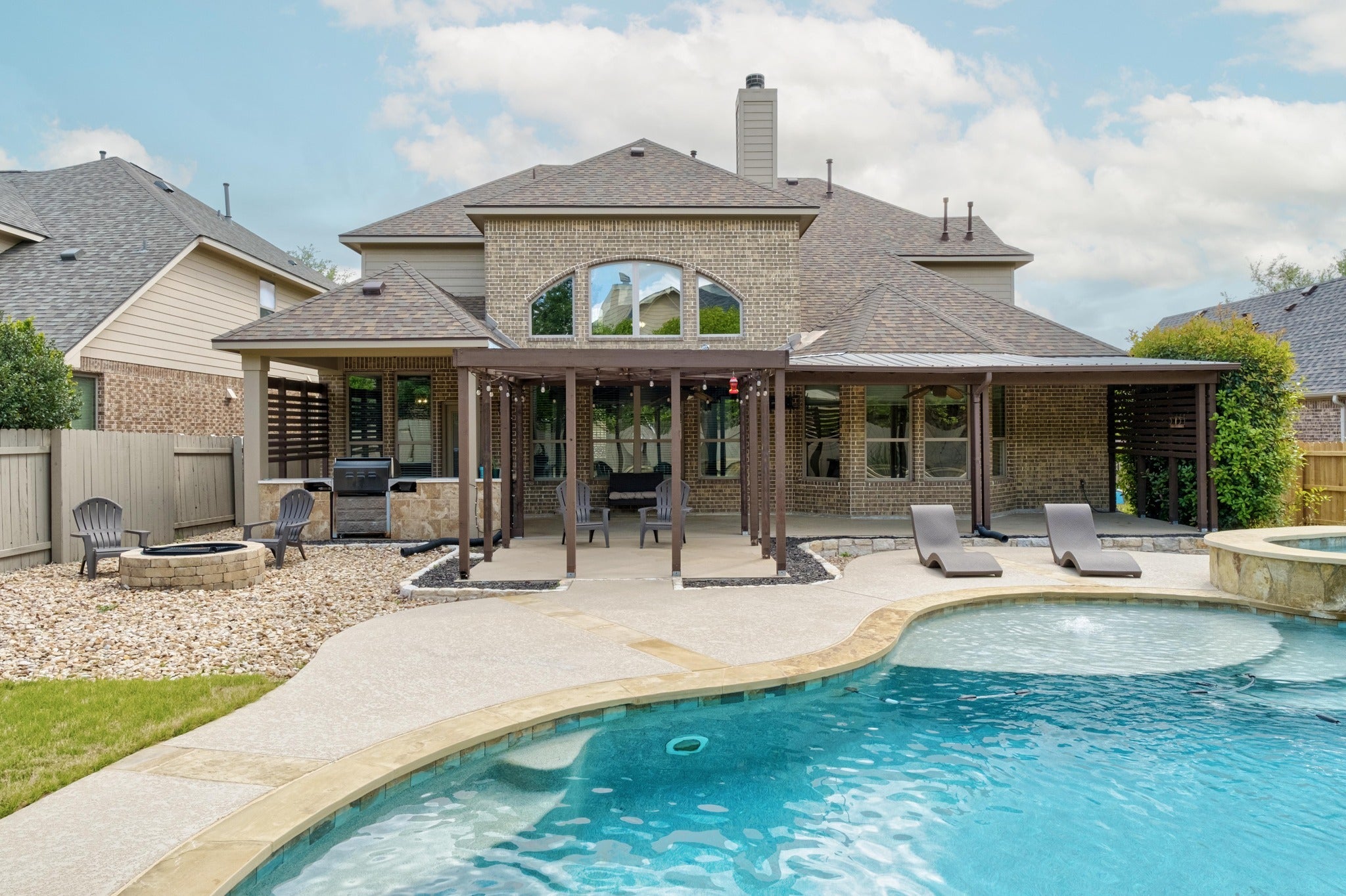 This 4-bedroom home also includes a dedicated office and media room that could serve as a 5th bedroom. The open concept living space boasts soaring ceilings and connects seamlessly to the kitchen with 42" cabinets, granite counters, an island with bar seating, double convection ovens with air fryer and bake features, stainless steel appliances, and a breakfast nook. Formal dining and a custom front facing office add function elegance. The primary suite offers a bay window overlooking the backyard, an expansive bathroom, and a huge walk-in closet. Upstairs media rooms provide ideal flexible space. Oversized 3-car garage includes tall ceilings and excellent storage. Updates include laundry room built-ins, barn door, mud area, newer roof, appliances, garage door, and fresh landscaping. Easy access to Parmer, 183A, and Crystal Falls Parkway puts you near major employers, shopping, restaurants, and entertainment while tucked in a neighborhood that offers a strong sense of community and lifestyle. Refrigerator, washer, dryer included, along with pool maintenance.