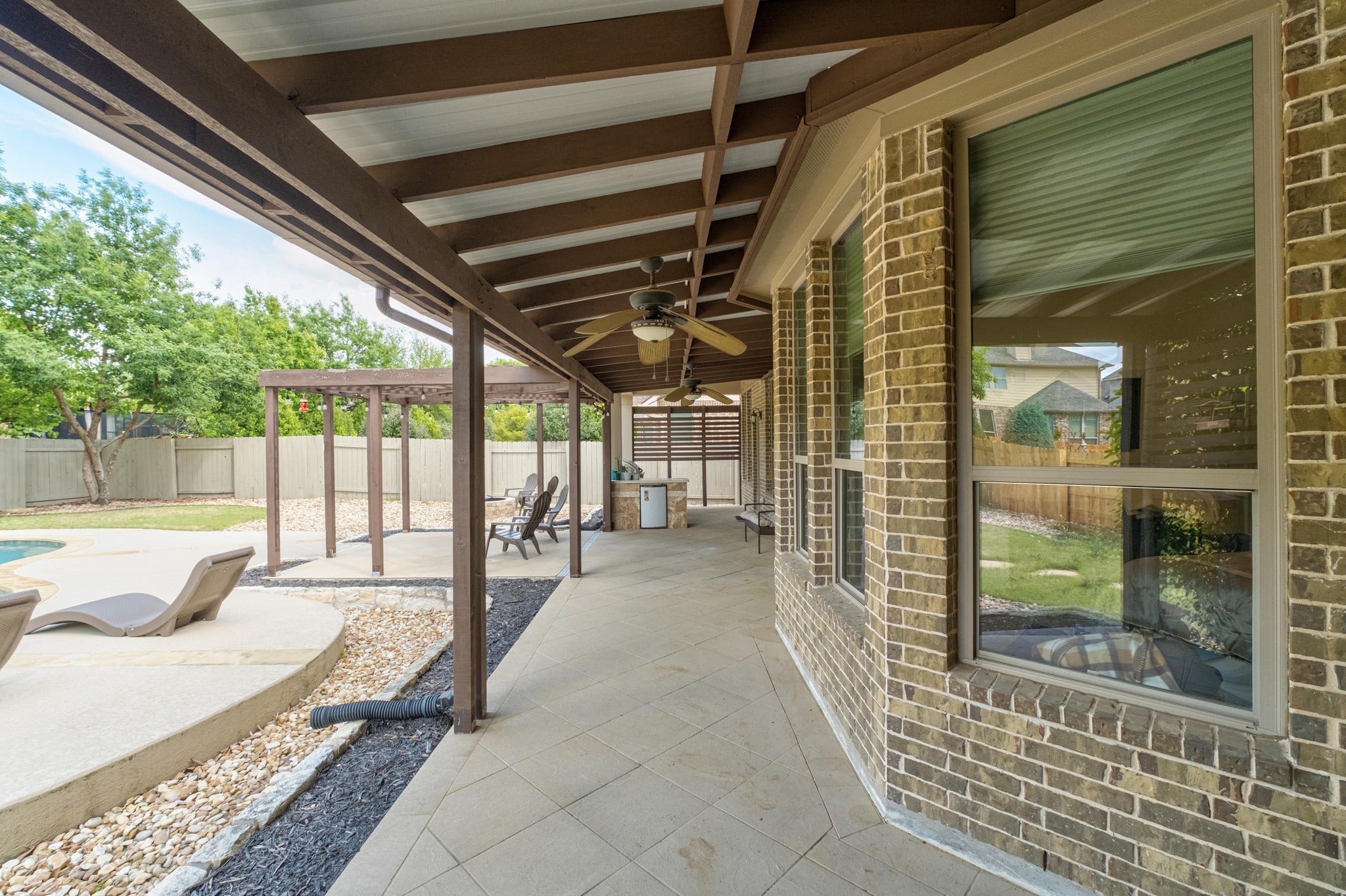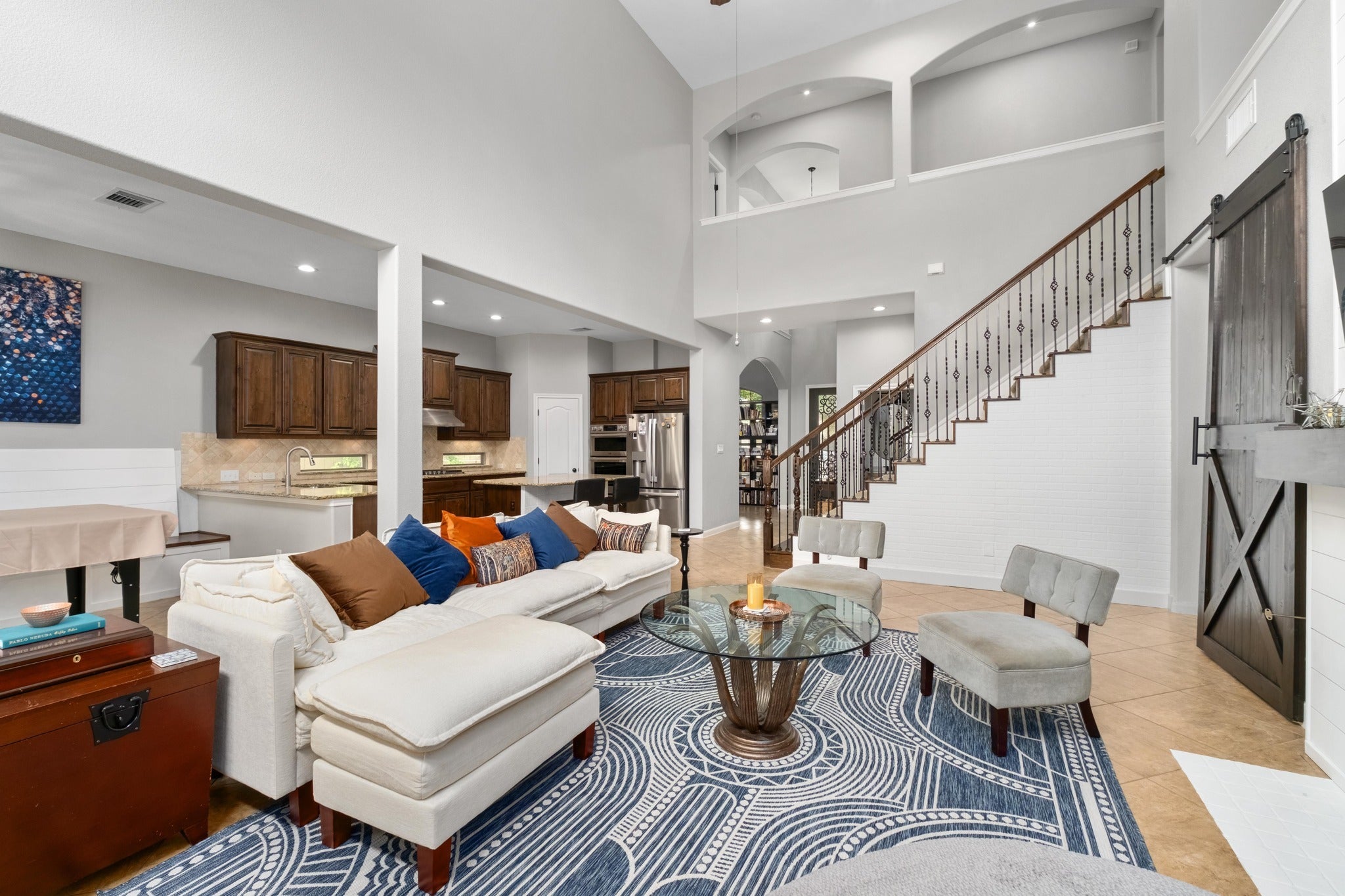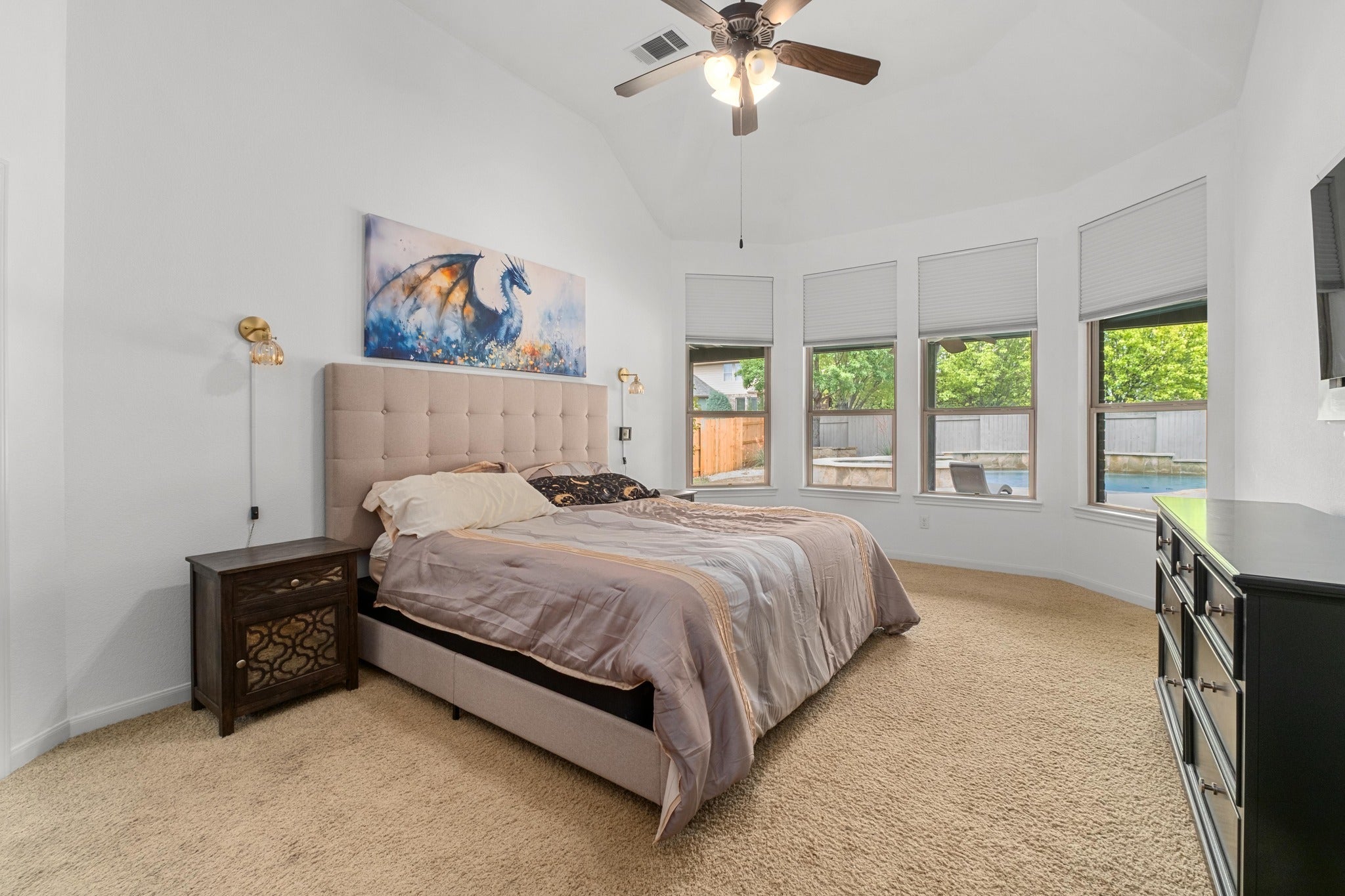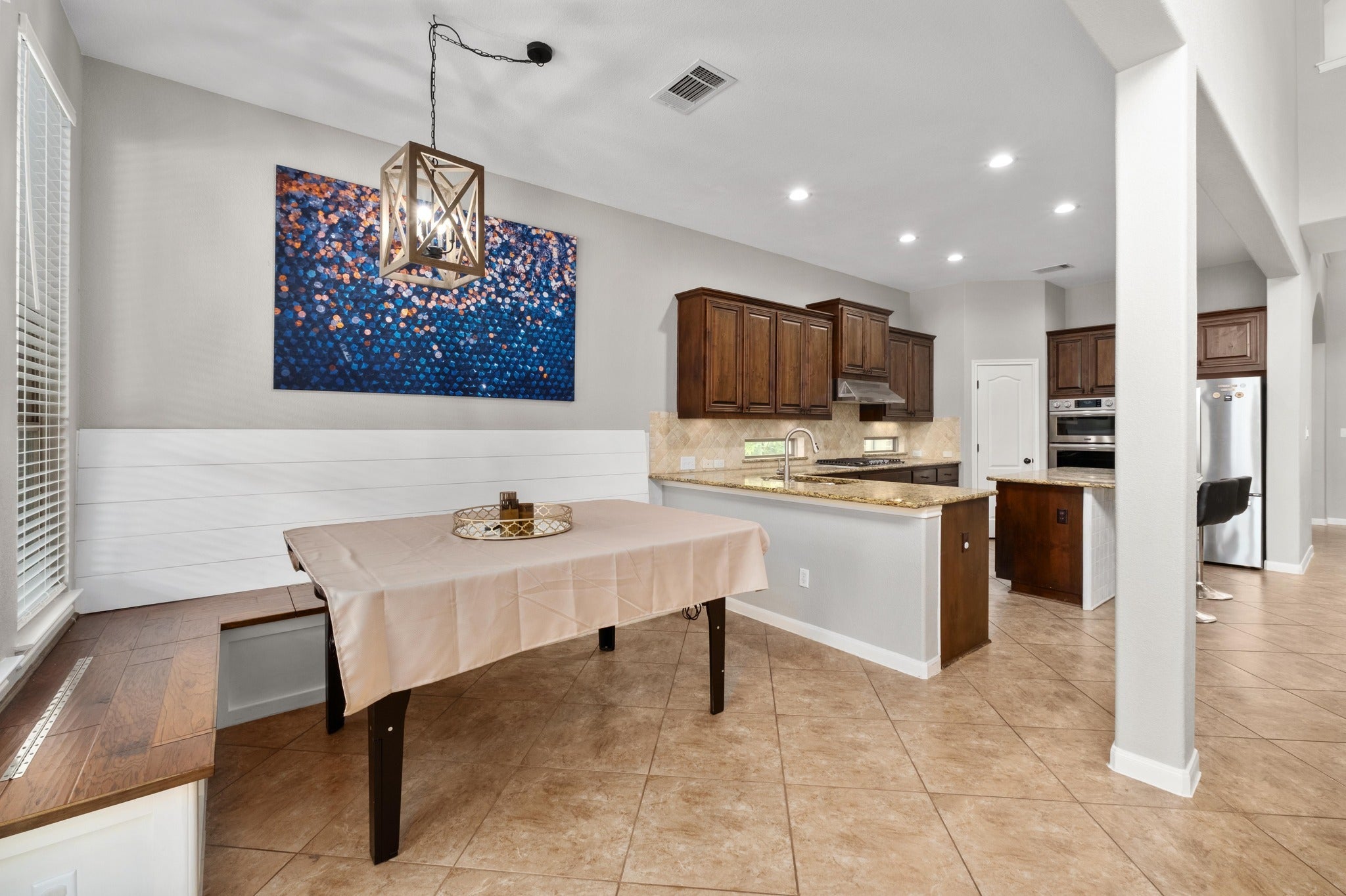 This 4-bedroom home also includes a dedicated office and media room that could serve as a 5th bedroom. The open concept living space boasts soaring ceilings and connects seamlessly to the kitchen with 42" cabinets, granite counters, an island with bar seating, double convection ovens with air fryer and bake features, stainless steel appliances, and a breakfast nook. Formal dining and a custom front facing office add function elegance. The primary suite offers a bay window overlooking the backyard, an expansive bathroom, and a huge walk-in closet. Upstairs media rooms provide ideal flexible space. Oversized 3-car garage includes tall ceilings and excellent storage. Updates include laundry room built-ins, barn door, mud area, newer roof, appliances, garage door, and fresh landscaping. Easy access to Parmer, 183A, and Crystal Falls Parkway puts you near major employers, shopping, restaurants, and entertainment while tucked in a neighborhood that offers a strong sense of community and lifestyle. Refrigerator, washer, dryer included, along with pool maintenance.