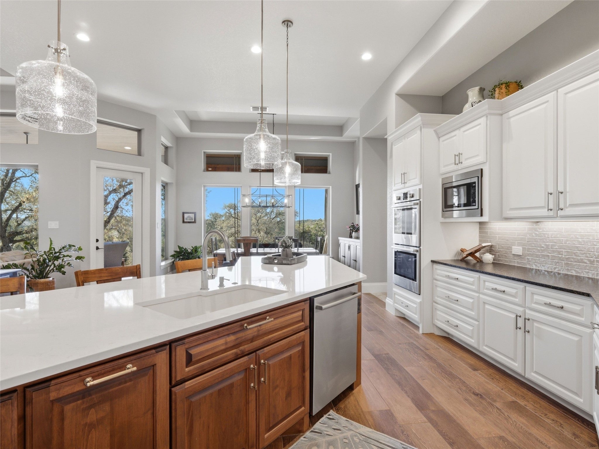 - Built-In Oven, Cooktop, Double Oven, Dishwasher, Exhaust Fan, Gas Cooktop, Disposal, Gas Water Heater, Microwave, Plumbed For Ice Maker, Water Softener Owned, Self Cleaning Oven, Stainless Steel Appliance(s), Tankless Water Heater, Electric Oven, Propane Cooktop, Range Hood, Water Purifier Owned