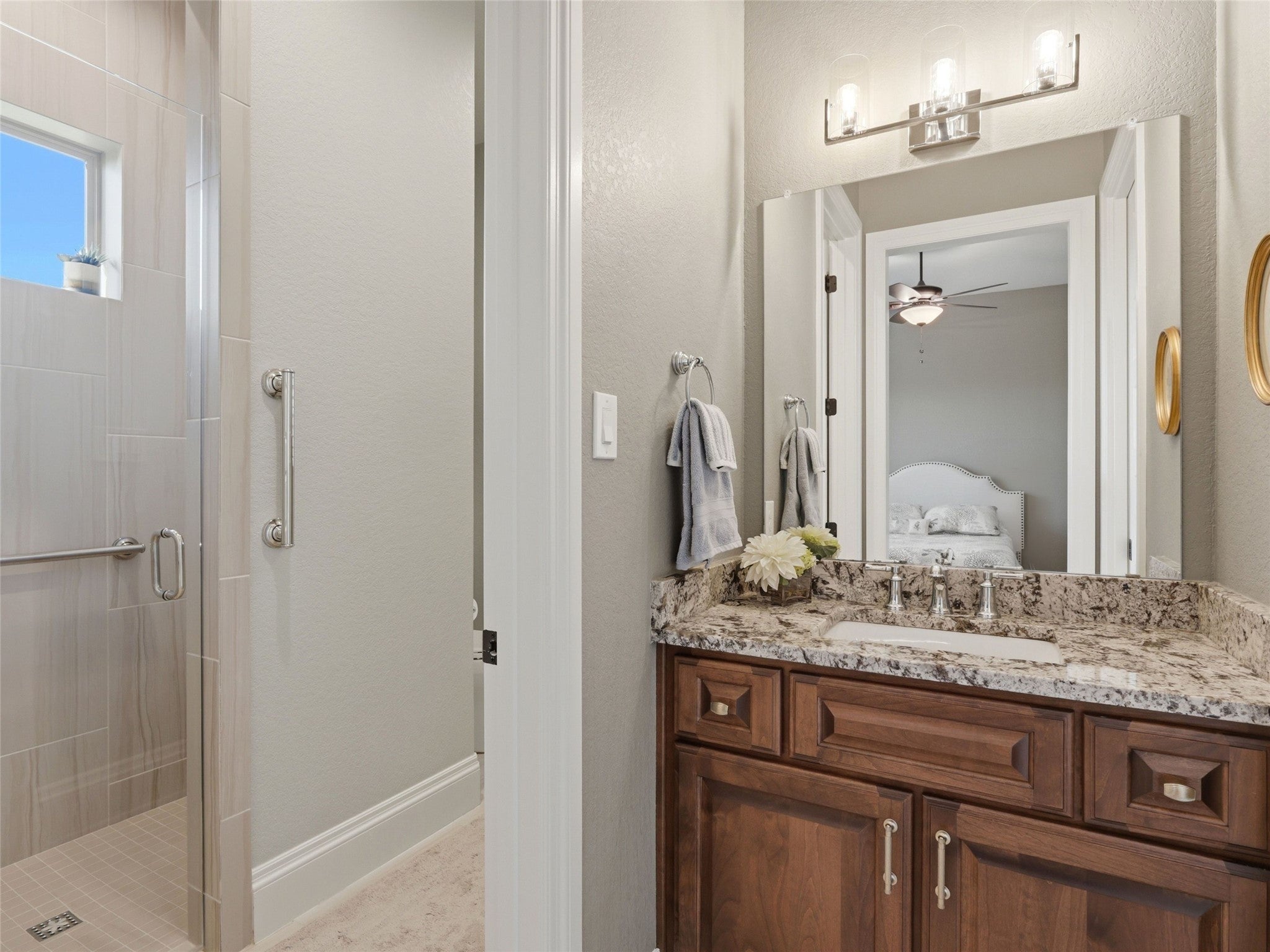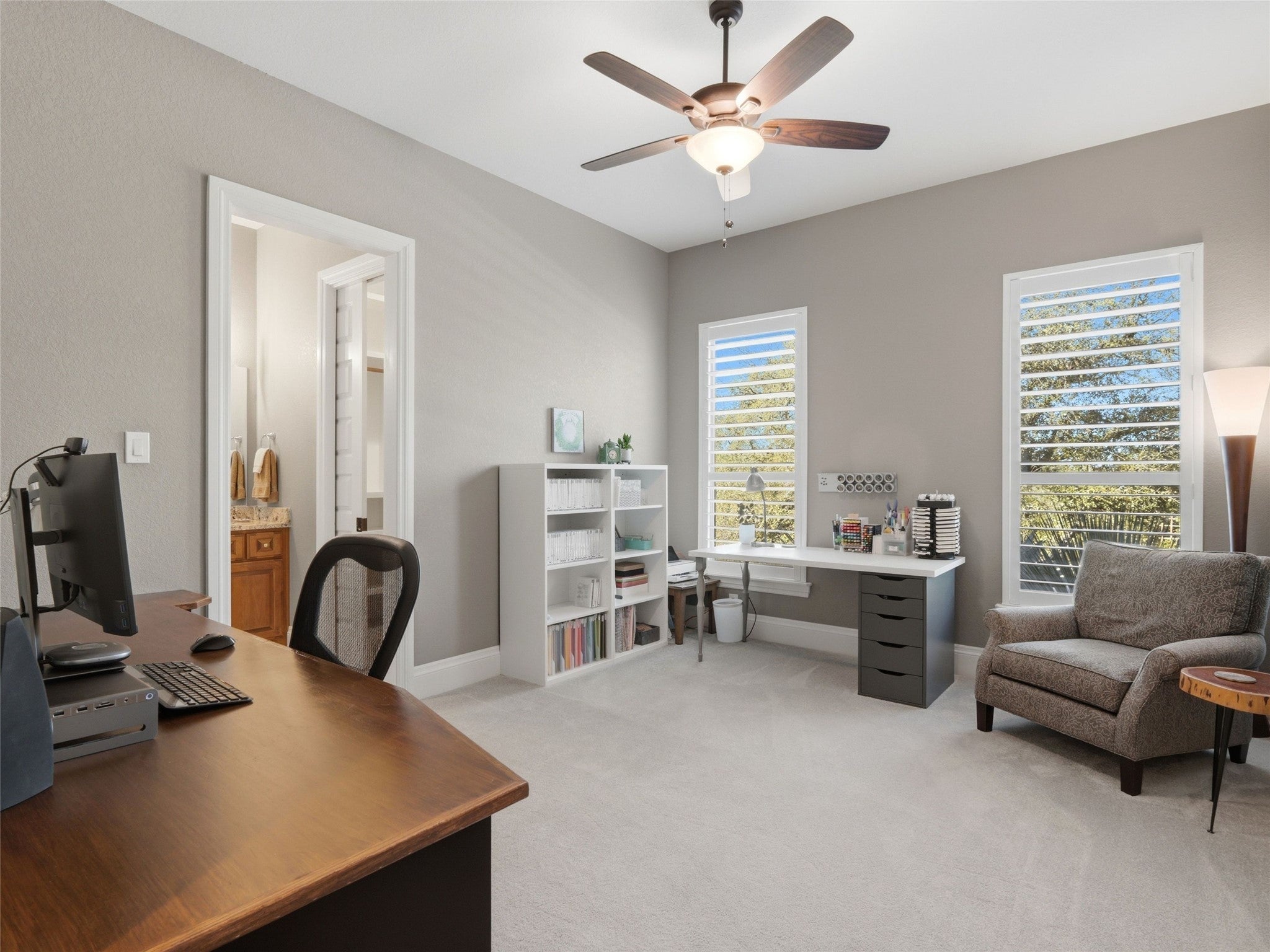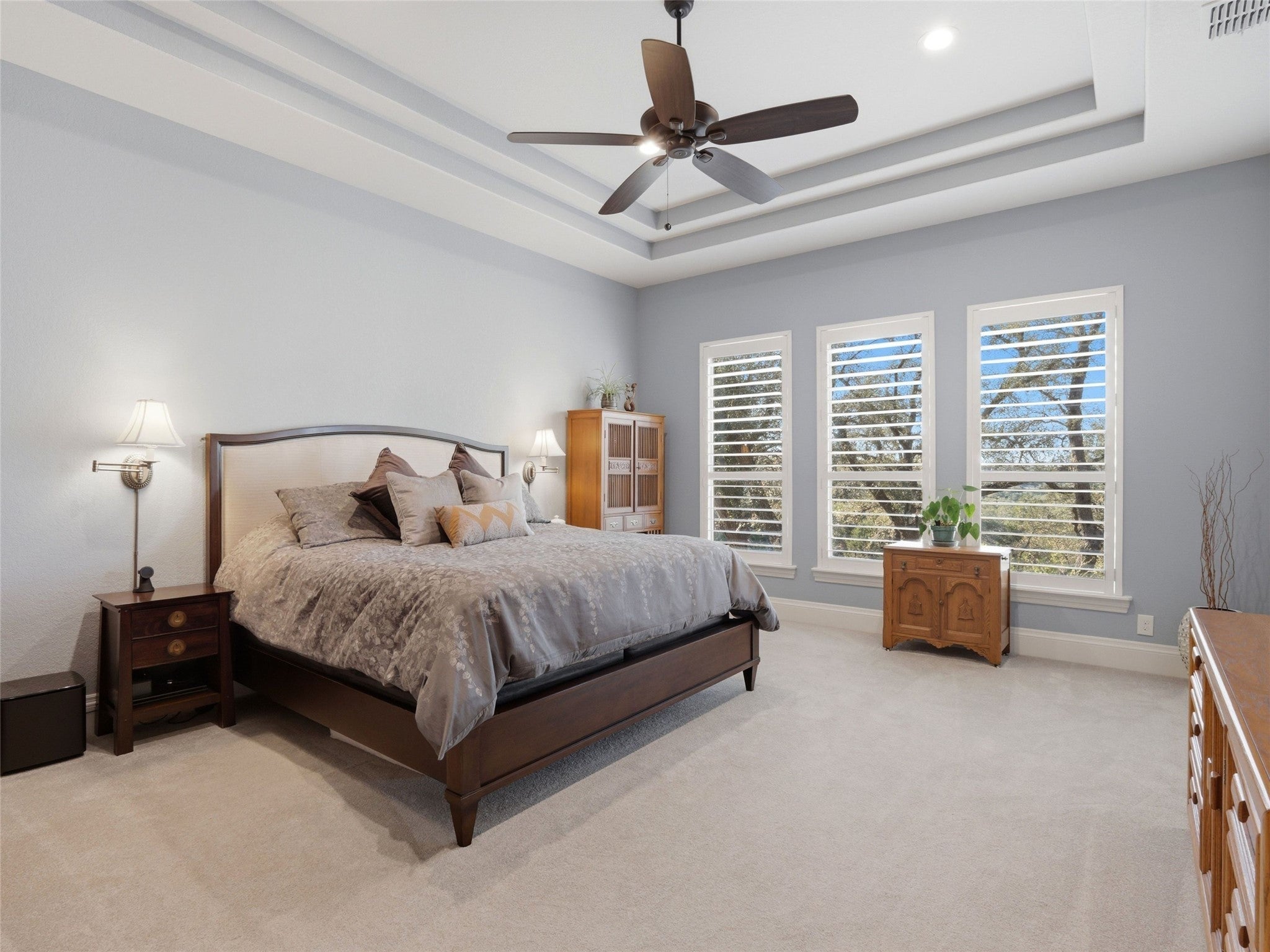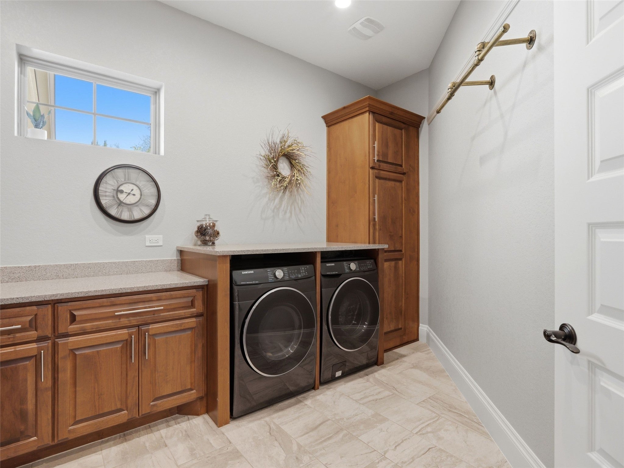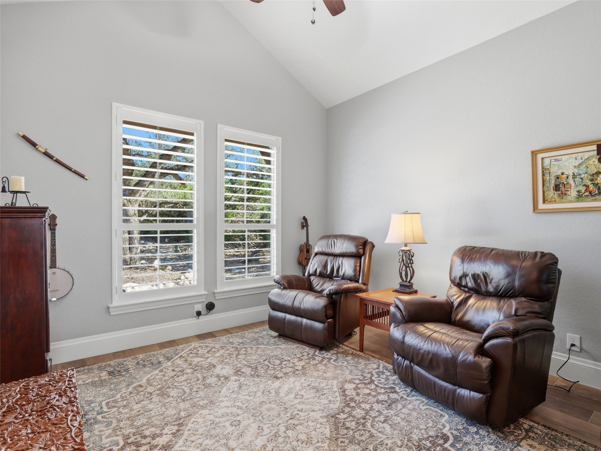 Perched along a scenic ridgeline and nestled privately within 5 serene acres, this custom-built Hill Country retreat offers breathtaking views, abundant wildlife, and exceptional privacy. The home showcases beautiful finishes throughout, including quartz countertops and plantation shutters, while expansive windows fill the interior with natural light and frame the surrounding Hill Country landscape. The spacious covered back patio with outdoor fireplace extends the living space outdoors - an ideal setting for morning coffee as the sun rises over the hills, relaxed evenings by the fire, and gatherings with friends while watching deer and native wildlife. The professionally xeriscaped grounds feature native plants that complement the natural setting while providing low-maintenance beauty. Additional features include a 3 car garage with one bay configured as a workshop, a detached 20 x 26 detached building with carport, fenced backyard, standing seam metal roof, solar panels and a 26 kw generator for efficiency and peace of mind. Properties offering this level of privacy, views, and thoughtful design are rare - come and experience the beauty and tranquility of Hill Country living for yourself.