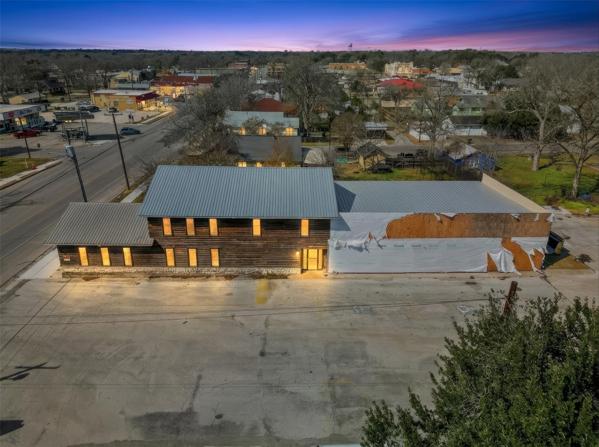 Prime 6,400± SF commercial building on a 0.79± acre lot featuring a versatile layout ideal for restaurant, bar, retail, or office use. Property includes two dining areas, foyer, prep area, storage, office, and his & hers restrooms. Kitchen build-out is underway with framing and plumbing in place. Striking brick and limestone accent walls complement the exterior wood and limestone façade with a metal roof. Abundant parking, city utilities, paved access, excellent visibility, and high traffic exposure. Outstanding investment potential with retail or restaurant possibilities. Convenient access to downtown and Spoetzel Brewery in a prime location.
