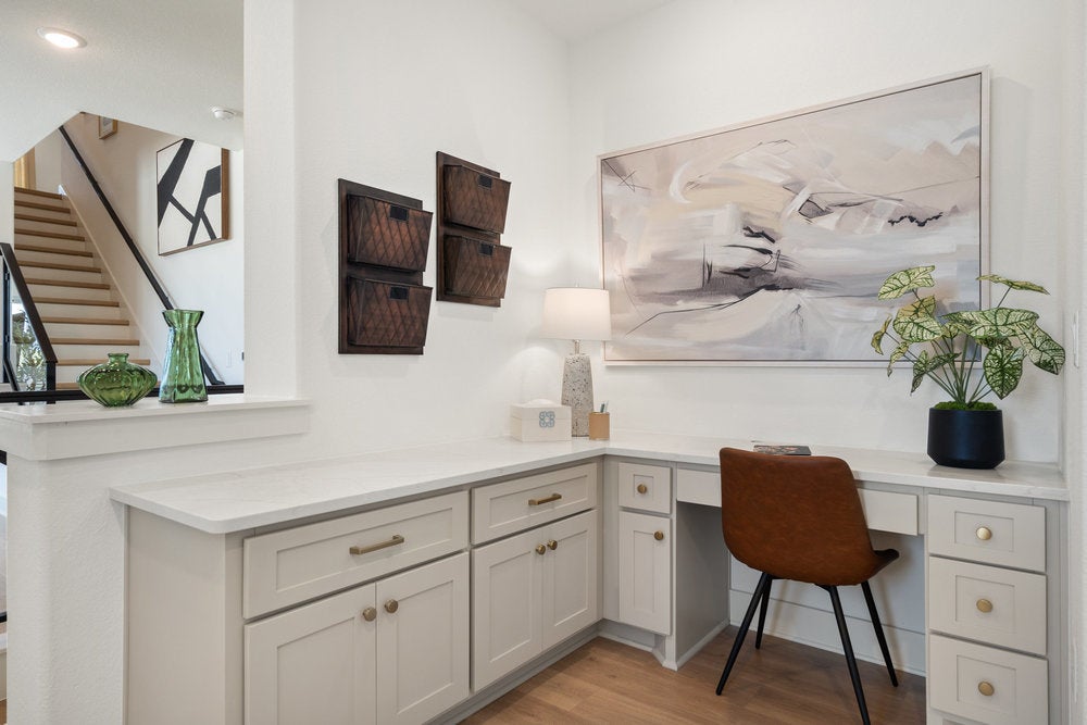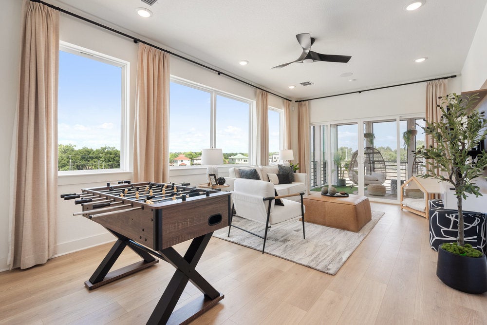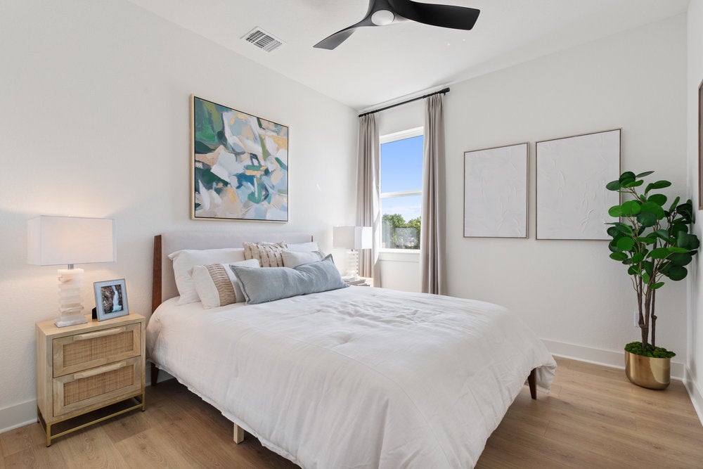 Welcome to The Palmer, a stunning 3 story home in the highly sought after Foxfield community, ideally located just minutes from The Domain and Austin’s thriving tech corridor. Residents enjoy convenient access to major employers including Apple, Dell, IBM and Amazon, along with a wide variety of nearby shopping, dining and entertainment. Outdoor recreation is just moments away at Walnut Creek Metropolitan Park with miles of hike and bike trails, green space and outdoor activities, while easy access to Mopac and Hwy 183 provides a seamless commute across Austin. Step inside to an open and inviting design filled with natural light and enhanced by soaring 10 foot ceilings. This 2,869 square foot home features 4 bedrooms and 3.5 bathrooms with a flexible layout designed for both everyday living and entertaining. The kitchen is a true centerpiece with quartz countertops, sleek 10 foot cabinetry, a large island and seamless flow into the main living areas. Durable wood look flooring adds warmth and functionality throughout. The upper level primary suite offers a private retreat with a spa inspired bath featuring a rain head shower, dual vanities and a spacious walk in closet. A lower level ensuite bedroom provides excellent flexibility for guests or multigenerational living. Additional living spaces include a game room and multiple areas to relax or work from home. Step outside to the second story screened in patio overlooking Walnut Creek Park, creating a peaceful setting to unwind. Energy efficient features including ENERGY STAR certification, dual pane windows, smart thermostat, tankless water heater and radiant barrier construction provide comfort and long term savings. With modern design, versatile living spaces and an unbeatable North Austin location, this home offers exceptional livability in one of the area’s most convenient communities.
