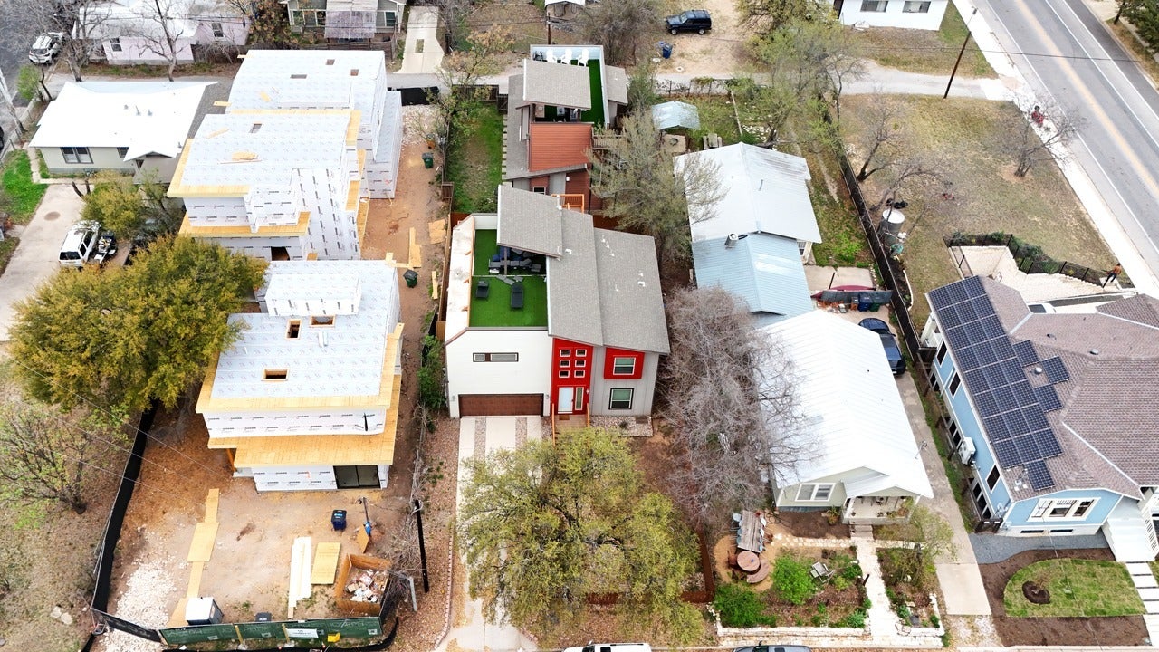 Located minutes to downtown Austin, the University of Texas, and the Capital. This unique property offers two separate residences on one lot. The main home is a spacious & modern 5-bedroom, 3-bath, 2-garage residence featuring an open-concept layout. It currently rents for $6,000 mo. The back home is a 2 bedroom, 1.5 bath, 2 car garage renting for $2,750mo. Both leases end this Summer approx Aug 1, 2026. This is perfect for multi-generational living, creative investment opportunities, or owner-occupancy with rental income potential. The main home boasts a large kitchen with abundant granite counter-top space, stainless steel appliances & seamless flow into the dining & living areas. The primary suite is conveniently located on the main level and includes double vanities & a walk-in shower. Two additional guest bedrooms are also on the main level, with two more bedrooms located on the lower level. Outdoor living is elevated with a large multi-level patio & a large rooftop terrace with a partial view of Austin skyline. The second residence is also designed with higher-end finishes. The 2nd home in the back has rear alleyway access and features an open floor plan with concrete flooring on the main level, and also has a large rooftop terrace with a view. Both homes have dedicated yards. Call now to be the first to see this unique opportunity. Back home is totally separate and could be an Accessory Dwelling Unit ADU , or Guest House , or Casita, or rental. An investor might consider splitting the two houses into separate condos (legal fees approx $5k) or might look into using the two houses as short term rentals. *Buyer should do their due diligence to confirm these possibilities.