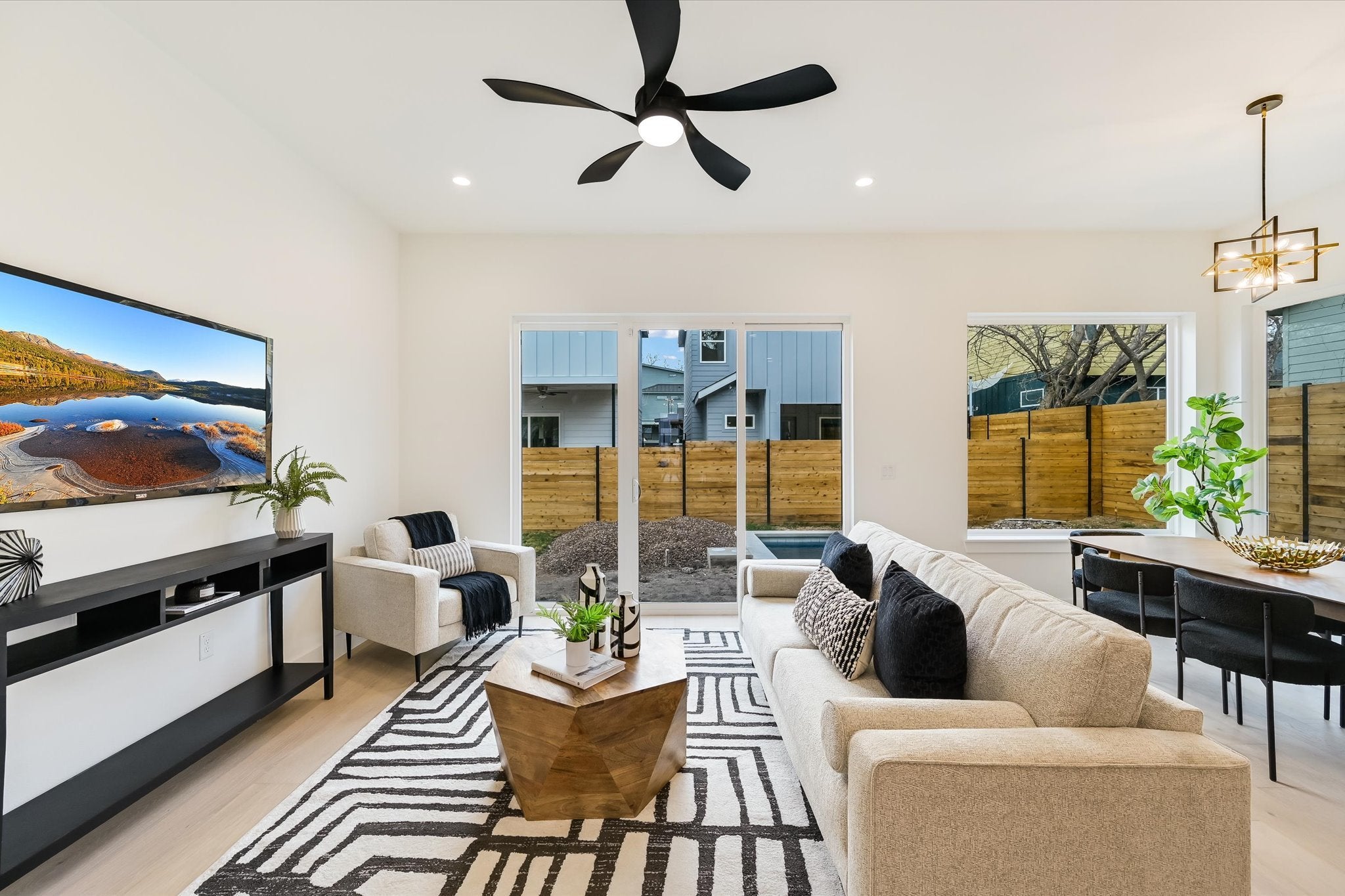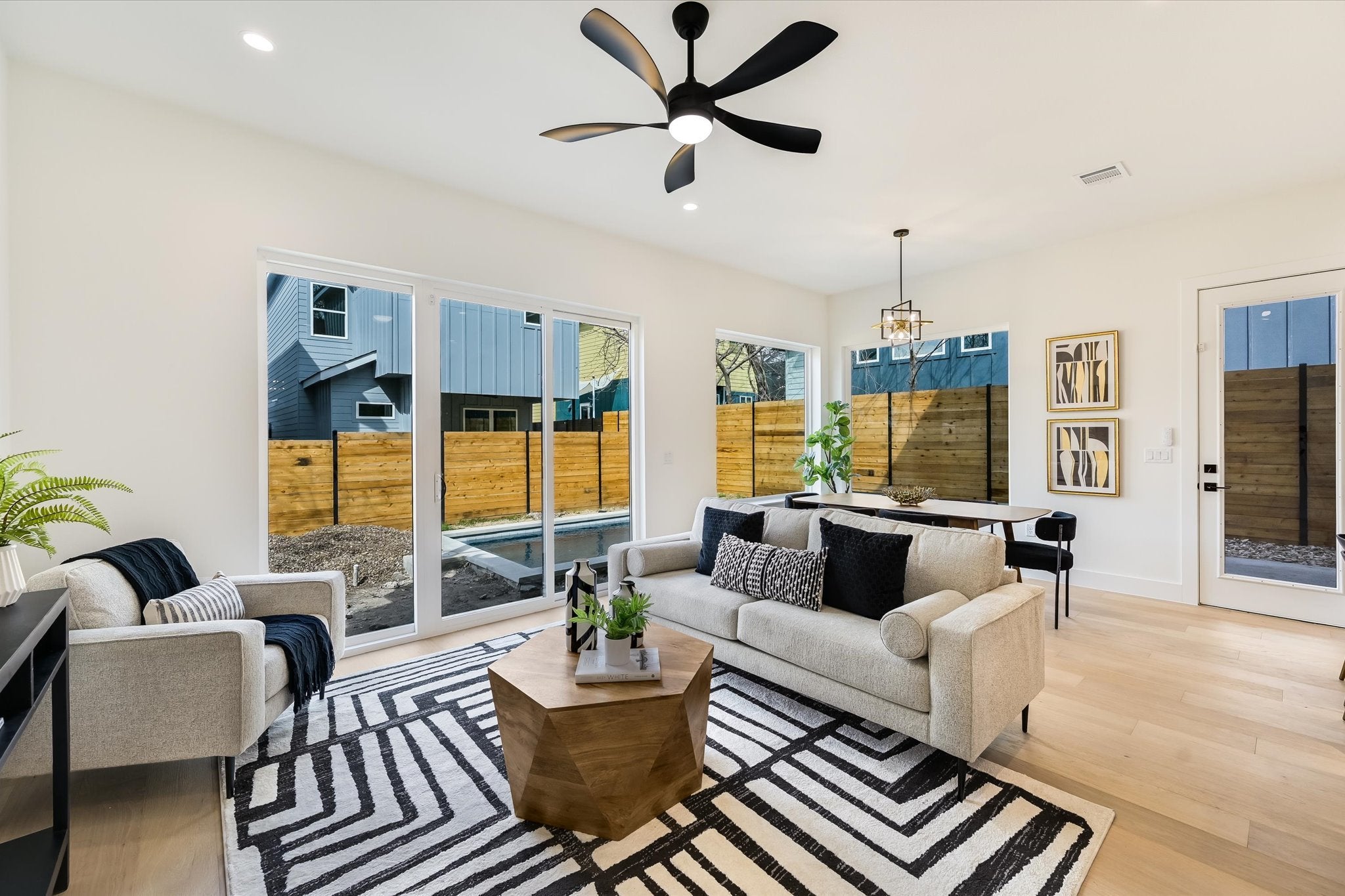 ** Landscaping is being completed this weekend**This Rosewood single-family home features 4 bedrooms and 3 bathrooms, offering a spacious two-story layout and a private pool that captures the sought-after East Austin lifestyle. Centrally located in the 78702 zip code, this property sits just 1.6 miles from the center of the city, providing quick access to the local coffee shops and dining spots that define the Rosewood area. The exterior presents a modern feel, while the interior opens into a main floor designed for easy movement between the primary living areas. Upon entering, the main floor features an open floor plan where the living room transitions into the kitchen. A full bedroom and bathroom are situated near the front entrance, making it an ideal setup for a home office or guest quarters. The kitchen is positioned to overlook the living room and the backyard, ensuring the person cooking remains part of the conversation. Upstairs, the layout includes three additional bedrooms and two bathrooms, along with a flexible bonus space that serves as a secondary lounging area. The standout feature of the second floor is the private, oversized balcony off the back, providing a shaded outdoor vantage point overlooking the property. The outdoor space is tailored for the Texas climate, centered around a fenced backyard that includes a private pool and a covered patio. This setup allows for year-round utility, whether you are hosting a summer gathering or simply enjoying the privacy of the fenced perimeter. Being in Rosewood, you are minutes away from the airport and the major commuter routes that serve East Austin. The location puts you within walking distance or a short bike ride of the bars, cafes, and restaurants along the East 6th and 7th Street corridors. Living here means being part of a community with deep roots and a clear connection to the energy of the city.