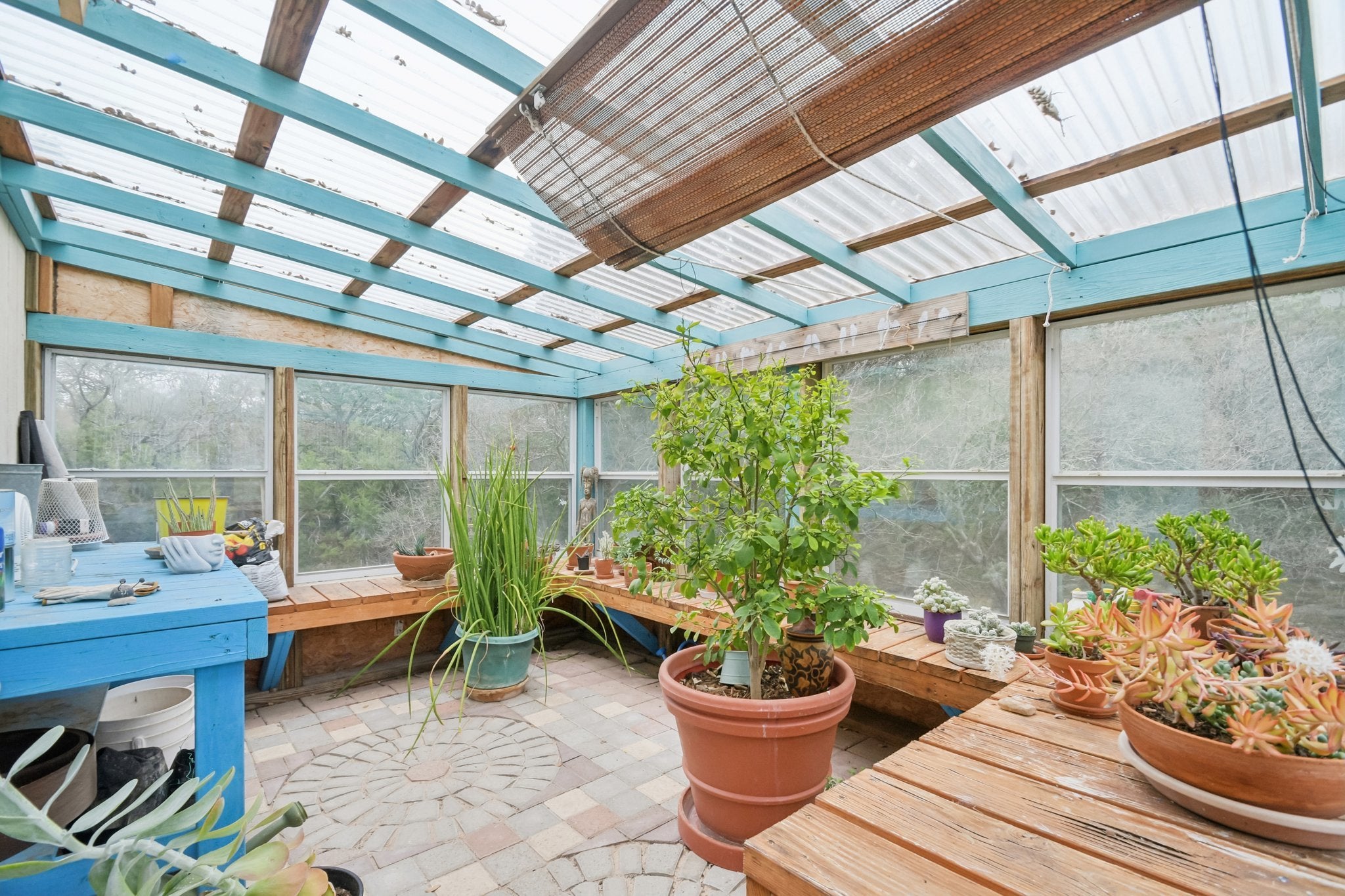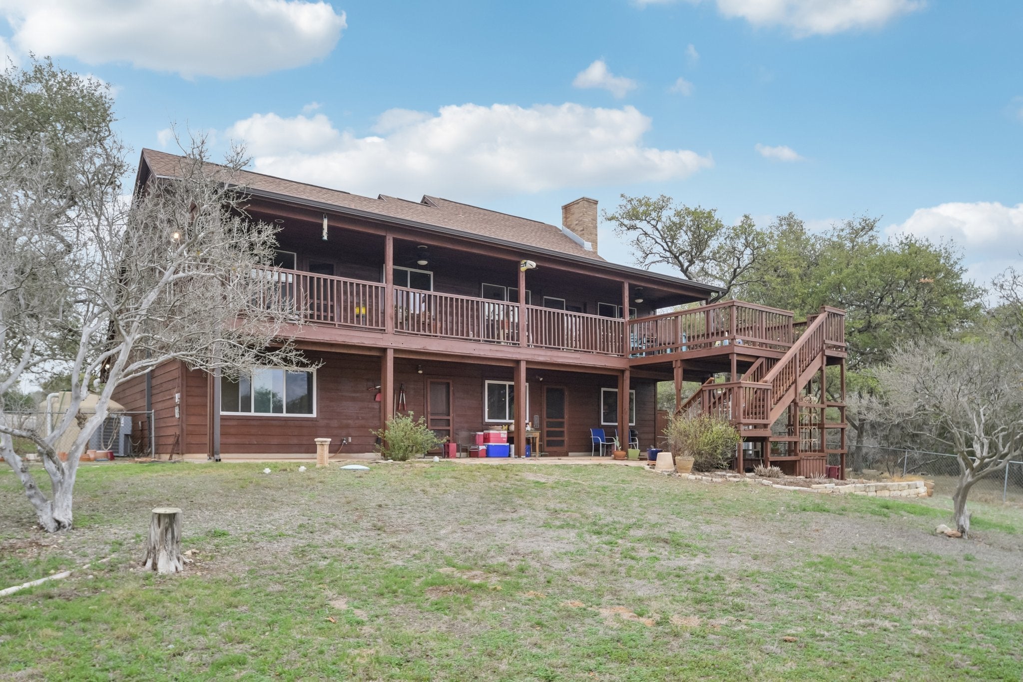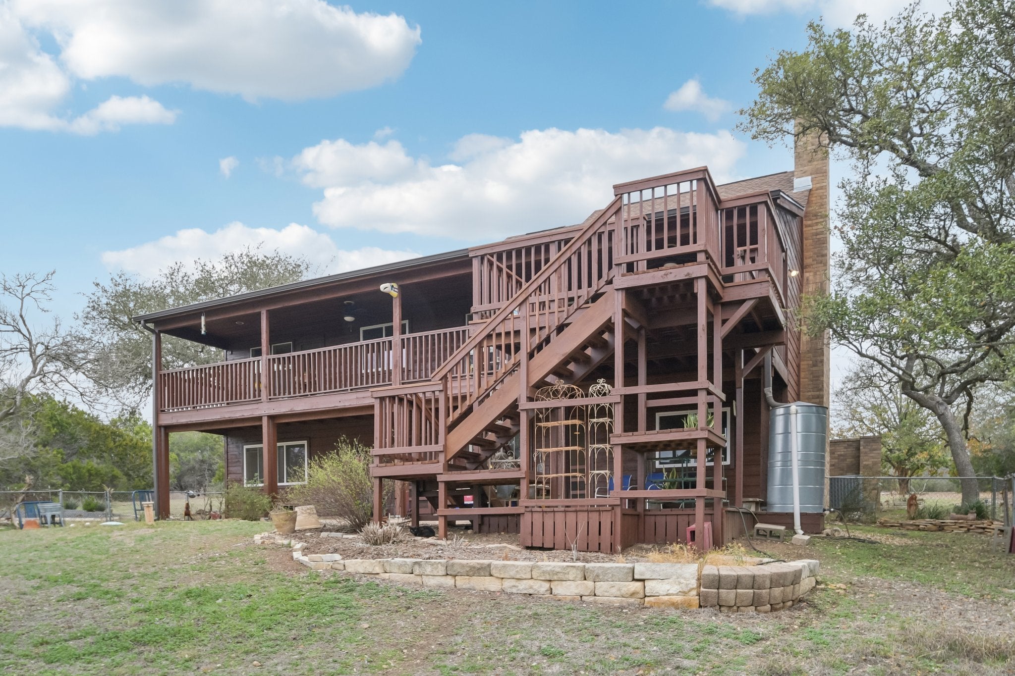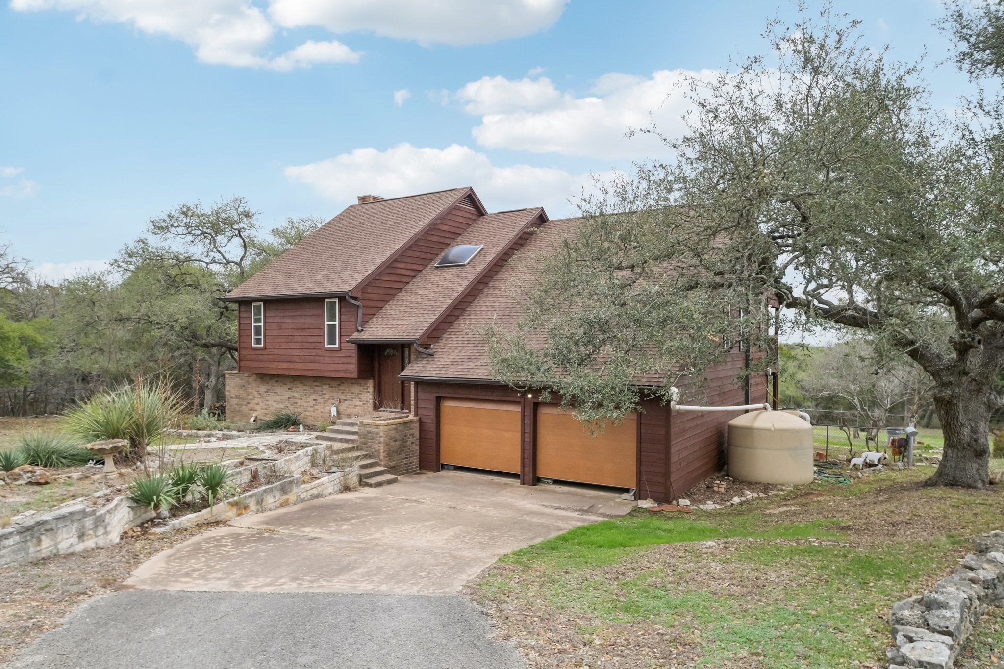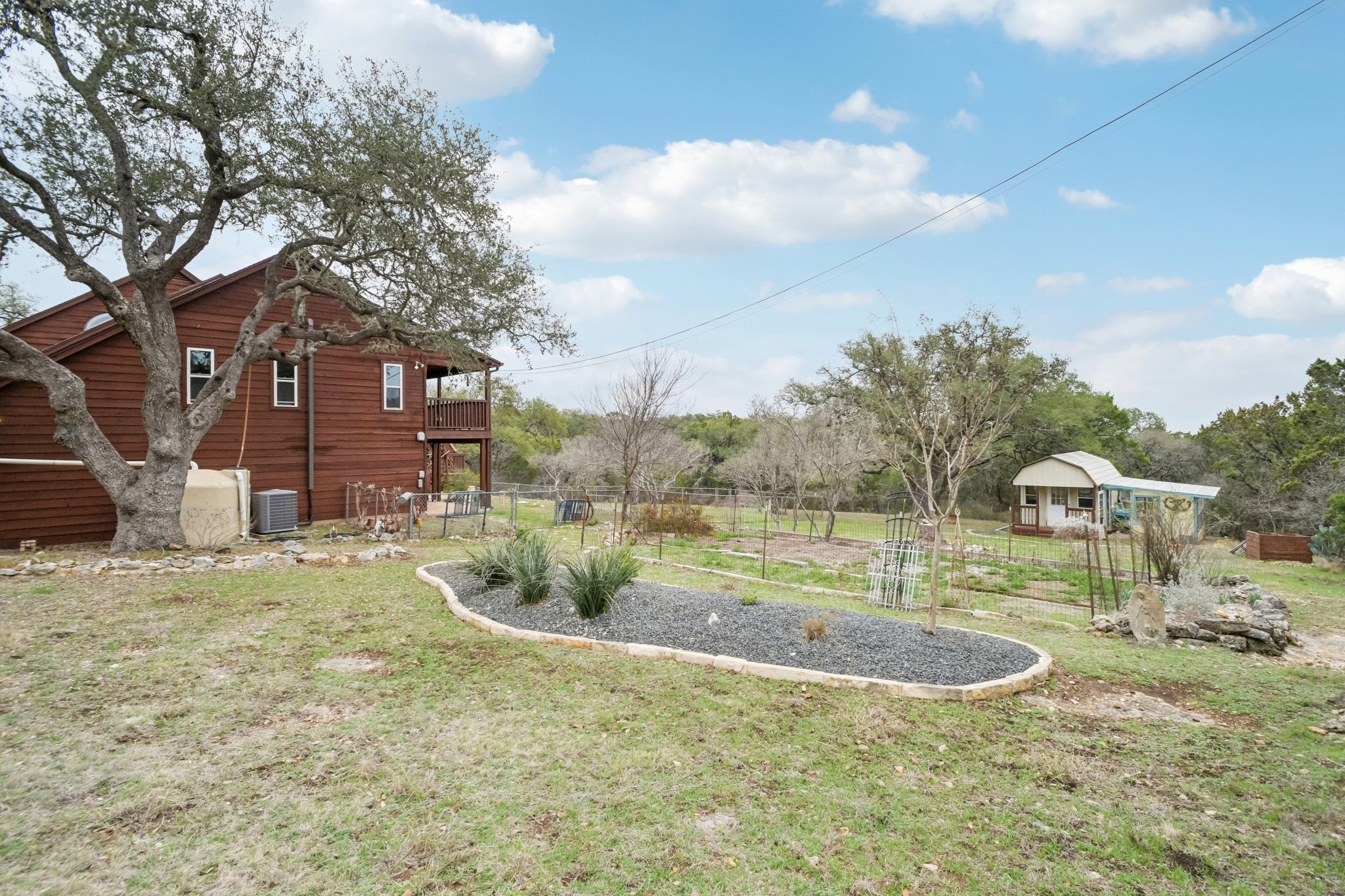 Tucked away on 5.1 scenic acres in San Marcos, this Hill Country home offers space, versatility, and views that truly have to be experienced in person. A full-size ELEVATOR makes the house operate comparable to a single-story home. The upper back deck captures sweeping panoramic scenery — far more stunning than photos can convey — creating the perfect setting to relax and unwind. The multi-level layout provides both connection and separation of space. Upstairs, the main living area flows seamlessly into the dining space and kitchen, creating an open and inviting atmosphere for gathering. This level also includes two bedrooms and two full bathrooms. Downstairs, you’ll find a cozy second living room ideal for movie nights or quiet evenings, along with a guest bedroom, full bathroom, laundry room, and direct access to the garage. A distinctive brick-surrounded interior room — currently used as a craft space — offers incredible flexibility and could easily serve as a studio, hobby room, office, or potential fourth bedroom conversion. The spacious primary suite features an oversized walk-in closet with abundant storage and a private elevator providing convenient access directly to the garage — a thoughtful feature for transporting groceries or simplifying day-to-day living. Outside, a charming attached greenhouse connects to a workshop space that could easily function as a home office or creative retreat. The property also features two rainwater collection systems (including one with a 750-gallon capacity), a salt-free water softener, and reverse osmosis filtration in the kitchen. With 3 bedrooms, 3 full bathrooms, 2 living areas, flexible bonus space, and peaceful acreage with breathtaking views, this is a home full of character, function, and Hill Country charm.