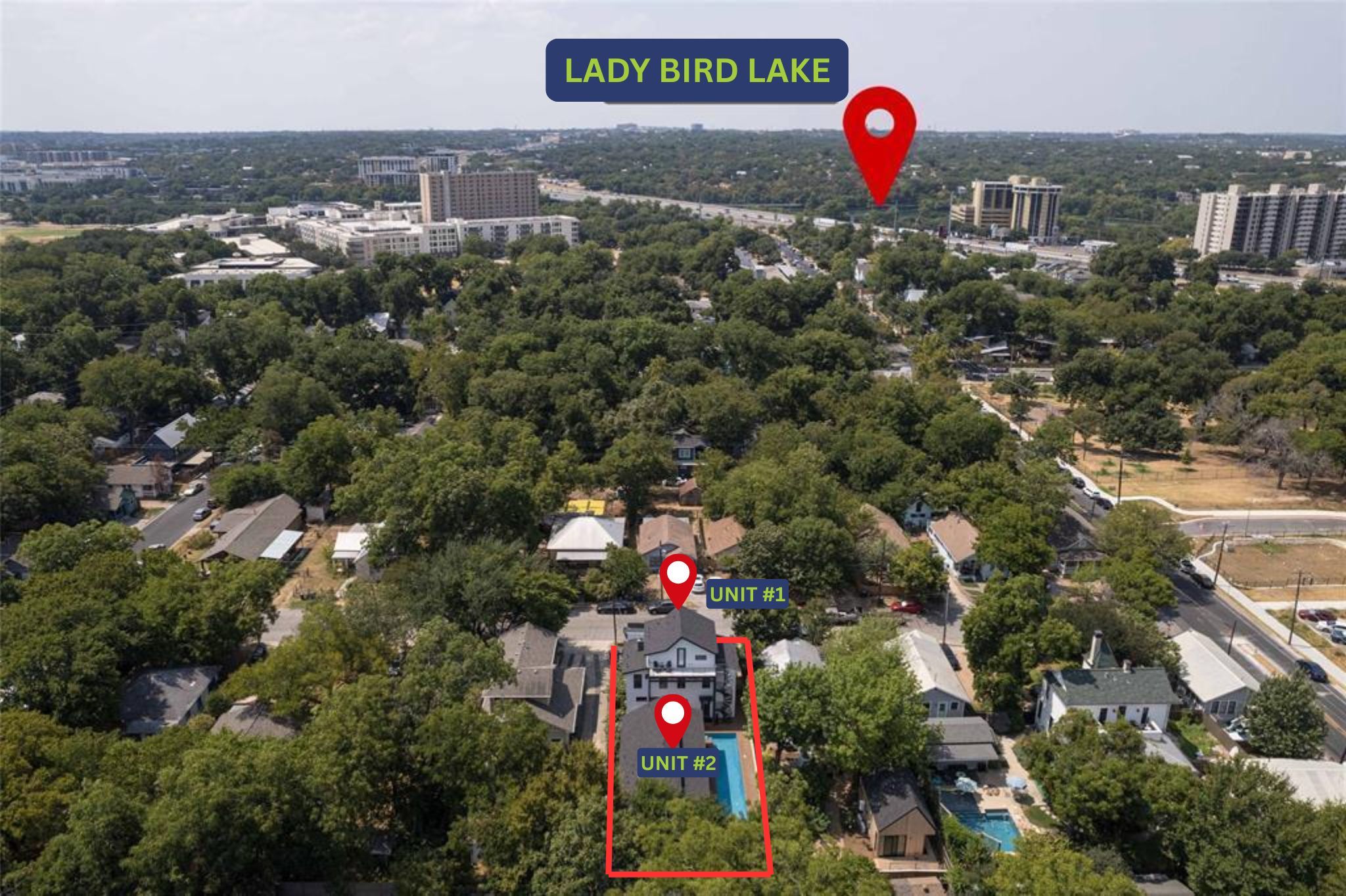 Have your cake and eat it too! Stunning property that offers the best of both worlds. Rare opportunity that allows the flexibility to reside as an owner and/or reap the benefits as an STR. Combined 4.98/5-star Airbnb Rating with 100+ reviews! 2025 Total projected revenue for both units is $165k. Approximately $75k in furniture (including 5 refrigerators and 3 washer/dryers) and other home goods make these units completely turnkey with documented numbers and property management in place. Experience the vibe and convenience of East Austin living just blocks from Downtown and Lady Bird Lake. Enjoy stunning downtown views from the balcony or relax outdoors with a custom lap pool (9' x 65'), jacuzzi, and low-maintenance turf yard. Built in 2021, this modern residence offers a front (#1) and rear unit (#2) . The front unit is approximately 2,096 sq. ft. with 3 bedrooms and 3.5 bathrooms. The main level features an open-concept living area designed for both comfort and entertaining, highlighted by a sleek kitchen with Porcelanosa tile flooring, porcelain countertops, premium appliances, and a spacious walk-in pantry. The second level hosts two spacious primary suites with full baths, while the third-floor studio—with its own kitchen, bedroom, and bathroom—has a private entrance and is currently used as its own STR. Unit #2 (rear unit) offers 1 bedroom and 2.5 bathrooms and is approx 968 sqft. The main living area boasts a very open, engaging environment. The kitchen features premium appliances, large tile flooring from Porcelanosa, and porcelain counters. Step out to the covered patio with gorgeous Turkish light fixtures, views of DT Austin, as well as the inviting and luxurious backyard lap pool (9'x65'). Additional property highlights include custom closet systems, integrated security, high-end Porcelanosa bathroom finishes, Sonos home audio system, and two secured parking spaces with an electronic gate.