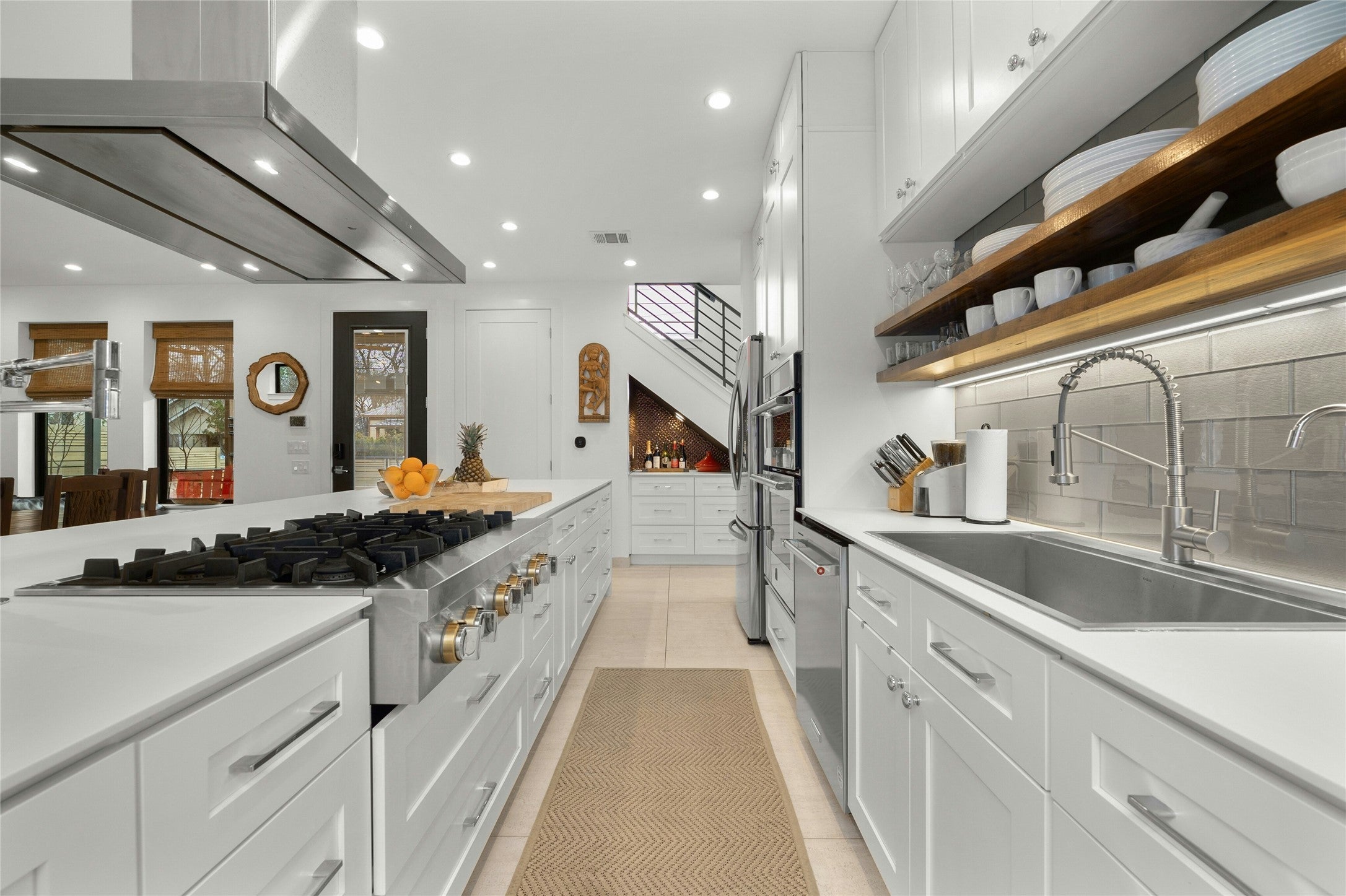 - Cooktop, Dishwasher, Exhaust Fan, Gas Cooktop, Disposal, Microwave, Range Hood, Stainless Steel Appliance(s), Built-In Gas Oven
