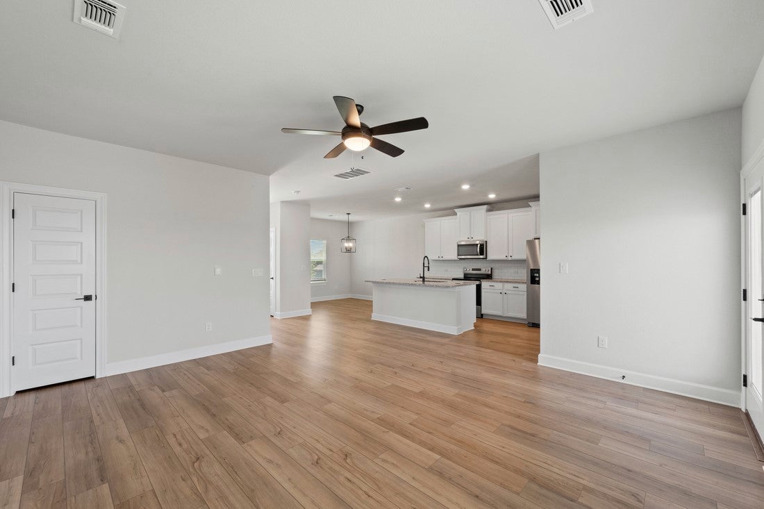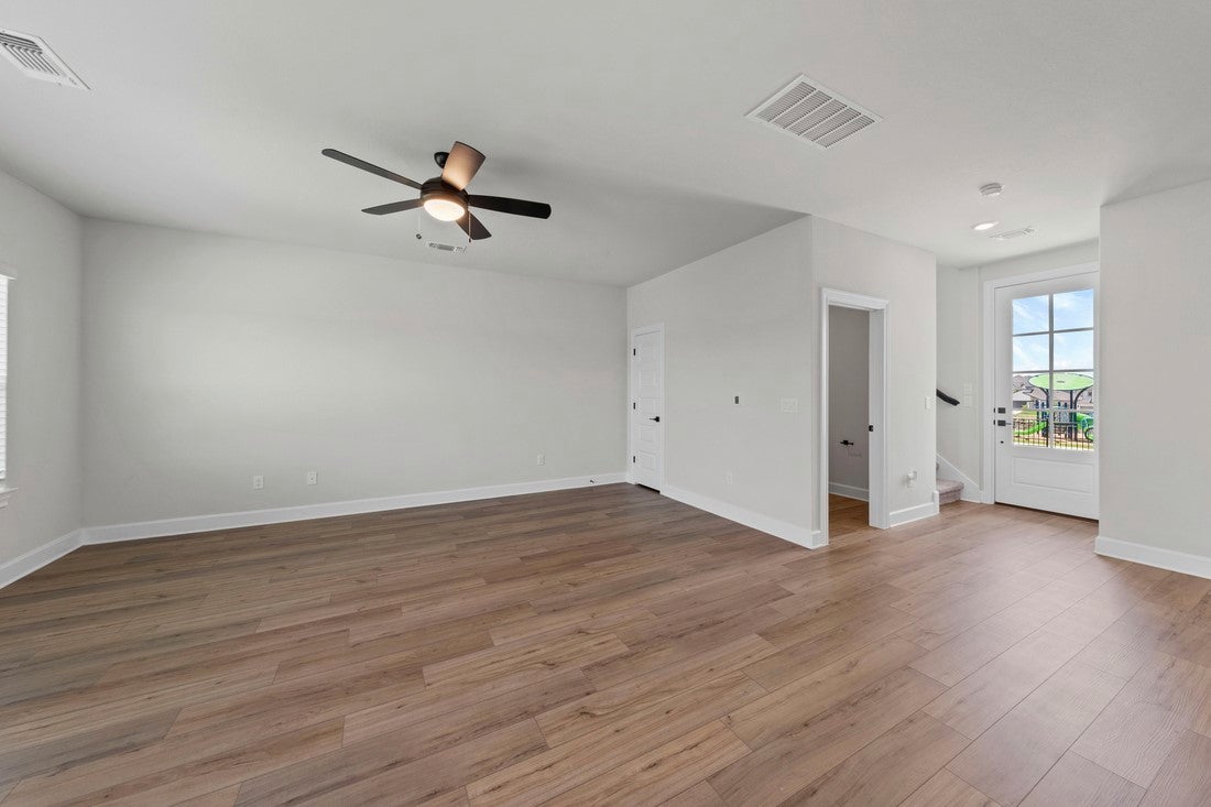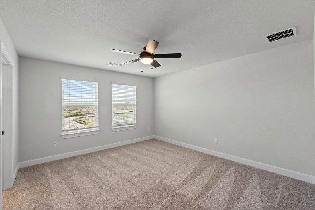 The Antone is a thoughtfully designed two-story home offering approximately 1,519 sqft of living space with 3 bedrooms and 2.5 bathrooms. As you step through the welcoming foyer, an open layout reveals a generous family room, where laughter is sure to fill the air and game nights will be abundant, flows into a cozy dining area and a chef-inspired kitchen equipped with stainless steel appliances, granite countertops, an oversized island, modern tile backsplash, and 42 inch upper cabinets with crown molding. Upstairs, the private master retreat impresses with its spacious walk in closet and spa inspired bath, while two additional roomy bedrooms and a full bathroom offer flexible space for family or work-from-home use. Located on one of Terrata Homes limited flag lots, outside, you’ll find a covered front porch with wrought iron fenced front yard with easy access to one of the communities convenient pocket parks., professionally landscaped front yard, and a back patio off the family room—ideal for relaxing or entertaining. Located in Whisper Valley’s eco-conscious community—referred to as a “Naturehood”—homeowners benefit from sustainable features including geothermal HVAC, solar panels, spray foam insulation, and homes pre wired for Google fiber and future electric vehicle chargers, plus access to a resort-style pool, a fitness center, community gardens, miles of trails, a dog park, and a net-zero energy clubhouse—all surrounded by over 700 acres of green space and future connection to a 600-acre public park. Here, you will find a seamless blend of eco friendly lifestyle, comfort and functionality encouraging you to create memories in every corner. **Application fee paid at time of application and deposit is payable to online portal at time of approval.**