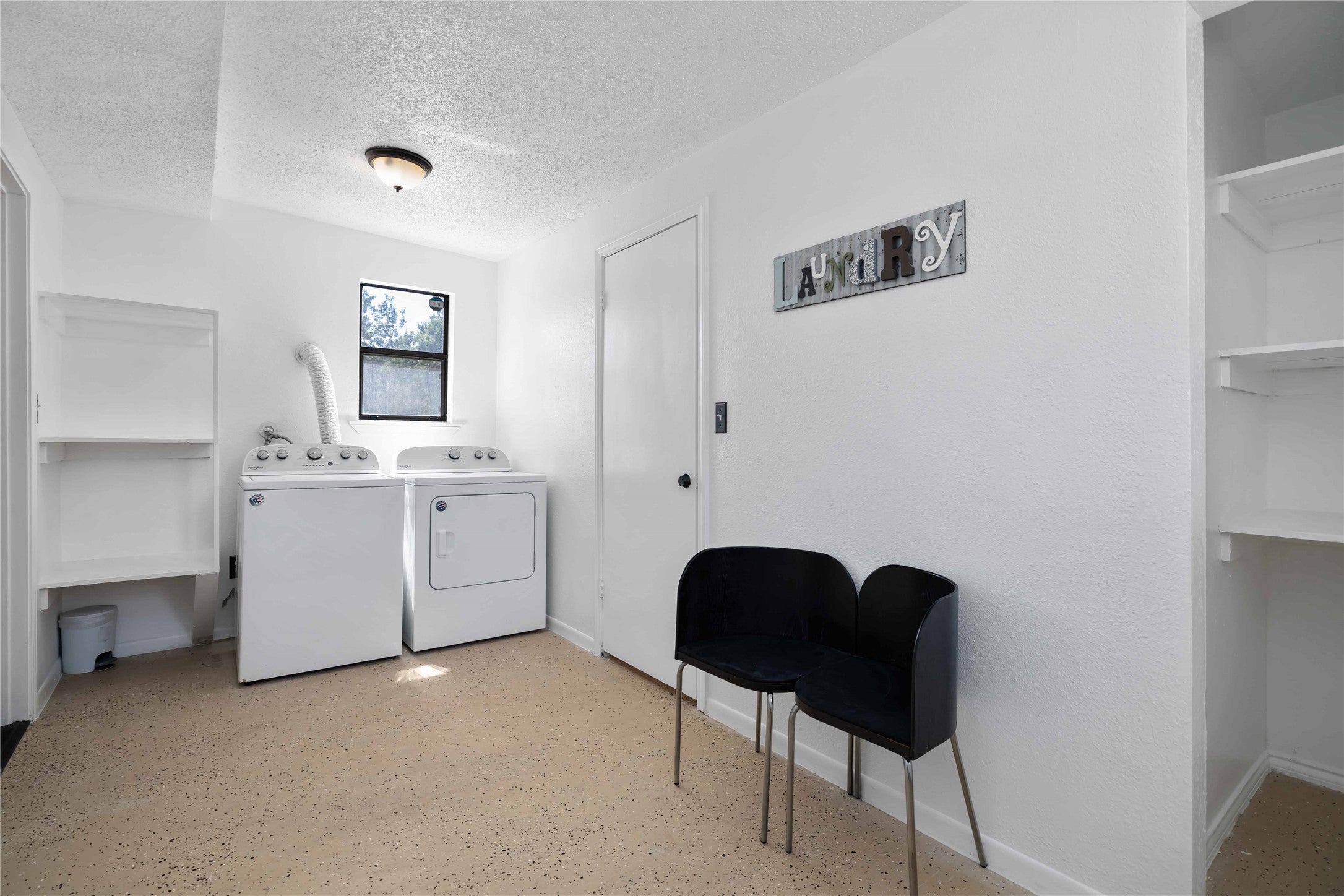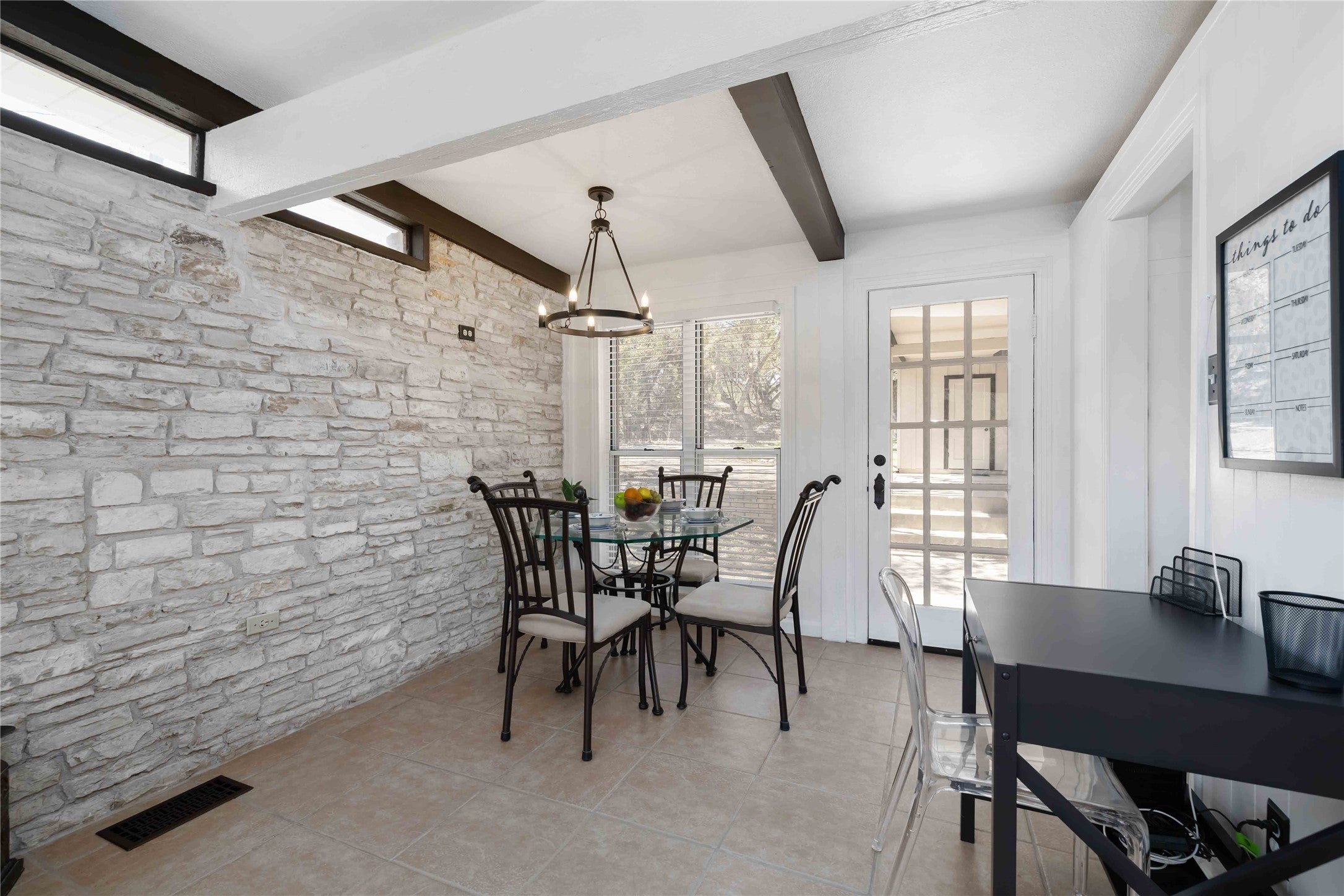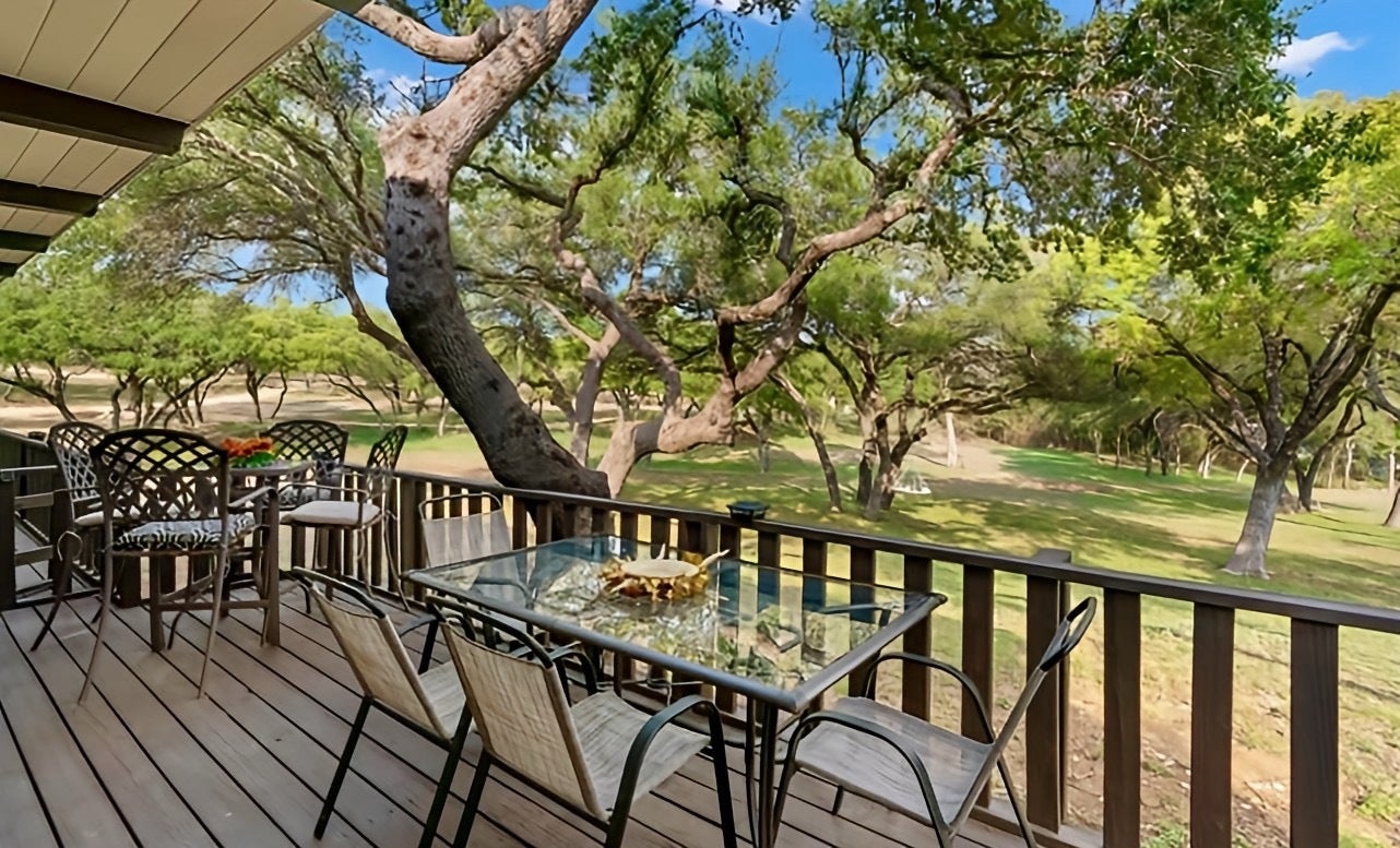 This unique, fully renovated Mid-Century Modern gem comes furnished and is move-in ready! All appliances and washer/dryer convey. Also included are outdoor patio/deck seating, fire pit, fire pit seating, upgraded tether ball set, and a multitude of outdoor game equipment. This exceptional waterfront 4.36-acre property nestled amidst the tranquil surroundings of Lake Travis offers a rare blend of serenity and style. Boasting breathtaking views of the lake and the picturesque sunsets, this home is the ultimate retreat for those seeking peace and natural beauty. Wake up to stunning views of the lake every morning, which can be enjoyed from every room. Step inside to discover a thoughtfully designed interior providing the perfect balance of comfort and functionality. The open concept living area is bathed in natural light, creating a warm and inviting ambiance, which will be enjoyed while cooking or simply relaxing by the fireplace. The kitchen is ideal for entertaining guests. Along the entire back side of the home is a deck with outdoor furniture, perfect for watching the sunsets with your favorite beverage. The floor plan itself invites the serine outdoor views inside from every single room. A newly graveled expansive private walking trail provides the perfect setting for leisurely strolls with pets or horses or simply outdoor enjoyment. This stunning lakefront home is conveniently located near golf courses, schools, restaurants, entertainment, churches and hiking trails. The unrestricted, unincorporated large lot offers ample possibilities, including adding a private boat dock, adding an additional home or two, adding an ADU, or subdividing into multiple waterfront lots. The possibilities are endless! Hurry, this one won't last due to the under $1MM price point!