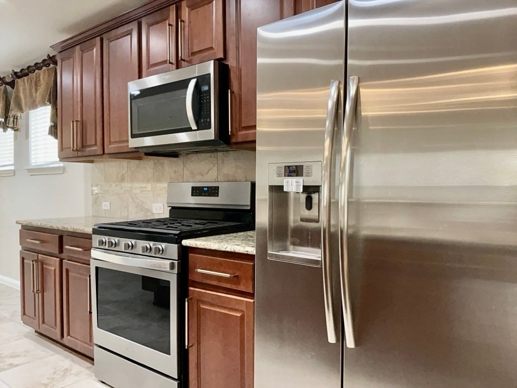 - Bar Fridge, Dryer, Dishwasher, Gas Range, Microwave, Refrigerator, Washer