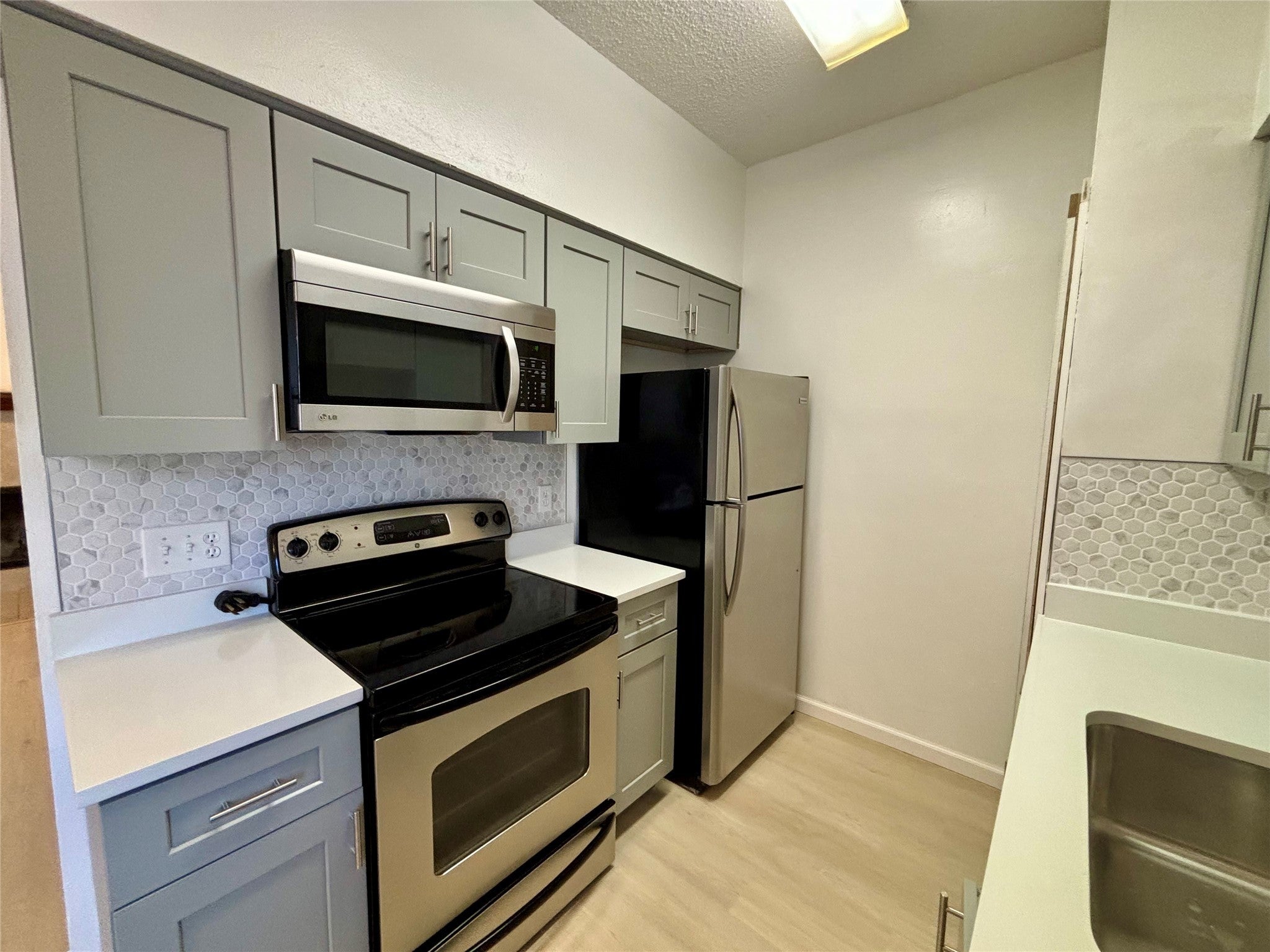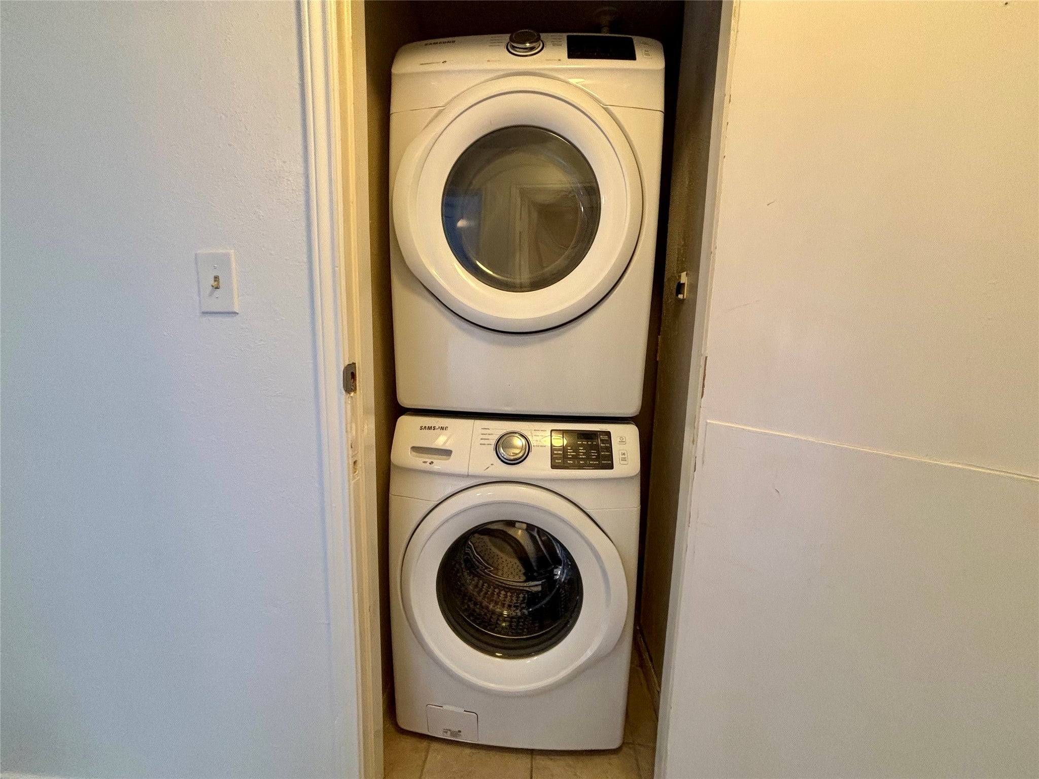 - Dishwasher, Free-Standing Electric Range, Disposal, Refrigerator, Washer/Dryer Stacked
