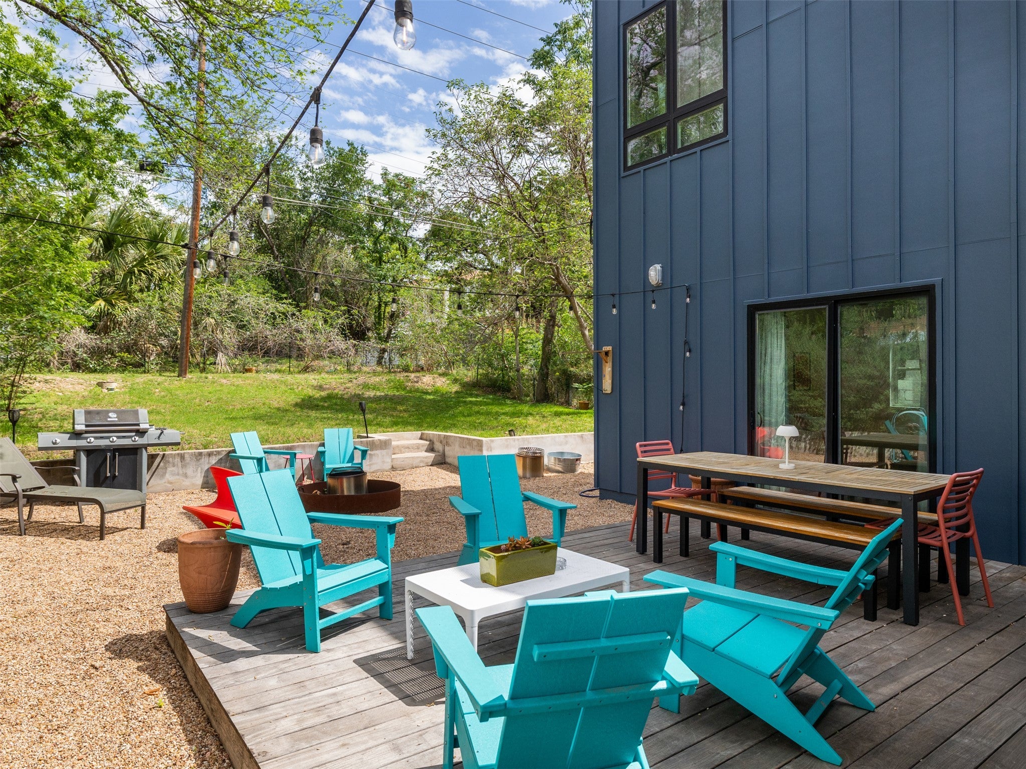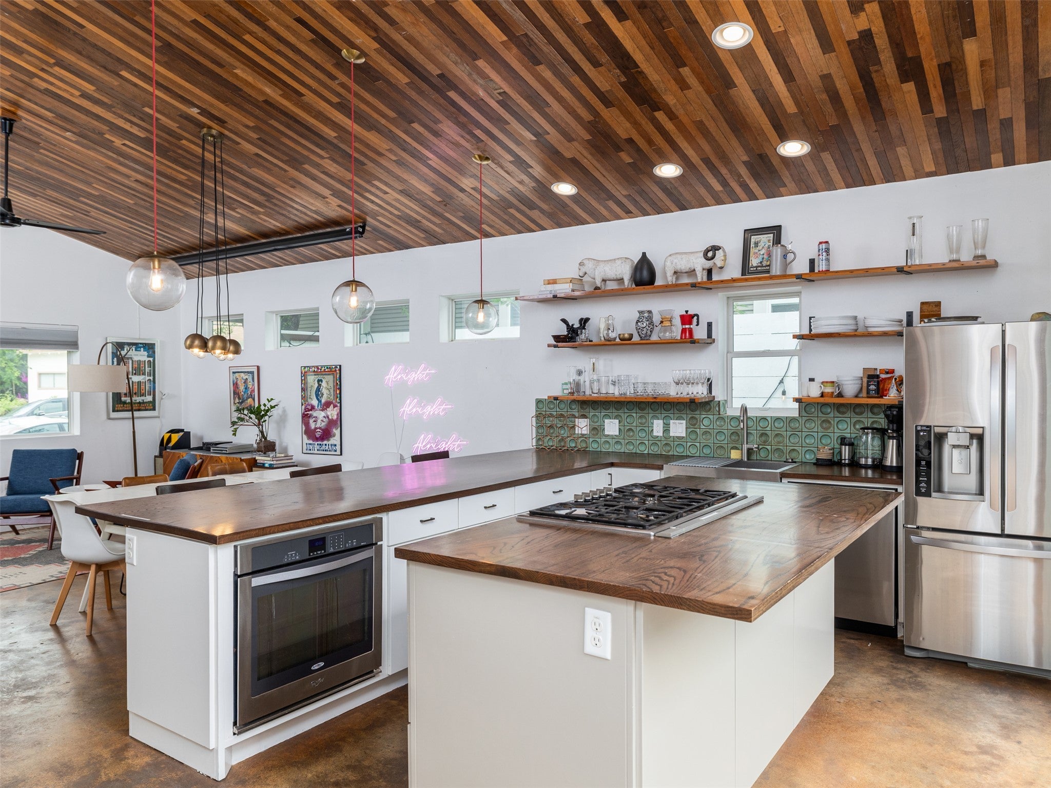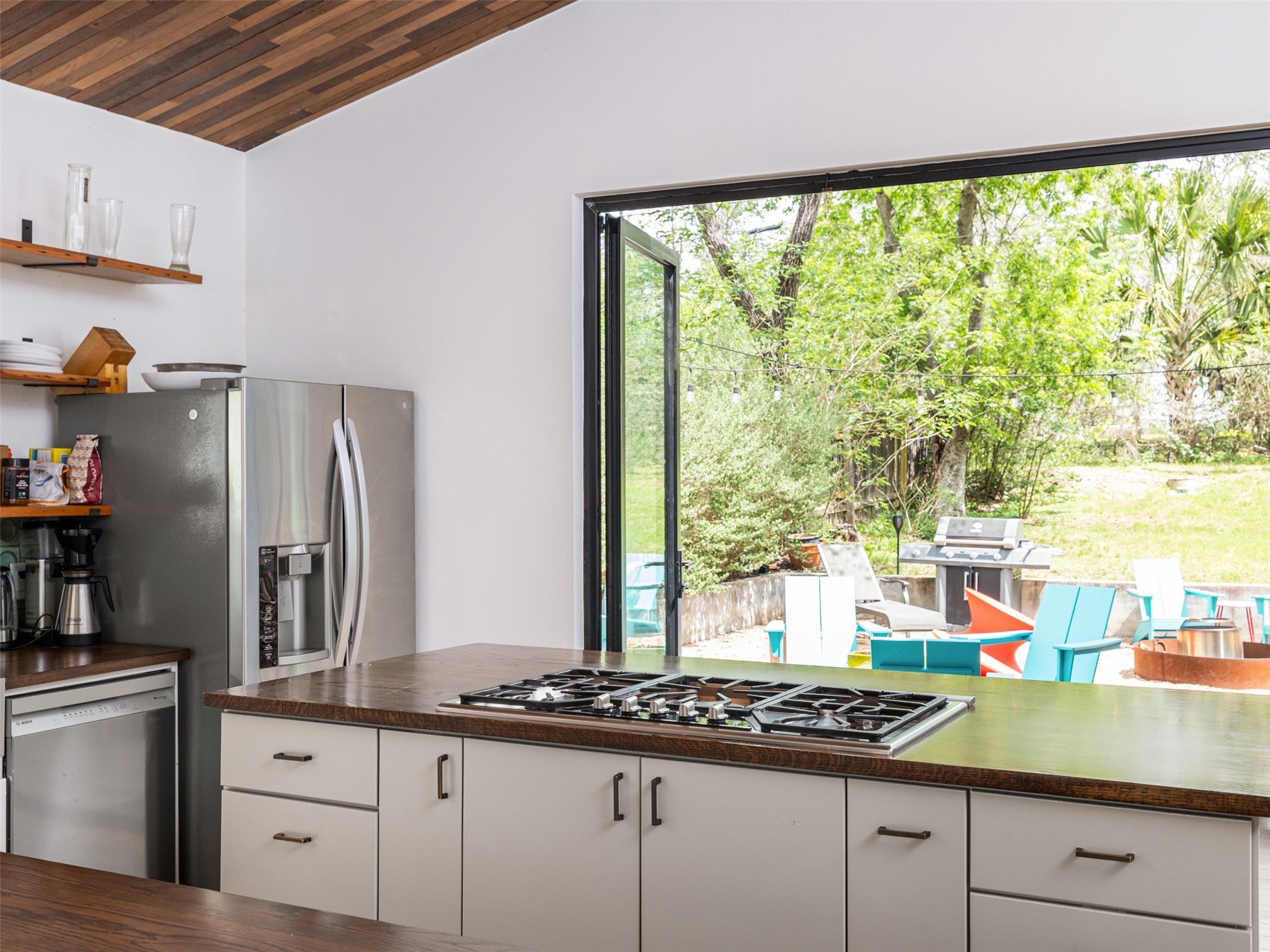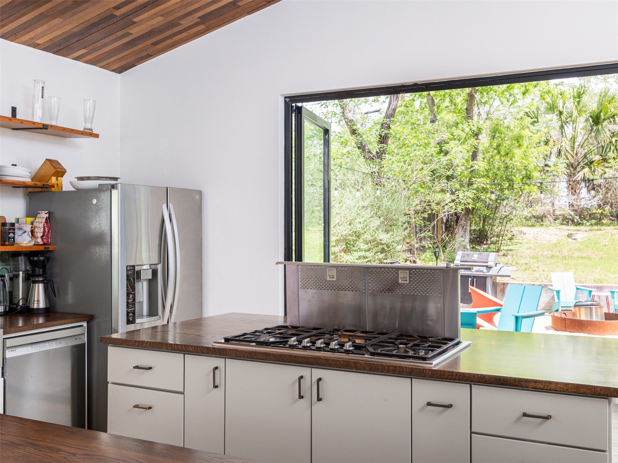 Eastside walkability meets custom modern warmth built with entertaining in mind. Custom elements include reclaimed wood ceilings, hand-wrought terra cotta backsplash, and butcher block counters. The glass-paneled NanaWall effortlessly folds like an accordion to flow into the back deck and the spacious, terraced backyard. Dual primary suites adorn opposite ends of the home for maximum privacy, and a Charleston-inspired sun room is perfect for your office space upstairs. 150 inch pop-down projector screen, rooftop solar panels, motorized retractable awning, large lot, 1-car garage, Downtown balcony views, and a SECRET vibey room w/ wine fridge make this home completely different from the competition. No more cold white boxes! Live your story in a warm, modern, urban home that combines a thoughtful floor plan, tasteful elements, and vibrant character that’s walkable to all the great places that East 11th St. and East 6th St. have to offer.