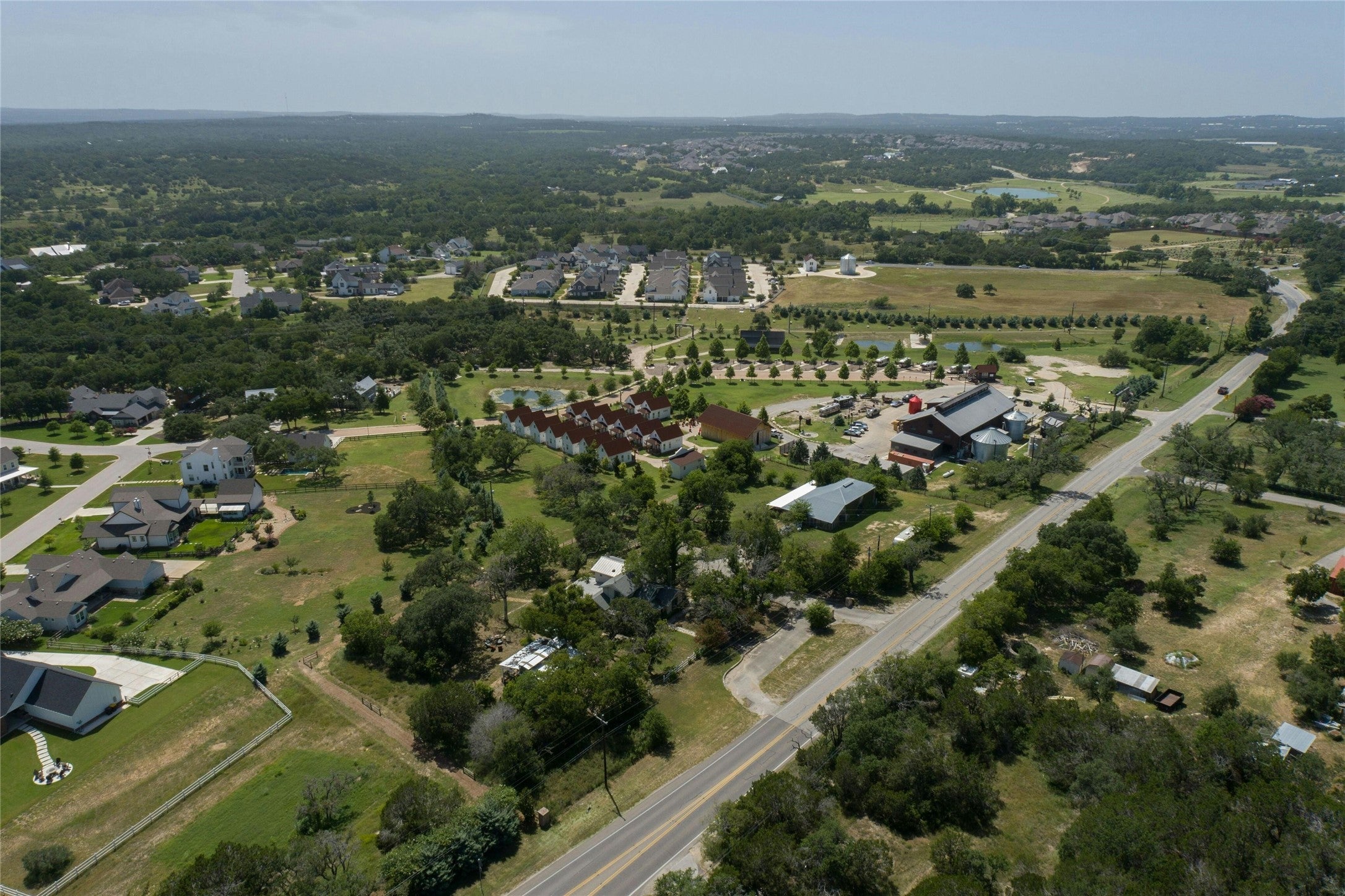 Prime opportunity just one minute from downtown Dripping Springs with high-visibility FM 150 frontage in the heart of one of Central Texas’ most dynamic growth corridors. Positioned on 2 level, usable acres with city water and an oversized septic system in place, this property offers the infrastructure and exposure ideal for immediate hospitality, event, office, or mixed-use commercial conversion. Previously operated as a successful bed and breakfast and event venue, the site is already optimized for income-producing operations. Its flexible configuration supports a wide range of concepts including a wedding/event venue, corporate retreat center, wellness facility, restaurant or cafe, boutique lodging, professional office suites with shared conference space, creative studio collective, or live/work development. Mature trees, multiple patios, and garden areas create natural settings for outdoor ceremonies, patio dining, event installations, and expanded gathering areas, while strong FM 150 traffic exposure and public road access enhance long-term visibility. With ample room for potential parking expansion, the site offers rare turnkey potential within the booming Driftwood/Dripping Springs corridor. The estate includes two substantial structures approximately 6,000+ sq ft: fully renovated 4 bedroom, 4 bath main building and converted historic barn guest hall featuring 3 bedrooms, 3 full baths, separate kitchen and living area, and expansive central hall designed for receptions, conferences, dining service, or large-scale gatherings. Each of the seven bedrooms includes a private full bath, allowing seamless conversion to executive offices, private therapy suites, short-term rental accommodations, or boutique hospitality units. *Buyer and Buyer's Agent are responsible for conducting all due diligence and verifying all information, including but not limited to: property condition, zoning, permits, taxes, capacity regulations, utility access and square footage.*