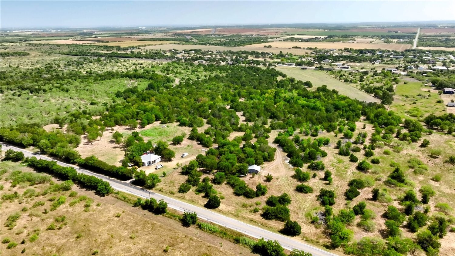 Fantastic opportunity to own land within the Opportunity Zone in Travis County. This property is two side by side parcels totaling 35 +/- acres with 900 +/- feet of road frontage along Maha Road. A 4" water line with Creedmoor-Maha Water Supply serves this property. There is a 6" line about .25 miles away. There are currently two water meters on the property. Excellent proximity to Austin Bergstrom International Airport at just 19 minutes away, Tesla is 13 minutes away, and Downtown Austin just 30 minutes in light traffic. Level topography with native trees and wet weather tanks and creek would make this a wonderful buy and hold ranch or for personal use as well. This property is not currently AG exempt but could qualify, ask agent for details. The 2 bedroom, 1 bathroom farmhouse has a newer metal roof and has income producing potential. 15000 Maha Rd offers so much potential. Don't miss it!