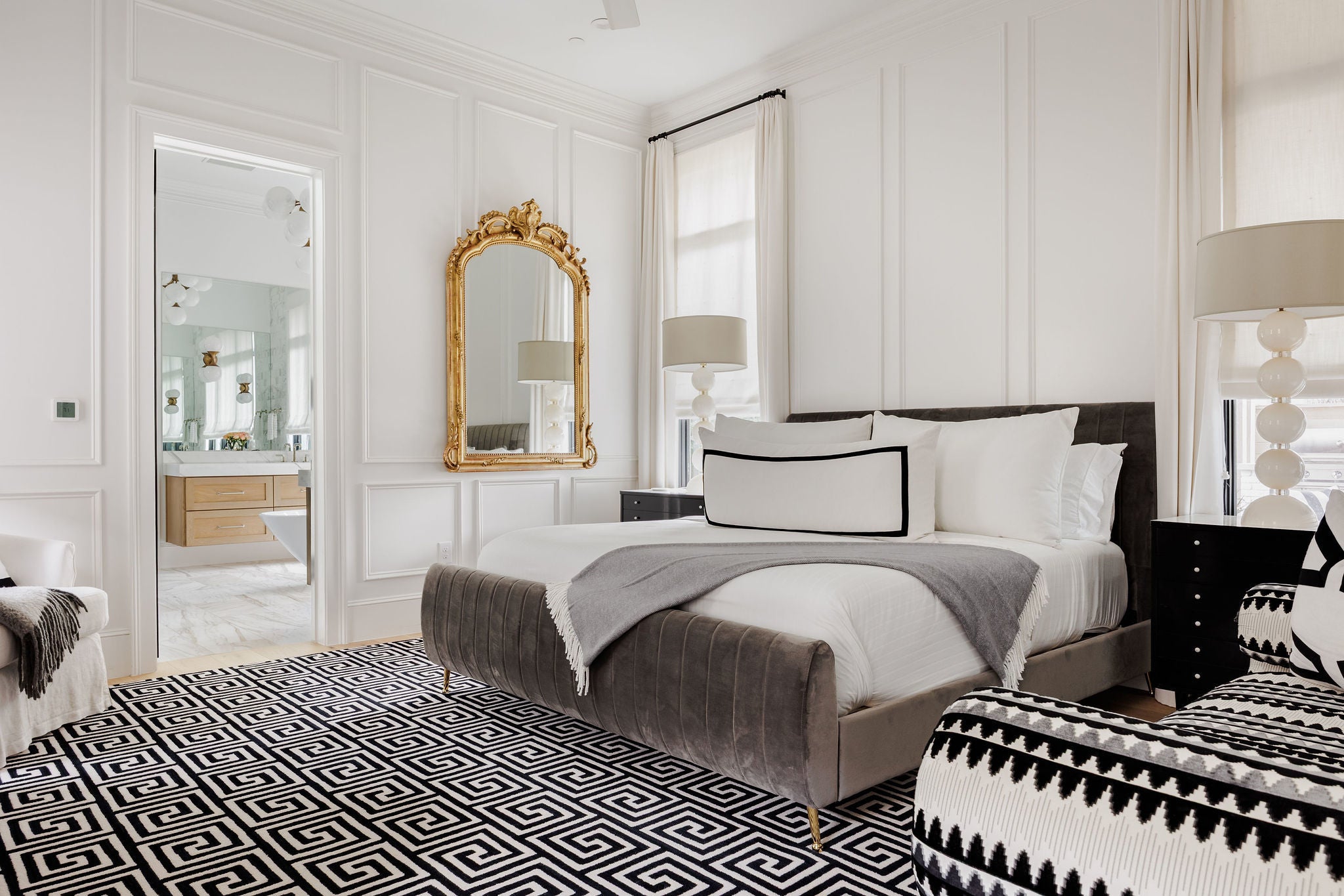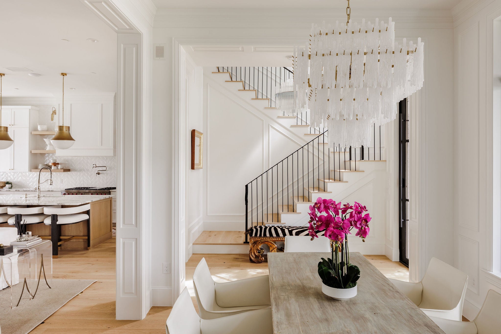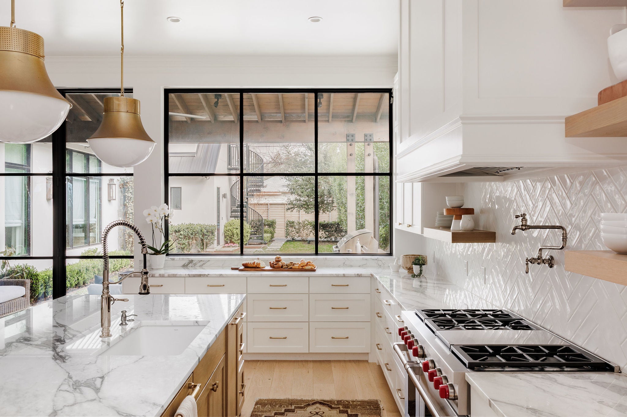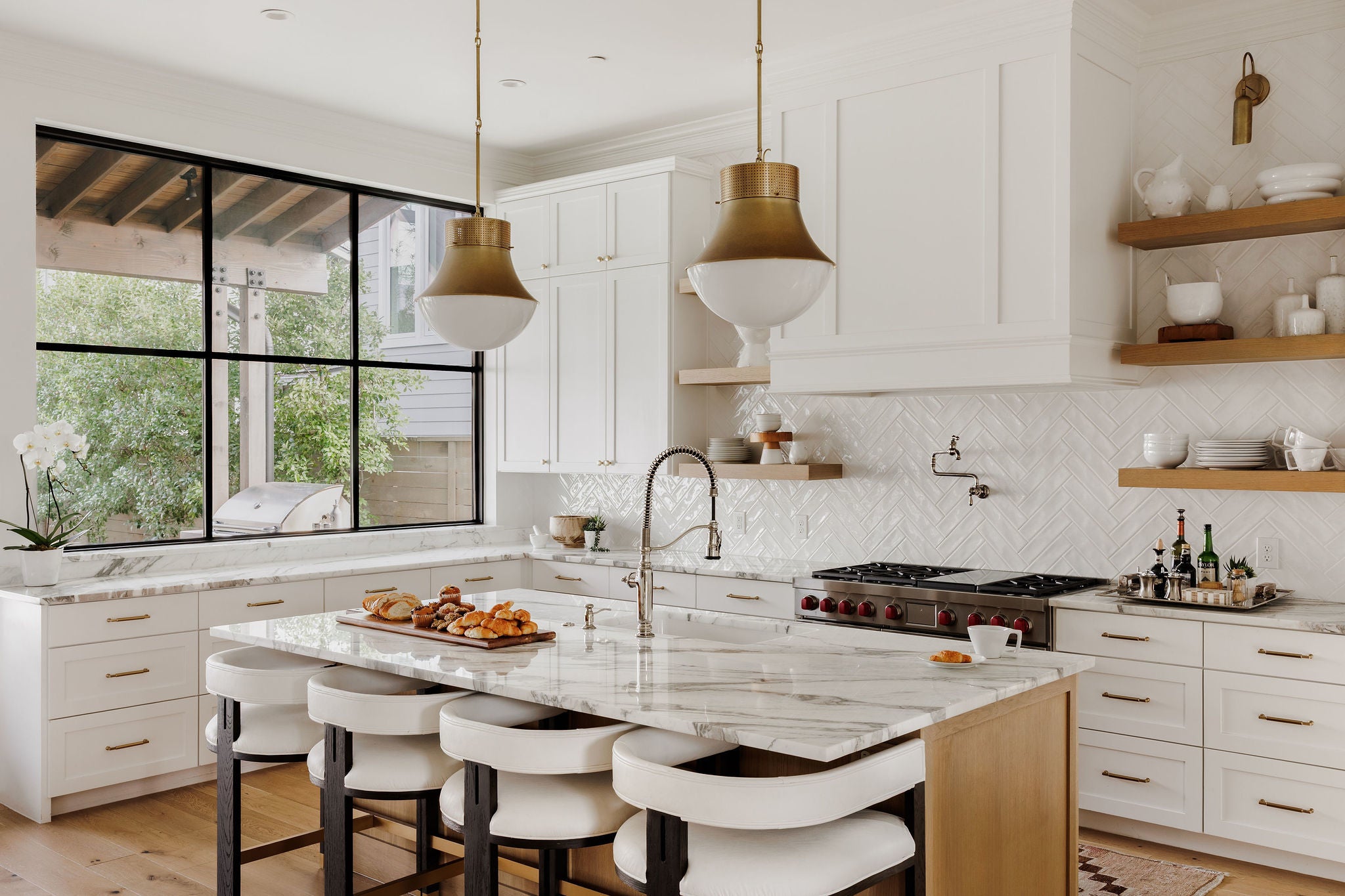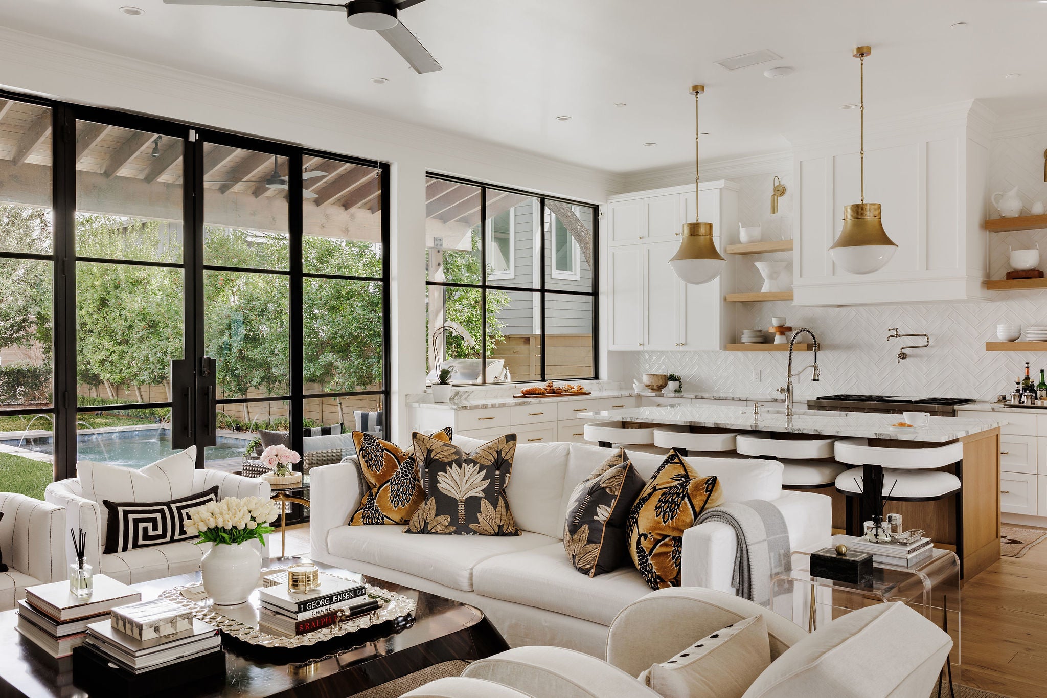 Completed in 2023 by Nalle Custom Homes, this 5-bedroom, 5.5-bath residence blends timeless craftsmanship with elevated modern design. Thoughtfully curated throughout, it features custom trim and molding, wide-plank white oak floors, and striking designer lighting for a refined yet welcoming feel. The main level offers a serene first-floor primary suite with custom millwork and a spa-like bath wrapped in Calacatta marble, along with a beautifully appointed powder bath. At the heart of the home, the chef’s kitchen showcases inset custom cabinetry, marble countertops, and an oversized island with natural wood accents. A paneled Sub-Zero refrigerator and Wolf range with pot filler anchor the space, while open shelving and statement lighting add warmth. A custom steel pantry door reveals an oversized pantry with a coffee station and Sub-Zero wine column. Just off the kitchen, the dining bar area is designed for effortless entertaining, complete with a beverage refrigerator and Scotsman sonic ice maker. Upstairs includes three bedrooms—two en-suite and one with a hall bath—plus a versatile secondary living space. All bathrooms and laundry areas are finished in natural marble with high-end Rohl and Kohler fixtures, reinforcing the home’s cohesive luxury. Outdoor living is equally impressive, with a private backyard featuring a pool, spa, built-in grill, and double-drawer refrigerator for seamless indoor-outdoor enjoyment. A detached two-car garage with alley access and a custom sliding electric gate includes a private 1-bedroom, 1-bath apartment with its own laundry and mini kitchen—ideal for guests, extended family, or rental income. Ideally located in Central Austin, the home is walkable to Postino, Tiny Boxwoods, and Bryker Woods Elementary, offering luxury living in a prime location.