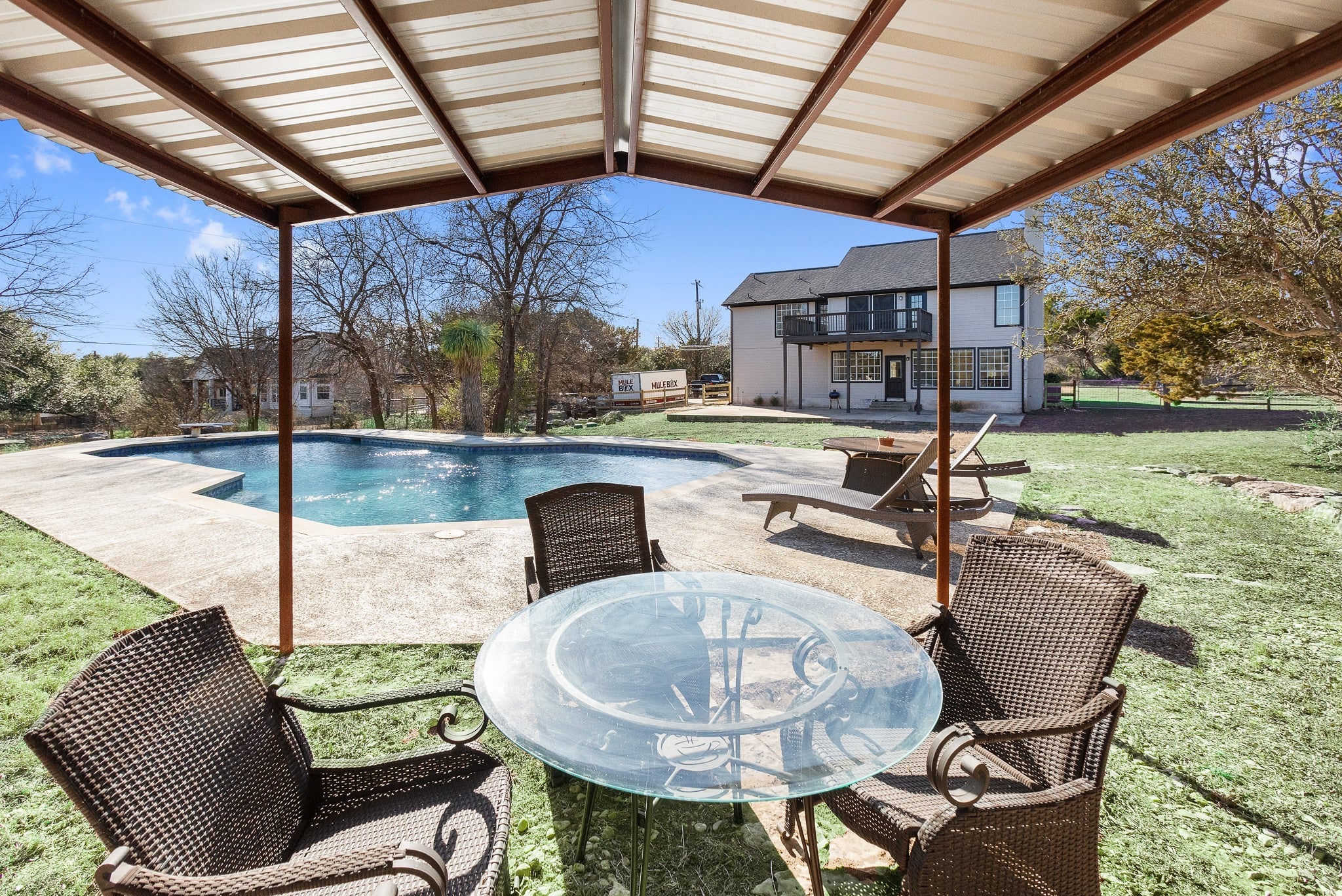 Welcome to your own private retreat in the heart of the Texas Hill Country, offering an Austin address within the highly sought-after Dripping Springs ISD. This beautifully updated property features 4 spacious bedrooms and 2.5 bathrooms, thoughtfully refreshed from top to bottom. Recent improvements include a brand-new roof (2025), new flooring throughout, a completely new kitchen, fresh interior and exterior paint, updated light fixtures, a new fence, and a new septic pump, providing true move-in-ready peace of mind. Step outside to your private backyard oasis, where the pool was fully renovated in 2019 with a Pebble Tec finish, updated tile, and stonework. Enjoy worry-free summers with a new swimming pool pump and breaker (2023). Inside, comfort and efficiency abound with new AC units and air purifiers (2020), a new water heater (2023), and a well booster pump (2017). What truly sets this property apart is the approximately 780 sq ft second building, complete with its own electric meter and 220V connection, offering exceptional flexibility as a studio, workshop, office, guest quarters, or potential income-producing space. All of this is situated on a quiet, peaceful street with no HOA, giving you the freedom to enjoy Hill Country living your way. This rare opportunity blends privacy, modern updates, and versatility—don’t miss your chance to make it yours. Discounted rate options and no lender fee future refinancing may be available for qualified buyers of this home.