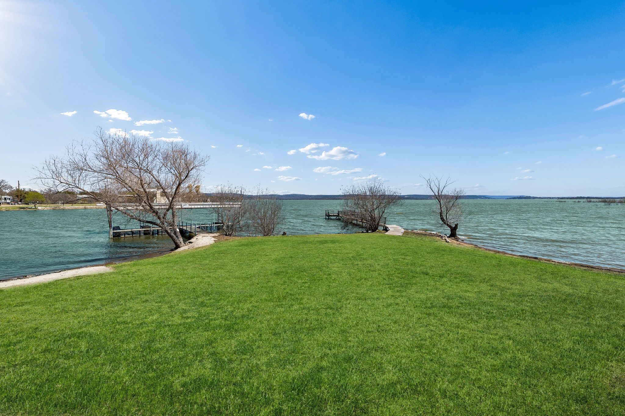 Driftwood Shores Resort spans 2.73 acres on Lake Buchanan with an incredible 875’ of waterfront—your chance to own a proven lakefront resort with massive potential. The property includes 8 fully equipped cottages, 2 homes, a front office, a leased post office, a lakeside party barn, multiple storage buildings, and a long list of amenities designed for easy lake living and income production. The waterfront delivers big: covered boat slips, a concrete boat ramp, natural shoreline with concrete steps into Lake Buchanan, plus a private fishing pier and a picnic pavilion just steps from the water. It’s the ideal setup for guests, anglers, and lake lovers alike. The party barn offers HVAC, a kitchenette, concrete floors, and an attached carport—perfect for events or gear storage. Additional storage buildings include a workshop, supply shed, tractor barn, and garden shed, giving the property the operational backbone of a true lakefront resort. Each cottage features its own grill, parking, AC, kitchen setup, and unique layout, offering flexible accommodations for short-term rentals, long-term guests, or a full resort operation. With no city zoning or regulations, abundant parking, two lakeside firepit areas, and wide-open lake views, Driftwood Shores Resort is a rare opportunity to own, operate, reimagine, or redevelop a multifaceted waterfront property on one of Texas’ beloved lakes.