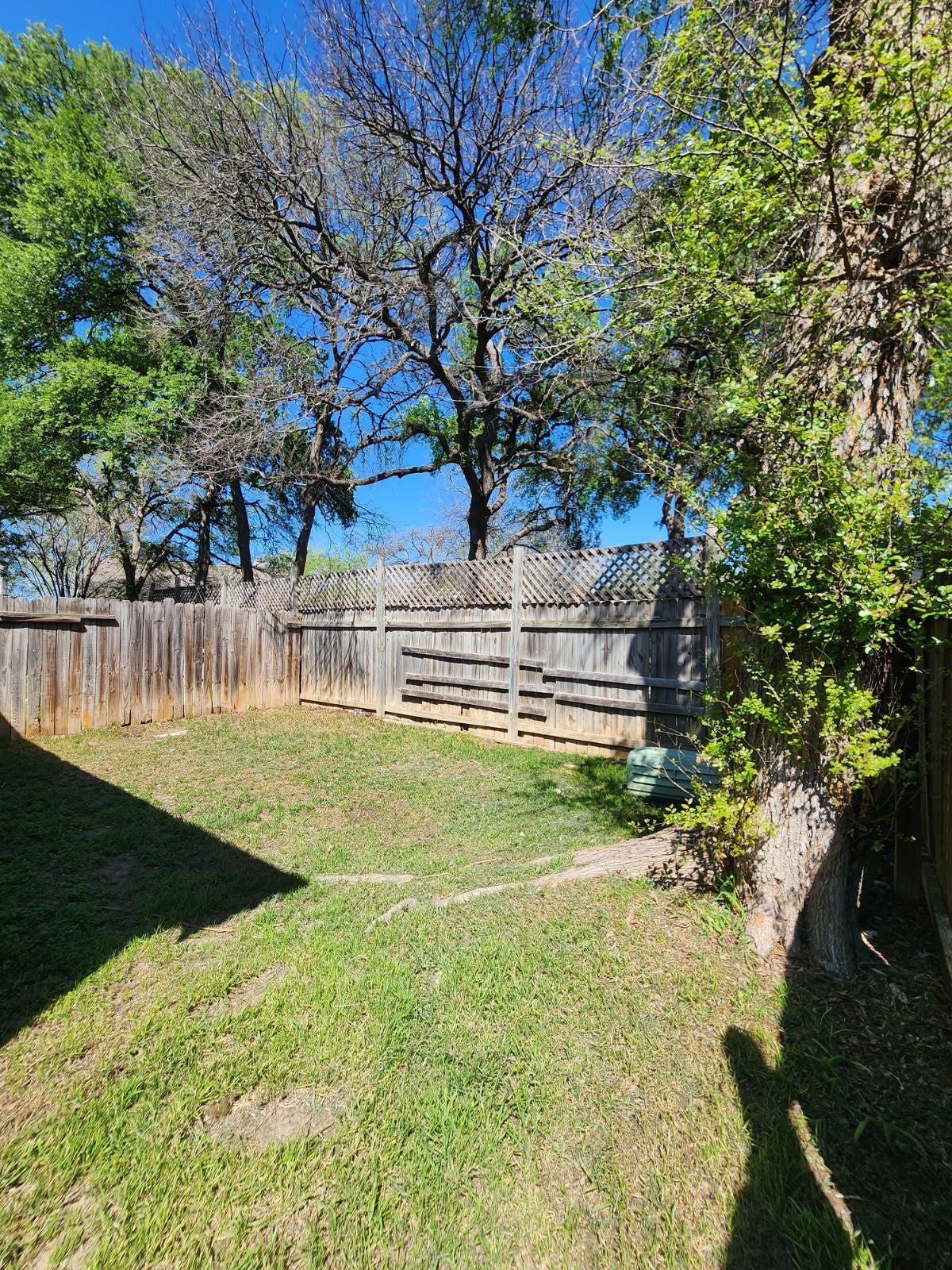 Well maintained unit with 2 beds, 2 full baths and a private fenced yard. No carpet - tiled flooring throughout, ready for move-in. Bright, open living area with vaulted ceilings and fireplace. Attached single-car garage with washer/dryer connections. Located near Tanglewood Forest Park, Pool, Kocurek Elementary, Southpark Meadows and more!
