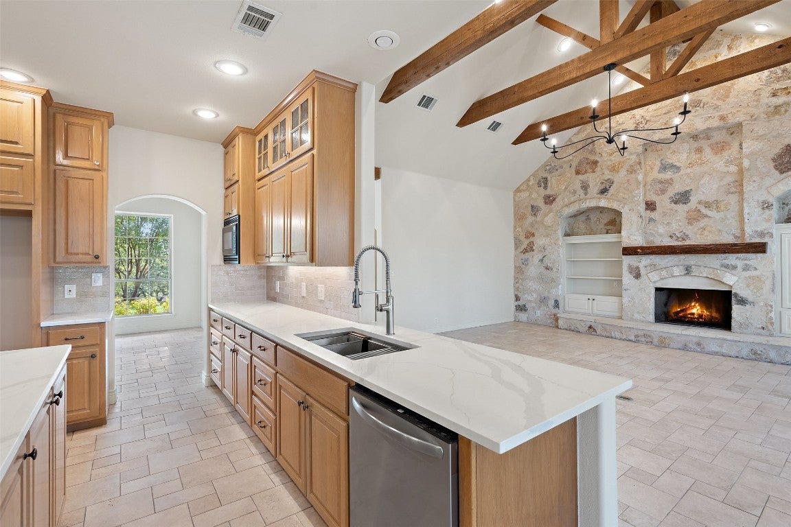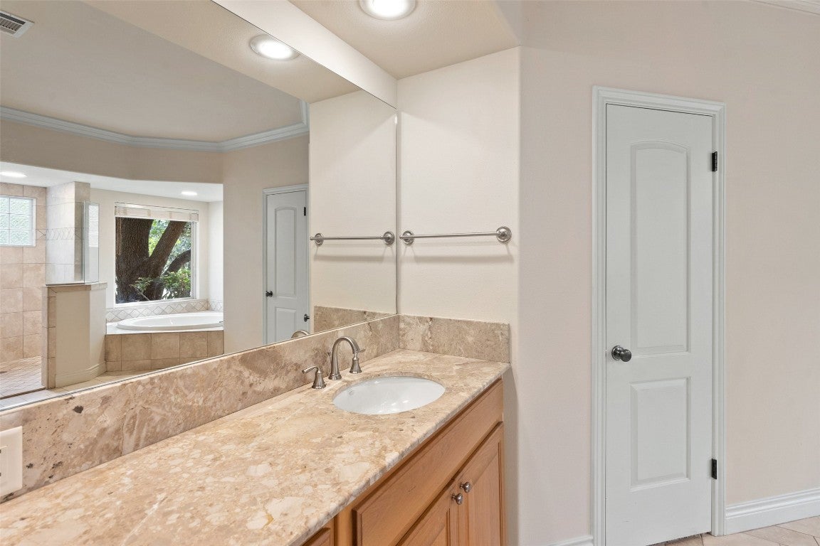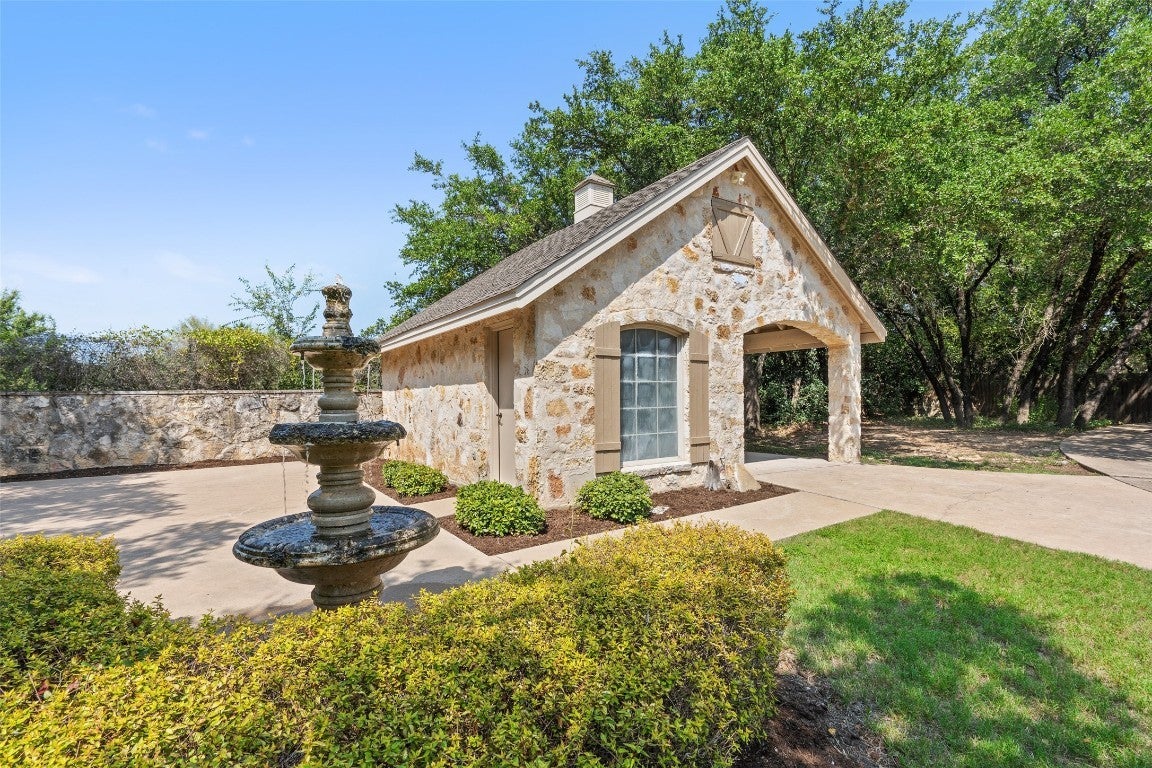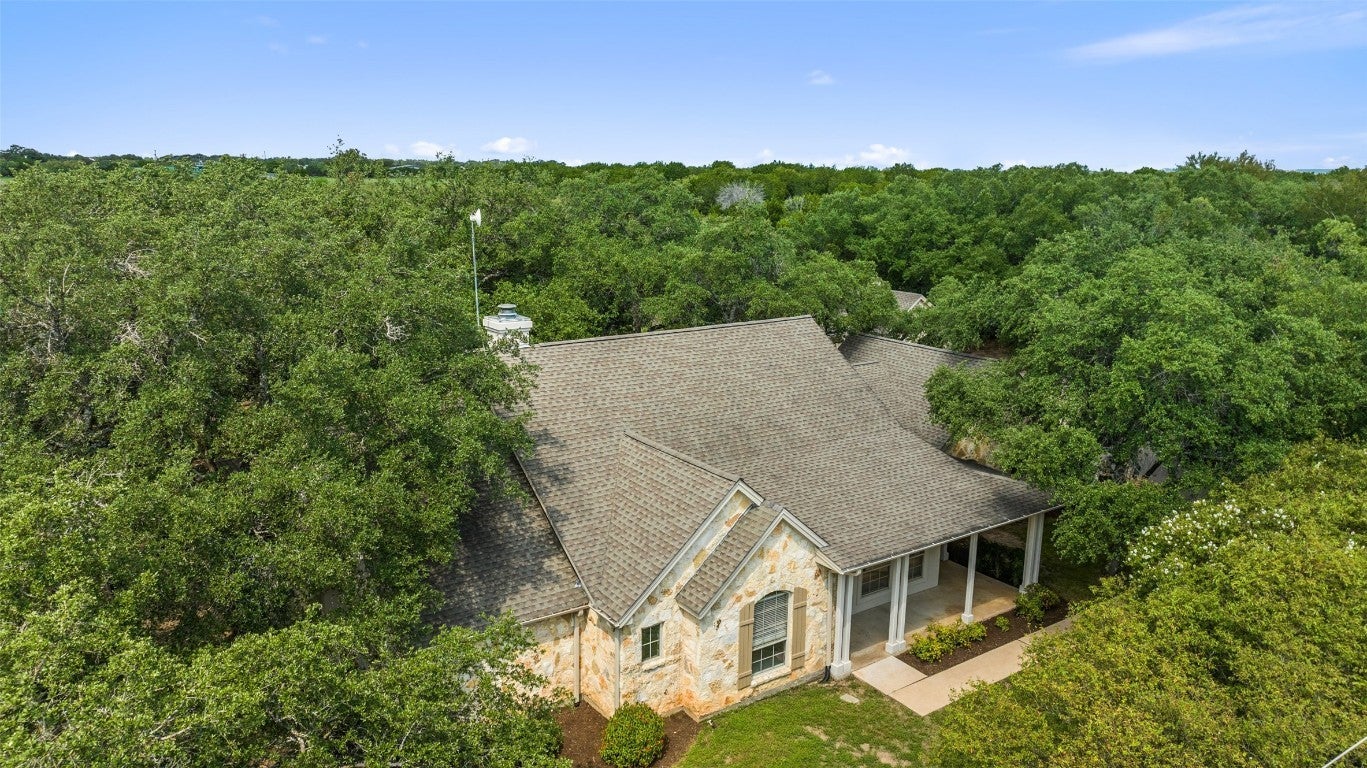 Welcome to this immaculate, craftsman-built, single story home located on a fully high-fenced property that greets you with a stunning 7ft tall stone clad gated entry leading to your primary residence on a meticulously landscaped .754 acre lot with over 50 mature oak trees. Adjacent to a generous .656 acre park-like lot that is uncommonly private, with a peaceful nature setting enchanted with over 80 mature oak trees.This additional lot provides the ability to build out additional structures for your extended family and out of town guests, a home business, a children’s wonderland of treehouses and bike trails, start your own sustainable garden, or benefit from your investment by selling the additional lot. This move-in ready gem offers 4 bedrooms, 2.5 bathrooms, with the 4th bedroom offering flexible use as a home office and a stunning gourmet kitchen with custom touches, perfect for entertaining. The living room boasts beautiful beamed ceilings, a striking stone-clad wall, and a cozy fireplace. The spacious primary suite includes two walk in closets, a garden tub, and separate shower. Step outside to the covered back porch overlooking an expansive landscaped yard, ideal for relaxation. Additional features include a separate carport, insulated workshop, and tasteful finishes throughout. For outdoor enthusiasts this property offers multiple options within 2-3 miles: private marinas to both store and launch your boat, 654 acres of parkland with 9 miles of mountain bike trails at Muleshoe Bend Recreational Park on Lake Travis, 3 highly acclaimed professional golf courses, weekly Farmer’s markets, natural springs, and a private airport with hangers on-site. These two extremely rare lots offer the best of Hill Country living with peace and quiet, yet are conveniently located for easy access to Marble Falls, Bee Caves, and Austin. Don’t miss this unique opportunity to own a piece of paradise in Spicewood, TX!