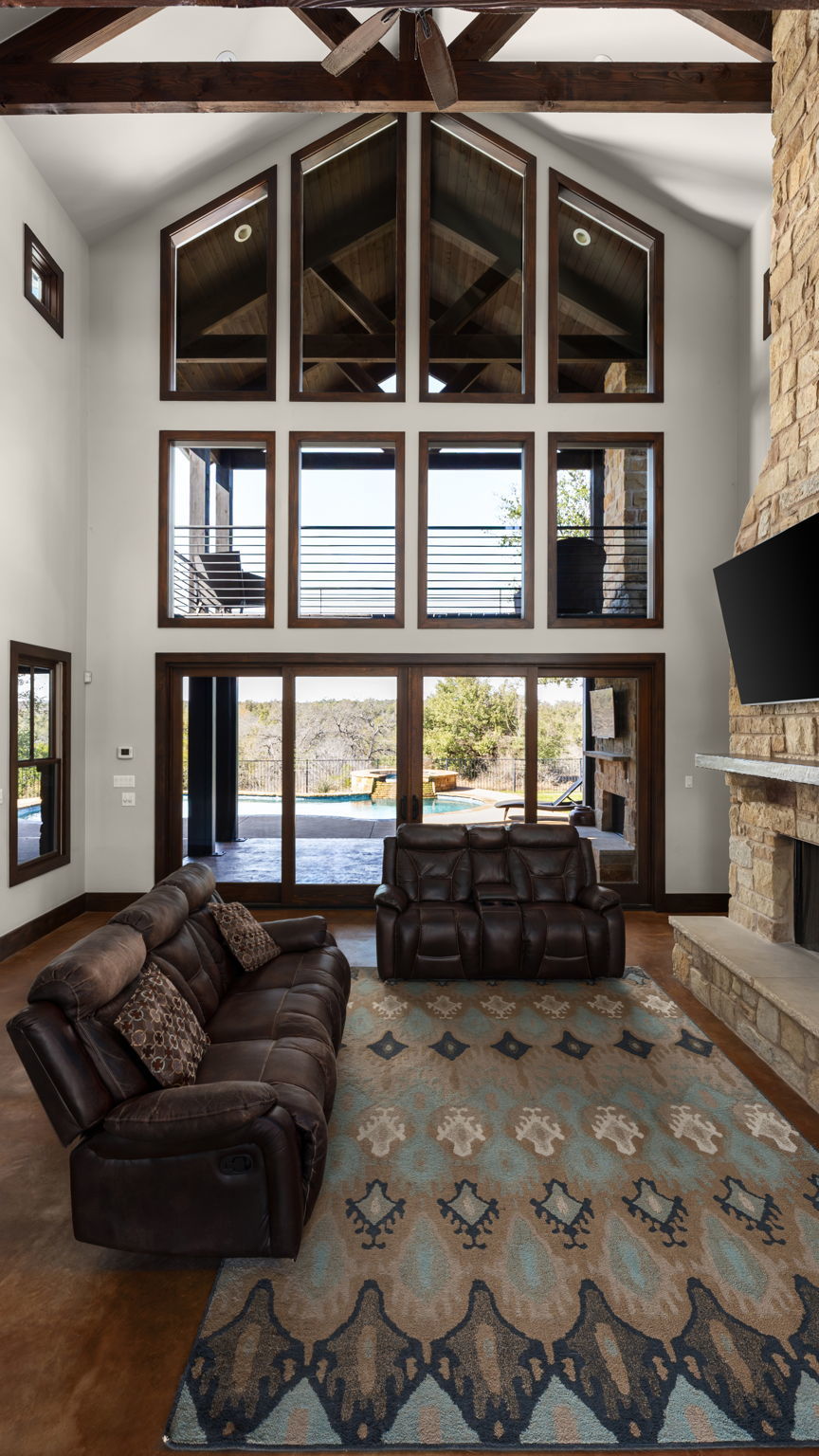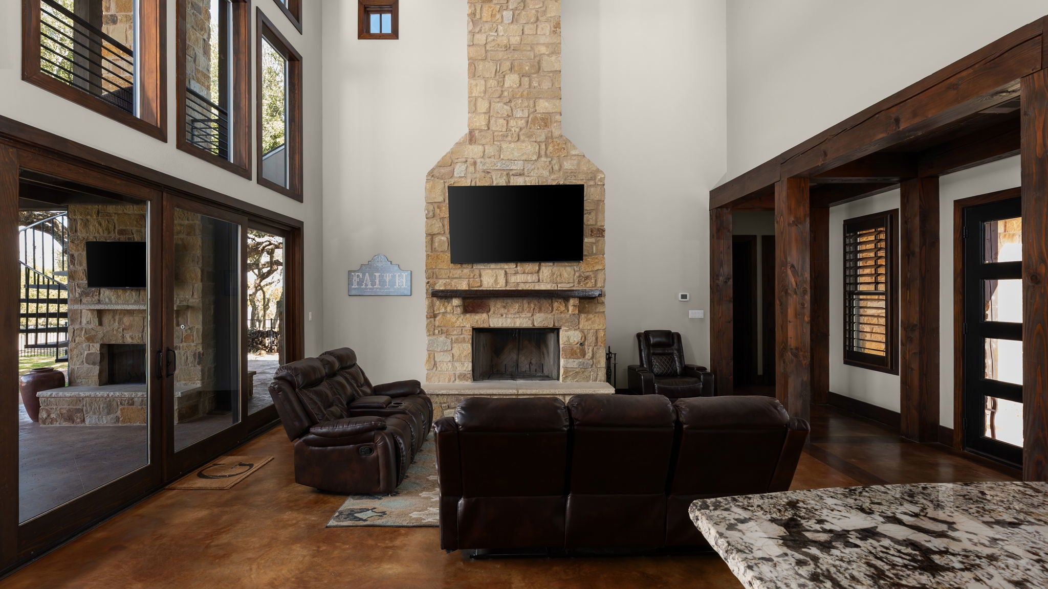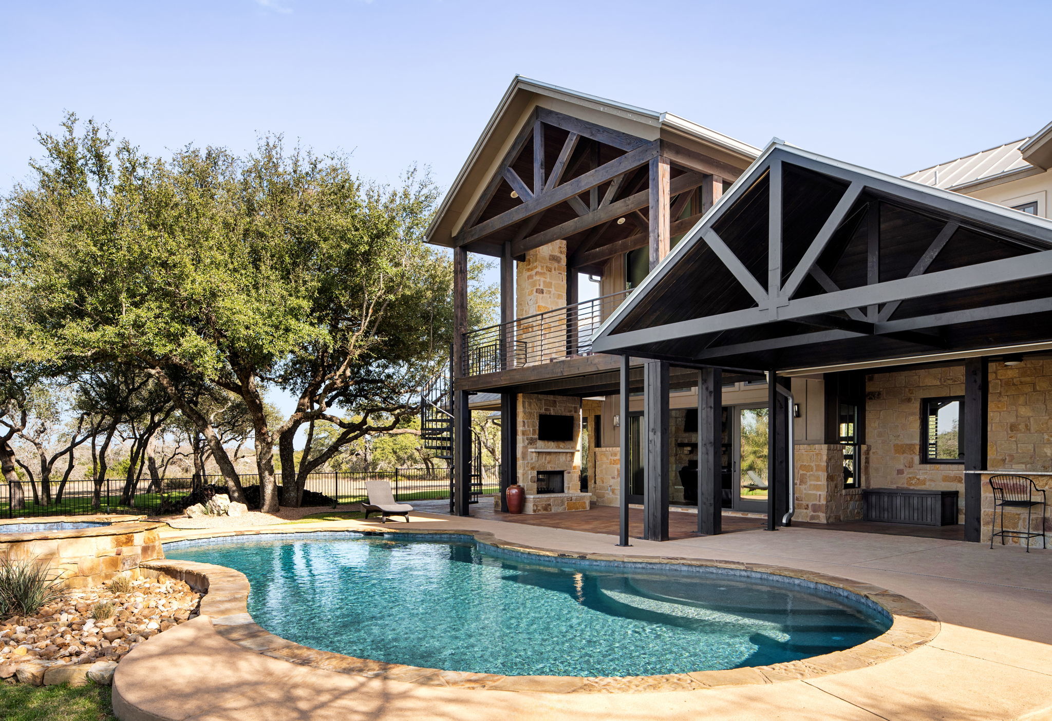 Nestled on a tranquil 2.13-acre lot at the end of a quiet cul-de-sac in coveted Creek Road Ranch, this property is more than a home — it’s a retreat. Wake each morning to gentle breezes rustling through mature native trees and the quiet rhythms of Hill Country life. Enjoy wide-open sky views, rolling pasture vistas, and the sense of space that only truly private, rural living can provide — all just minutes from the vibrant town of Dripping Springs. The outdoor living is designed for both quiet evenings and effortless entertaining, featuring a resort-style pool, expansive covered patios with exposed steel trusses, an outdoor kitchen, and a stunning stone fireplace — all set beneath mature oaks with sweeping Hill Country views. Inside, custom craftsmanship shines through soaring ceilings, dramatic walls of glass, rich wood beams, hand-selected stonework, and a chef’s kitchen anchored by an oversized granite island and premium appliances, creating a seamless blend of refined comfort and rustic elegance.