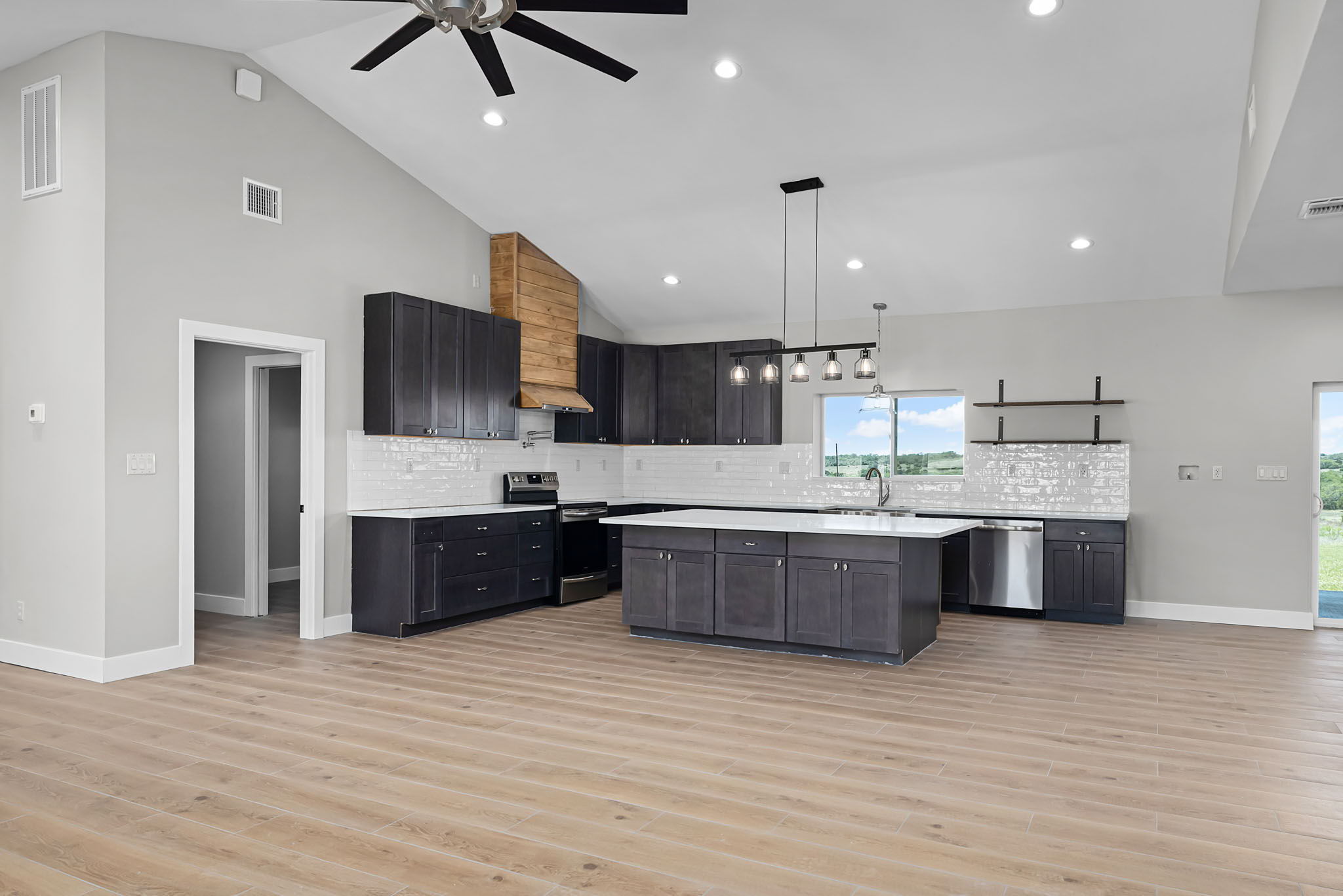 Welcome to 12935 PR 3541—an elegantly designed retreat nestled on 10 peaceful acres in the gated community of Pecan Creek Ranch. This thoughtfully built home offers over 4,100 square feet of refined living space, constructed with ICF (Insulated Concrete Form) walls for superior energy efficiency, durability, and year-round comfort. Inside, you'll find 4 spacious bedrooms, 3 full bathrooms, and a dedicated office space—perfect for working from home or accommodating guests. The heart of the home boasts an open-concept layout with two living areas, ideal for entertaining or creating multi-generational zones. The custom kitchen includes striking cabinetry, a large center island, modern finishes, and sweeping views of the Hill Country landscape. Retreat to the private primary suite with tranquil views and direct patio access. The additional bedrooms are generously sized, with intentional layout separation for function and flow. The home’s finishes blend modern farmhouse charm with timeless design—from wide-plank flooring to custom wood accents and soft neutral tones throughout. Step outside to enjoy the wide Texas skies and room to roam. The property features a two-bay shop with electricity available, ideal for hobbies, projects, or extra storage. On a private well, and within a road-maintenance HOA, you’ll enjoy the perks of country living with community support. Located in Lampasas ISD and just minutes from town amenities, this home offers the perfect balance of serenity and access. Whether you're dreaming of a forever home, hobby farm, or hill country escape—this one is move-in ready and built to last.
