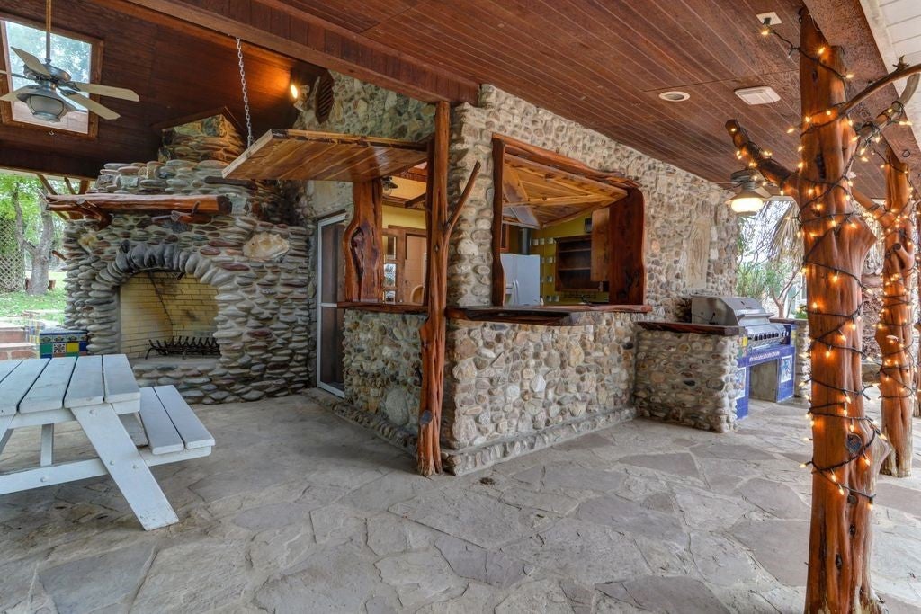 Prime location off I-35N & Watson, b/t SA & Austin. NO HOA! Light commercial (STR, event venue) allowed; full commercial potential. Upon entering gates, tree-lined drive leads to beautiful 18ac oasis w/ unique ranch style home (clubhouse/event venue/community center) & countless amenities. Among said amenities: 3 full kitchens, gym w/sauna, 4 indoor fireplaces & 1 fireplace in pool house, with full kitchen, dining area & half bath; green house, barn w/ tack room, pole barn, stock pond. Event/entertainment room and full bar area. Gorgeous finishes w/ 20â vaulted ceilings & skylights throughout. Hot tub incl'd. Besides various multi-purpose rooms, a particular blank slate would boast an incredible media room - or competition size racket ball court. Whatever you can dream up, it's ready to come to life! The stock pond hosts various wildlife. With a 4-stall barn, tack room & round pen, it's perfect for horses, but suitable for just about any livestock. Ag friendly. ***Gym equipment, furniture, patio furniture all negotiable.