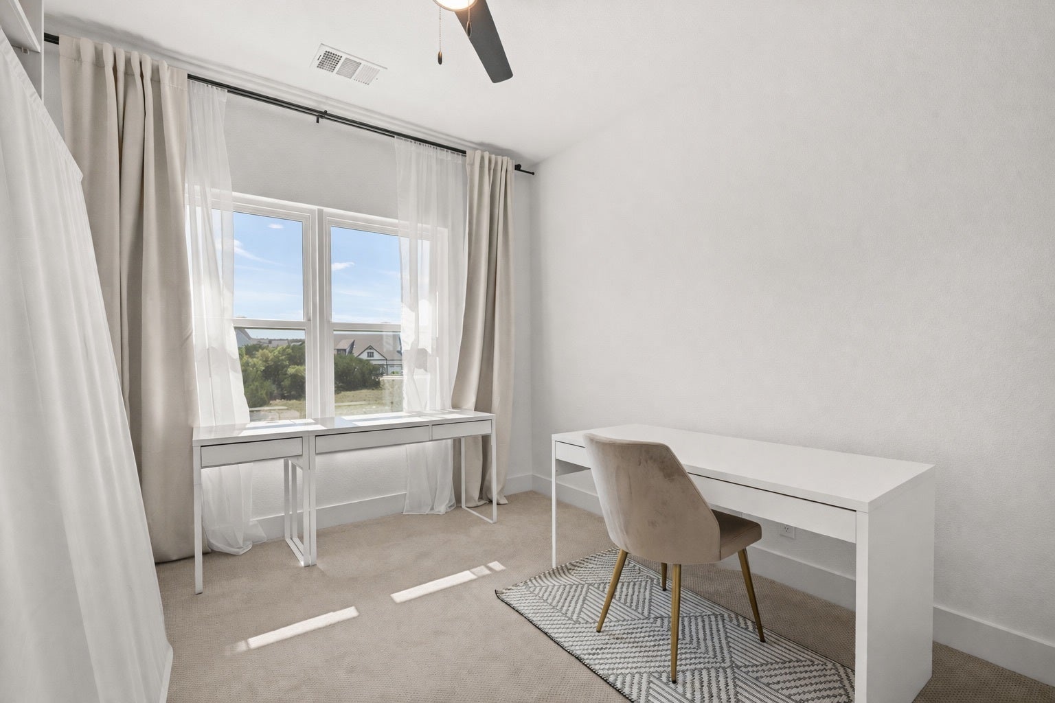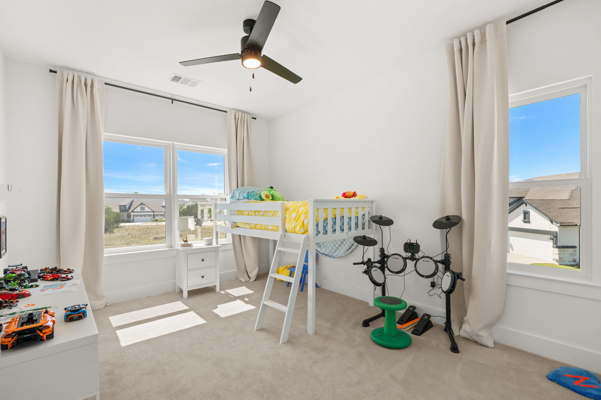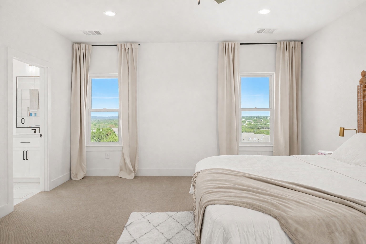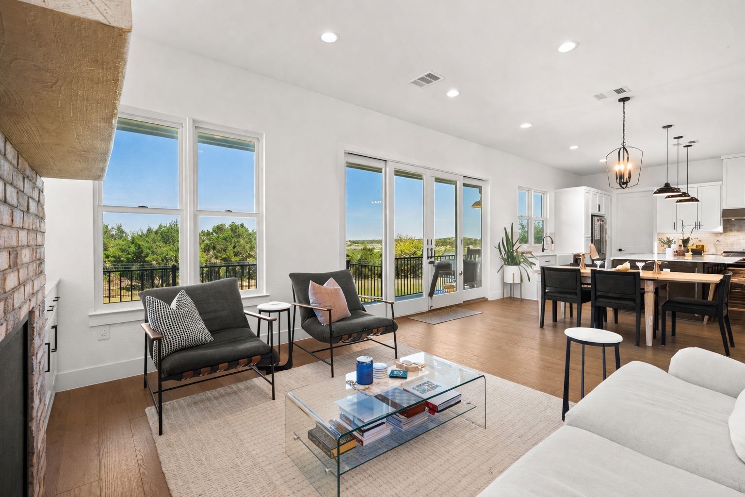 Perched gently atop a hill on a quiet circle street, this soft farmhouse in Headwaters captures the essence of serene Hill Country living in Dripping Springs, TX. From the moment you arrive, there’s a sense of calm—wide skies, rolling hills, and a welcoming community that feels both connected and private. This coveted, custom-built section of Headwaters is at the top of the hill of this gorgeous community, where lots are larger and the views are vast. Set on an oversized corner lot and backing to peaceful greenspace, this five-bedroom home offers rare privacy with no neighbors behind, creating a backyard retreat where mornings begin with coffee and views, and evenings wind down under open Texas skies. Inside, tall ceilings and grand yet inviting spaces strike a balance between openness and warmth. The main living area, anchored by a fireplace, flows effortlessly into the kitchen and dining spaces, all framed by relaxing greenbelt views. Designed for both everyday living and flexibility, the home features a true guest suite, a dedicated office, and three separate living areas—perfect for gathering, working, or simply spreading out. Upstairs, a spacious second living room is surrounded by generously sized bedrooms, while the primary suite offers a spa-like escape with room for a private sitting area. Life in Headwaters means more than just a beautiful home—it’s a lifestyle. Residents enjoy access to resort-style amenities including a pool, splash pad, scenic trails, fitness center, gathering pavilion, and a charming WiFi cafe; with fresh coffee. Located within the highly sought-after Dripping Springs ISD, with access to top-rated, award-winning schools and a brand-new campus, this home offers both tranquility and opportunity. For buyers searching for homes in Dripping Springs TX, The Hilltop at Headwaters is where natural beauty, thoughtful design, and vibrant community come together in one unforgettable place.