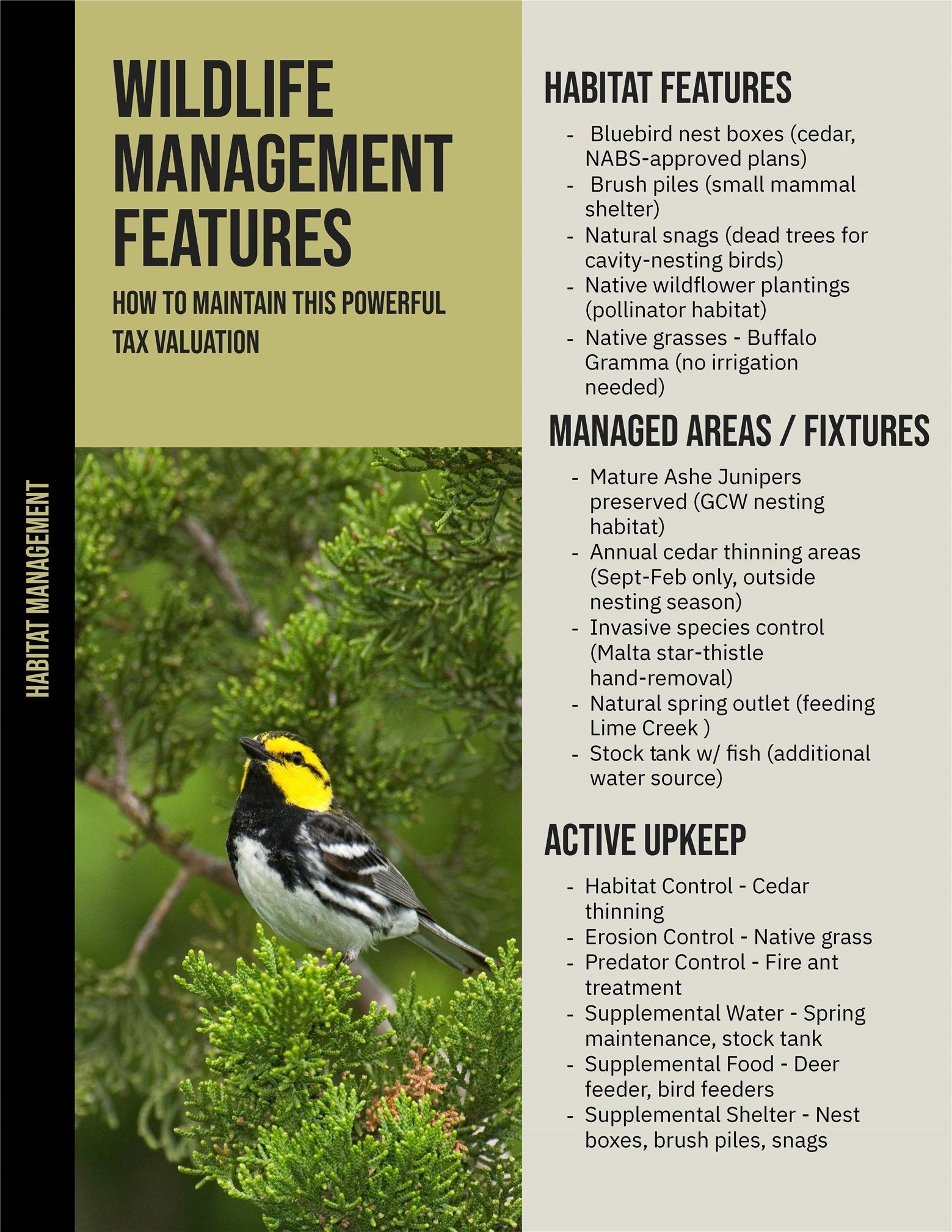 WireRoadRanch.com — OFF-GRID CAPABLE, 100% ELECTRIC HILL COUNTRY ESTATE. 8 minutes from HEB, 11 minutes from Costco, light years away from ordinary. Tucked into 13.68 secluded acres of Texas Hill Country along Lime Creek, this ARCHITECT-DESIGNED, ENGINEER-BUILT property was crafted from the ground up for self-sufficiency, refined comfort, and serious outdoor living. At 2,047 sq ft, every single square foot earns its keep — the architect designed this home with ZERO WASTED SPACE, so it lives far larger than the numbers suggest. The centerpiece? A climate-controlled 1,500 sq ft automotive workshop with full utilities, 19' vaulted ceilings, vehicle lift, and 200A service — deliberately engineered to retain every inch of floor space WHILE accommodating a future 1,500 sq ft mother-in-law suite above. Finish it out when you're ready and take this property to 3,547 SQ FT OF LIVING SPACE without sacrificing any workshop or parking space. The property delivers 24kW of solar (net-positive production, battery-ready Enphase architecture), a 20,000-gallon UV-sterilized double-filtered rainwater system, and a backup well. NO GAS BILL. NO WATER BILL. NO ELECTRIC BILL. Catch your water, make your energy. Spend lazy days beside an expansive sparkling diving pool and 12-person spa. Expand your domain with TWO ADDITIONAL HOMESITES, the highest with 10-MILE VIEWS. Your financial crown jewel is a battle-tested Wildlife Tax Valuation slashing property taxes 90% TO JUST $1,800/YEAR — saving you $18,000 annually, forever. No shortcuts, no compromises. This is a legacy property built by an engineer who planned to raise his family there forever, expanding gradually to accommodate extended family. But life had other plans. NOW IT'S YOUR GAIN.