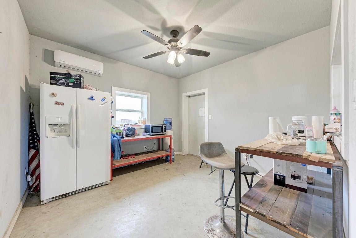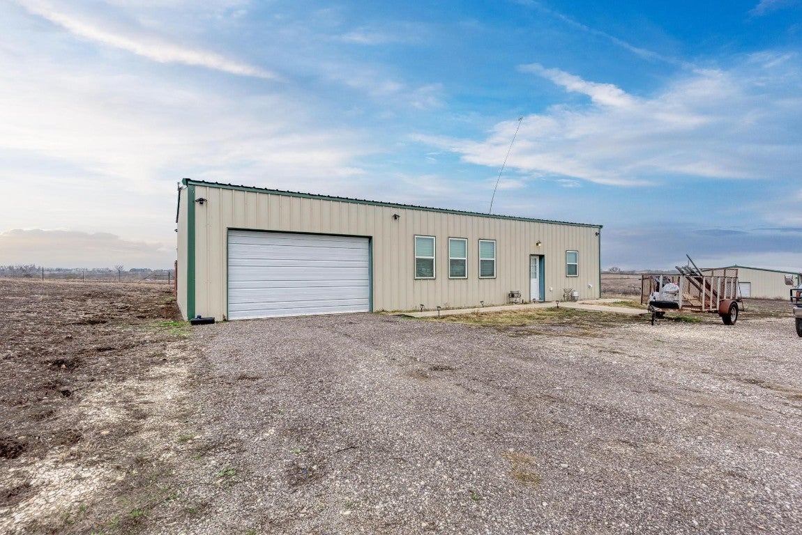 Must see this Ag exempt 10 acre property. It features a fenced 1200 SF 2/1 barndominium with high ceilings and a huge 600 SF of garage with front and back roll up doors. Also has a RV hookup and transfer switch for generator hookup in case of power outage. This unit is currently under a signed leased agreement. North of barndominium is a 3200 SF foam insulated metal building currently used as a welding workshop. This building has an office room, a separate bathroom and break area. It also has a 20x20 attached covered storage to the rear of the building that is covered under back canopy. 1600 SF of Canopy space in front of building and 1600 Sf of Canopy space in back. Adjacent to the workshop is another 50amp outlet for and RV. Also, potential space for additional RV. Speak with agent for more information about infrastructure for other potential use. Showing by appointment only. 24 hours notice. Tenant in Barndominium.