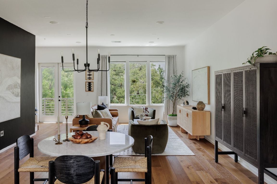 LAAN Residence No. 6 is a sophisticated, light-filled modern 3/3.5 home tucked within one of 78704’s most architecturally curated secluded communities with stunning pool and dog park. Impeccably finished and ideally positioned, this three bedroom three and a half bath residence offers refined living across three thoughtfully designed levels, just minutes from South Lamar and Zilker. The first floor features a private en suite bedroom that can serve perfectly as a guest retreat, home office, or flexible studio space. Upstairs on the second level, sunlight pours into the open concept living, dining, and kitchen areas. A crisp white chef’s kitchen with quartz countertops, Bosch appliances, and an oversized island anchors the space, while a sleek powder room and wide plank wood flooring wrapping all spaces elevate the overall design. The third level is dedicated to rest and privacy. The primary suite is a true sanctuary, serene and expansive with treetop views. The ensuite bath stuns with an oversized soaking tub and wet room, dual vanity, and a glass enclosed walk-in shower creating a spa-like atmosphere. An additional guest suite with its own private bath completes the top floor. Set within a private, tree lined enclave, LAAN Residence No. 6 offers access to exceptional community amenities including a beautifully designed pool, sprawling dog park, and landscaped walking paths and guest parking. A two car parking setup and dedicated laundry space provide everyday ease and convenience within the residence itself. This is design forward living in the heart of Austin, where every detail has been carefully considered.