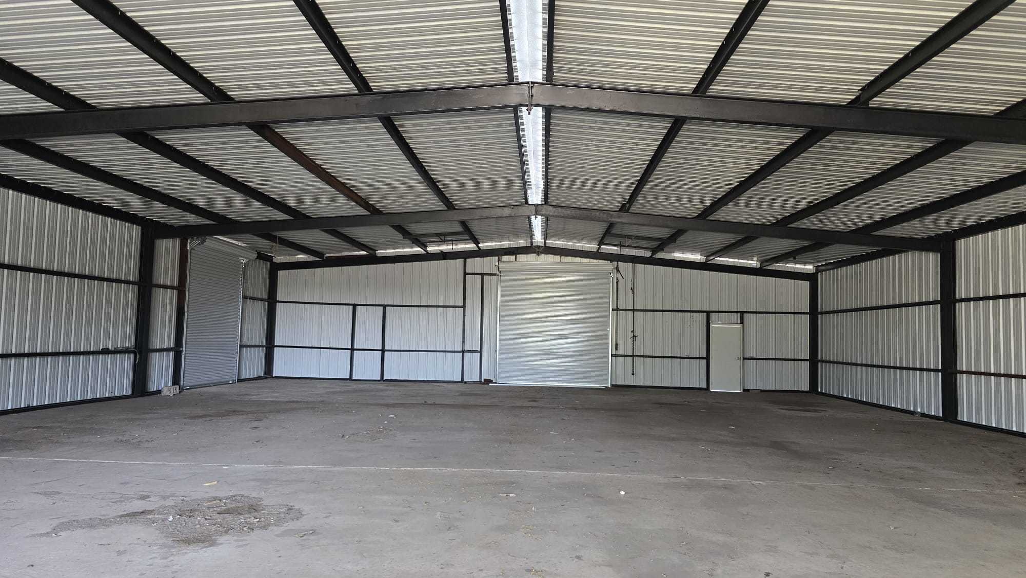 Newly renovated 6,000 sq ft fully enclosed metal building for rent. Perfect for contractors, mechanics, fabrication, equipment storage, landscaping companies, or small business operations. Features - Newly Renovated (2026) - Length - 100 ft - Width - 60 ft - New walls & roof - Four roll-up doors: - 2 × 10×12 (front) - 2 × 12×14 (side) - Standard power - Gravel driveway with easy truck/trailer access - Wide open layout - Plenty of outdoor space for parking or materials - Fencing can be added if needed Great For - Contractors, auto/diesel repair, welding/fab, equipment storage, landscaping crews, warehouse use, light manufacturing, distribution, farm/ranch storage. - Long-term tenants preferred. Improvements negotiable.