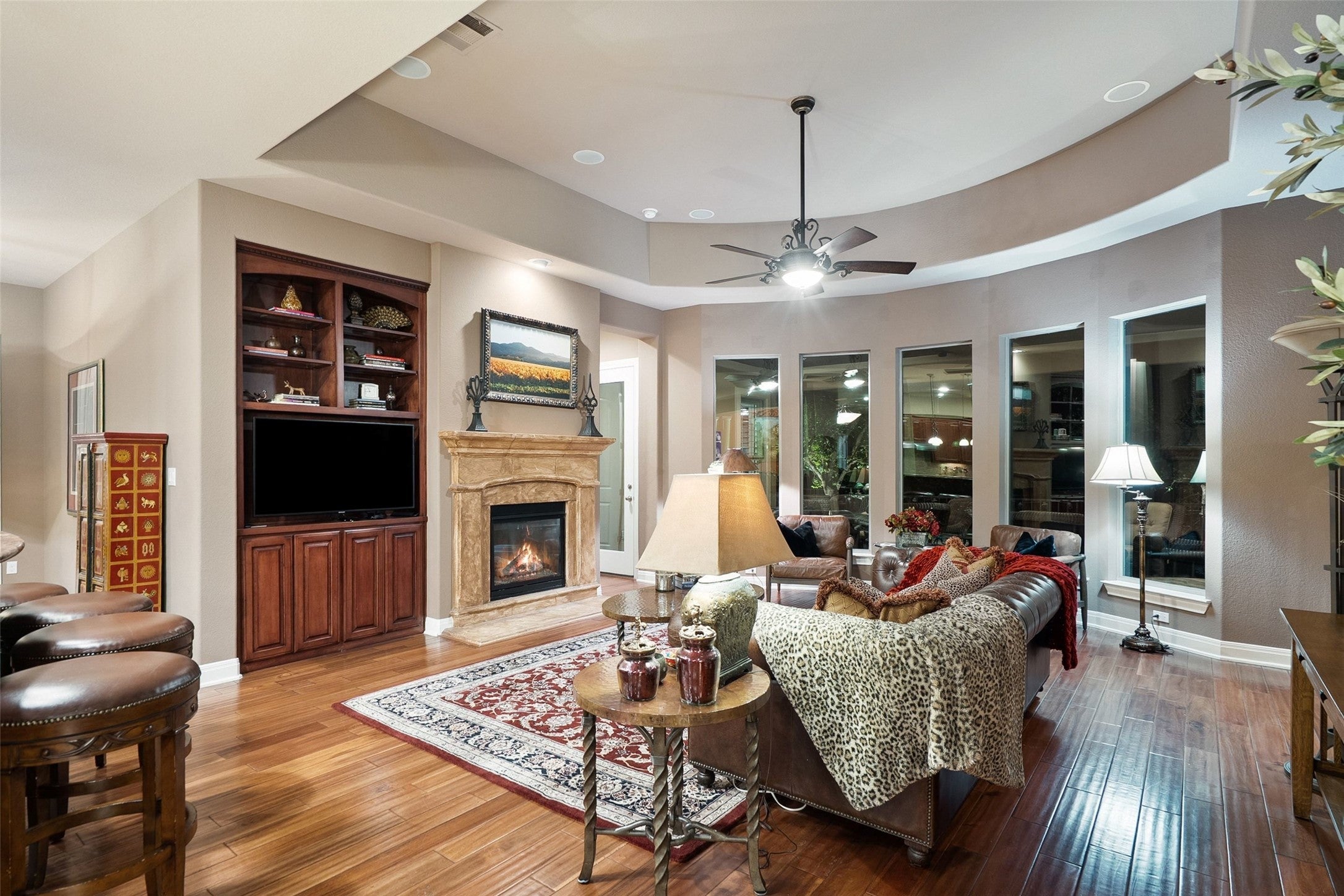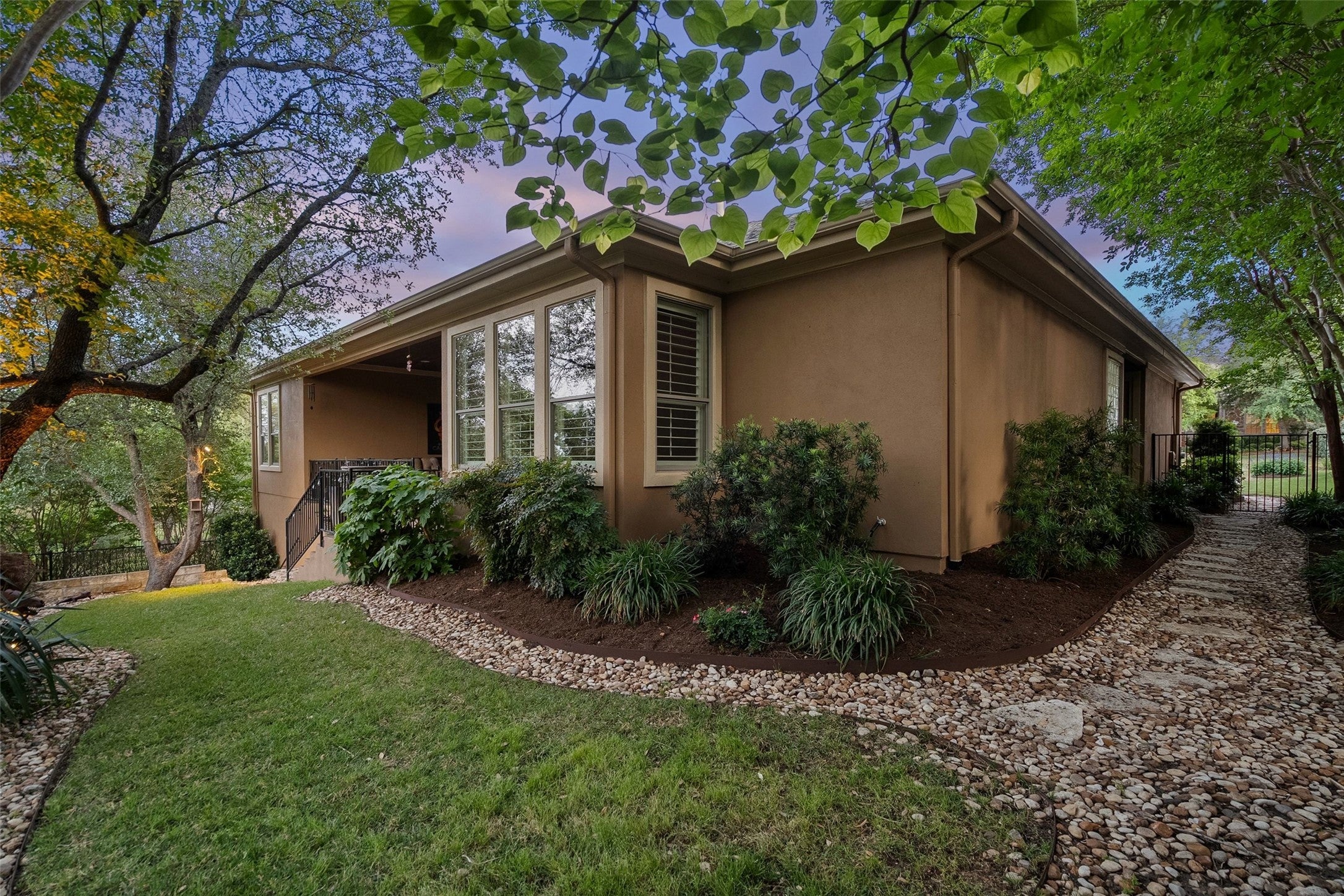 Welcome home to Falconhead West, nestled in the heart of the Texas Hill Country, where scenic beauty meets everyday convenience. Built in 2009 by Taylor Morrison, this stunning single-story residence offers approximately 3,163 square feet of thoughtfully designed living space, blending timeless style with modern comfort. From the moment you step inside, you’re greeted by an inviting foyer and a dedicated home office—perfect for today’s flexible lifestyle. The expansive open floor plan seamlessly connects the main living areas, creating an ideal setting for entertaining and relaxed daily living. At the center of the home, the chef-inspired kitchen features granite countertops, stainless steel appliances, a generous center island, and a spacious walk-in pantry. It flows effortlessly into the breakfast area, formal dining space, and a warm living room anchored by a cozy fireplace. The private primary suite is tucked away at the rear, offering a peaceful retreat with a spa-like bathroom including dual vanities, a soaking tub, walk-in shower, and an oversized walk-in closet. Three additional bedrooms provide comfortable accommodations for family or guests, each with ample space and natural light. A three-car garage and abundant storage enhance everyday functionality. Step outside to enjoy indoor-outdoor living with two patios—one overlooking a serene, wooded backdrop within the fenced backyard, perfect for relaxing or entertaining. Residents enjoy access to parks, playgrounds, hike and bike trails, and nearby schools. Just minutes away are premier shopping, dining, golf, tennis, and Lake Travis. With downtown Austin only 17 miles away, Falconhead West offers the perfect balance of tranquility and accessibility in a highly sought-after Bee Cave community.