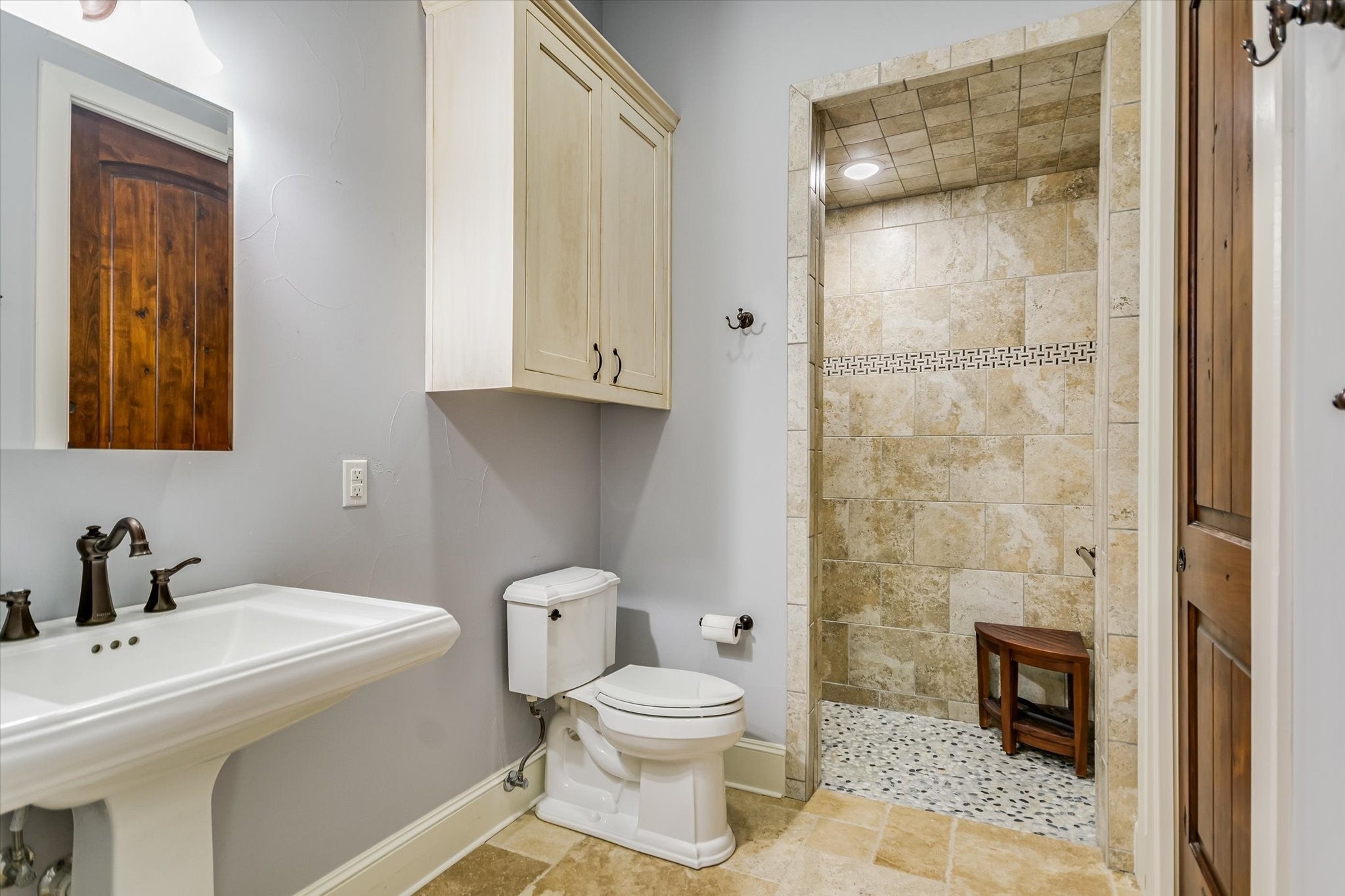 Multi-Generational Living in a gated community. This builder’s personal home, situated on 1.001 acres and nestled within a mature landscape, is a stunning limestone ranch-style home that boasts timeless beauty, classic charm, and contemporary comfort. You’ll be greeted onto the estate by mature oaks and a long driveway leading to the oversized extra deep 3-car garage and attached apartment. Inside, you’ll fall in love with the abundance of natural light and spacious interior. There are generously sized bedrooms, welcoming common areas, office space with wood floors, and a private upstairs game room. The gourmet kitchen has a huge island, granite countertops, a KitchenAid commercial-grade oven, and a 4-burner propane stove with a griddle. There is Travertine flooring throughout except in the office and carpeted bedrooms. This home is truly an oasis of luxury with exquisite finishes and thoughtful designs. A spacious (approximately 775 square foot) apartment offers a private entry, full bathroom, kitchen, laundry room, and covered patio. Perfect for guests, extended family, multi-generational living, or a quiet workspace, this apartment provides flexibility and convenience for the modern-day lifestyle. Don’t miss the opportunity to make this extraordinary Georgetown property your home.