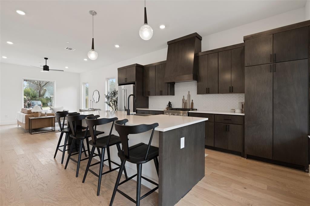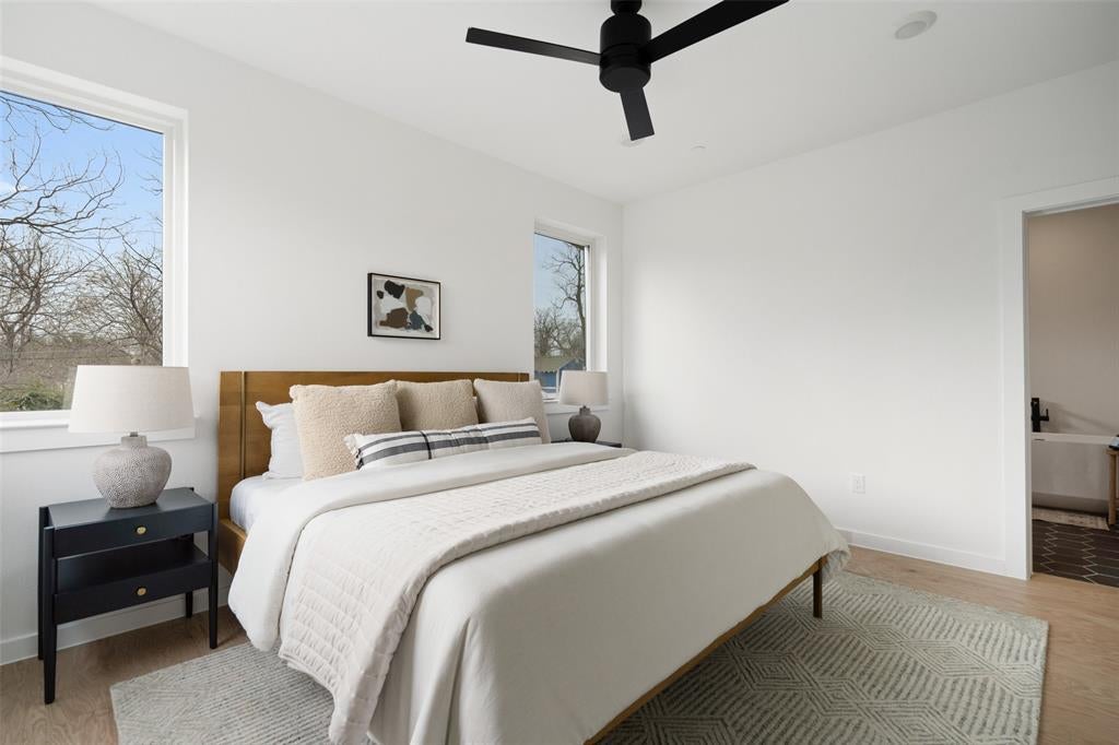 AVAILABLE 7/1 - Modern design meets unbeatable central Austin convenience in this stunning 4-bedroom, 3.5-bath home just moments from Hancock Center. Thoughtfully designed with clean architectural lines and high-end finishes throughout, this light-filled residence offers an open-concept floor plan with soaring ceilings, wide-plank hardwood floors, and expansive windows that flood the space with natural light. The chef’s kitchen is a true showpiece, featuring custom dark cabinetry, sleek quartz countertops, premium stainless steel appliances, gas range, oversized island with seating, and abundant storage. Spacious living and dining areas flow seamlessly to the covered back patio, creating the perfect setup for entertaining or relaxing. The primary suite is a private retreat with oversized windows, spa-inspired bath, and generous closet space. Secondary bedrooms are well-sized, with flexible options for guests, office, or playroom. A bonus loft/study area adds even more versatility for today’s lifestyle. Set on a large, fenced lot with a beautifully landscaped yard and mature trees, this home offers rare outdoor space in one of Austin’s most desirable central neighborhoods. Enjoy walkable access to Hancock Center shopping, dining, parks, and quick connectivity to UT, Downtown, Mueller, and major thoroughfares. A stylish, turnkey home in an unbeatable location.