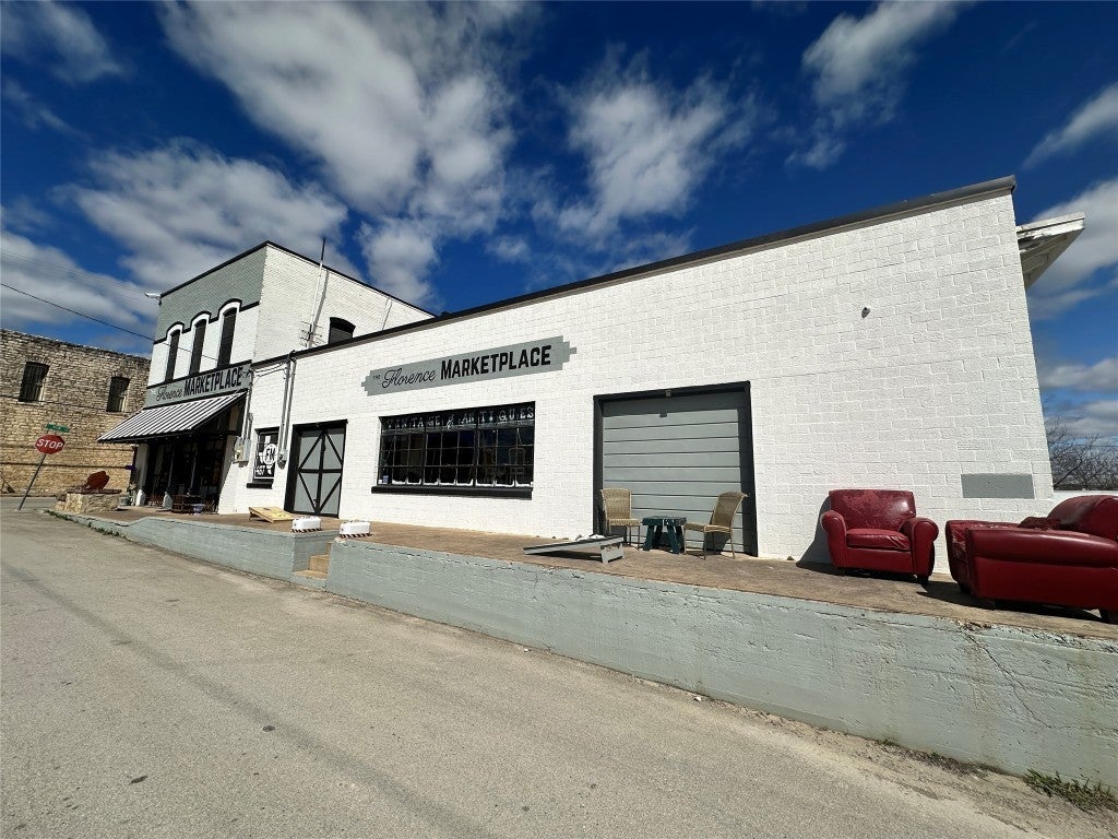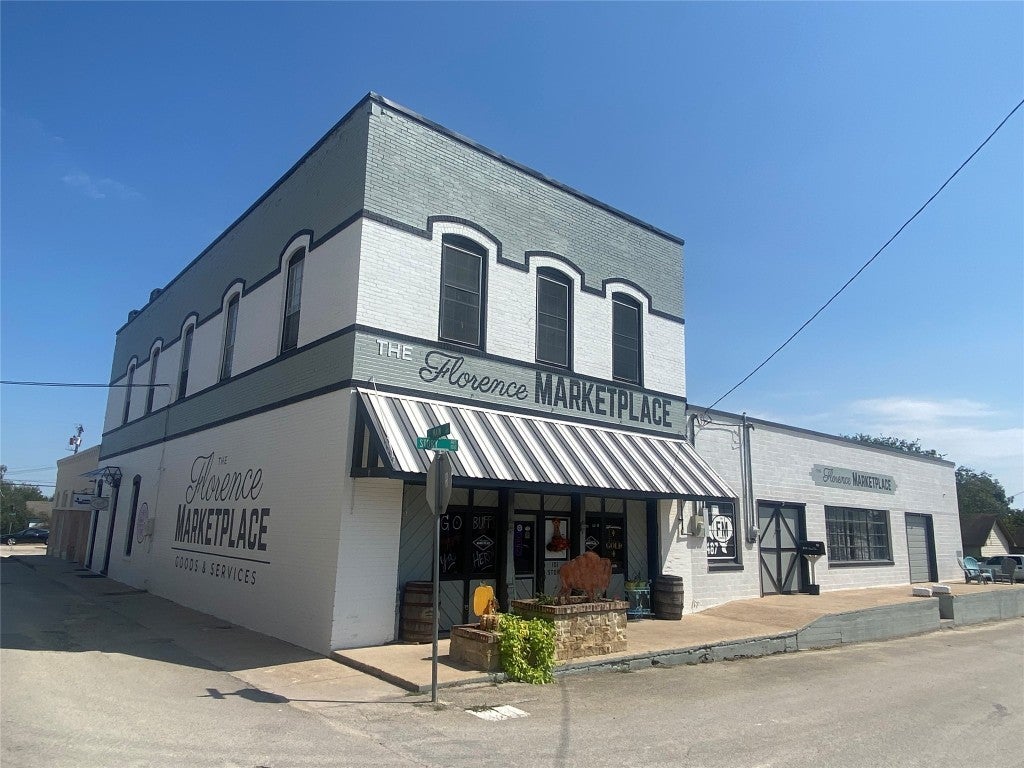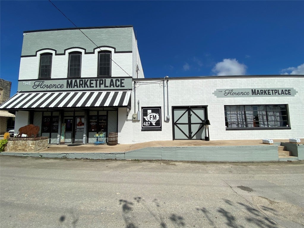Unique opportunity to own a downtown corner building in one of the fastest growing areas in Texas! Small town feel with easy access to Austin, Georgetown, Cedar Park, Leander, Killeen and the entire Central Texas area. A true Main Street experience with desirable live/work opportunities located in the Central Business District. Take part in holiday and Main Street events or lease the retail spaces and spacious warehouse as you see fit. This surprisingly efficient historic building (originally a Post Office), featuring gorgeous original tin ceiling tiles, is in solid condition with recent updates including roof+paint+fixtures+more! The attached lot offers room for parking and dock access, plus a fenced area previously used as a garden. Walking distance to local shops, bars, and restaurants; this building is an eye catching attention grabber that is ready for it's next chapter. Gorgeous 2000+SF apartment with separate entrance features hardwood floors and moldings, high ceilings, exposed brick, designer paint and period touches throughout! Updated bathroom and kitchen; All appliances included. Plus, roof access and panoramic views of the downtown and surrounding area; watch the area grow around you from the best vantage point in the most iconic building in Florence!