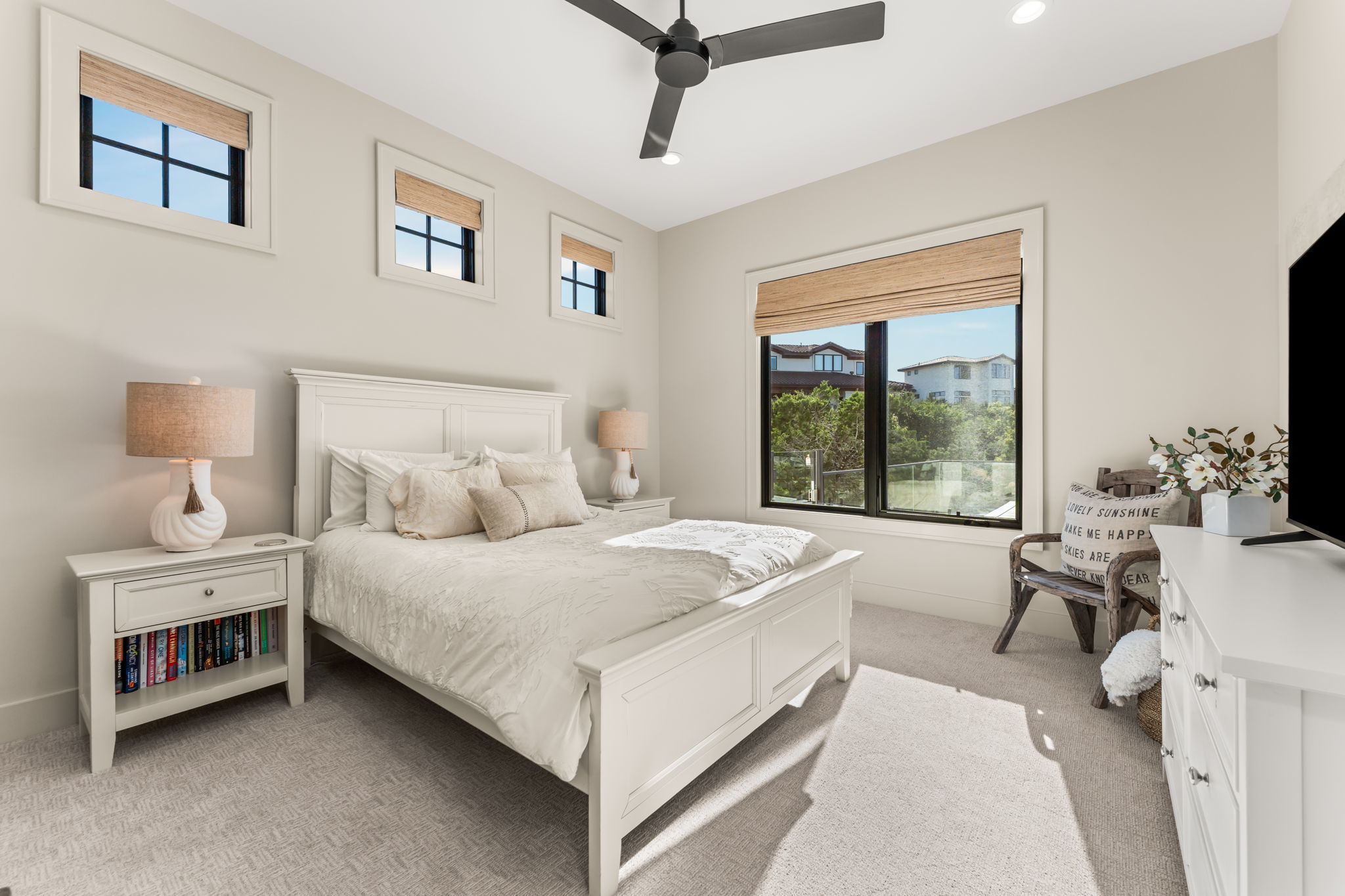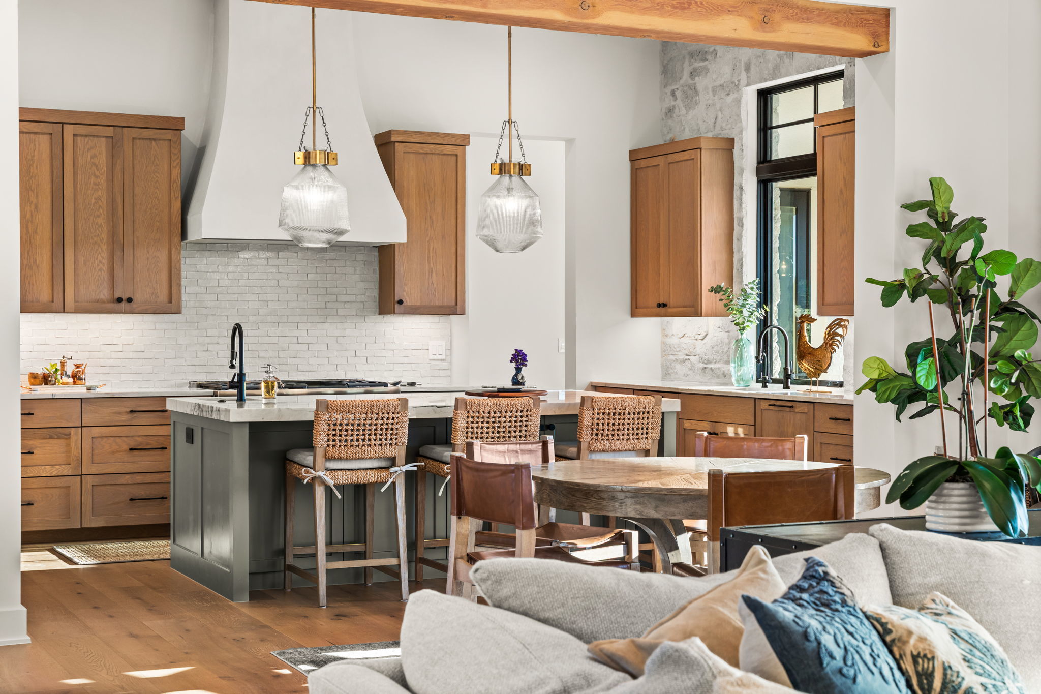 ASSUMABLE LOAN 3.375 Rate (to a qualified buyer). Completed in 2025, this custom-built home in the exclusive gated community of Spanish Oaks offers ~4994.17 sq. ft. of thoughtfully designed living space with 4 bedrooms, 4 full baths, & 2 half baths. Built with quality craftsmanship, high-end finishes, & attention to detail, the home combines comfort, function, & timeless design in a highly desirable setting. The main floor highlights an open floor plan with cathedral ceilings, a living room with a gas fireplace & oversized temperature-controlled built-in wine cabinet, & private office with built-in shelving. Two main-level suites, each with double vanities & walk-in closets. On the lower level, you’ll find two additional bedrooms, a gym/bonus room, & a bunk room with four built-in full beds, each with its own light & charging station, plus a wet bar with a sonic ice maker. A hidden door opens to a moody flex space suited for a playroom or creative use. Multiple living areas throughout the home provide space for both entertaining & retreat. Outdoor amenities include massive covered patio space, a large pool, spa, outdoor shower, built-in fire pit, pizza oven, & BBQs on both patios. A rock fountain at the entry adds a peaceful touch, while the orchard & raised garden beds offer seasonal harvests of fruit & vegetables. Hill Country & neighborhood views create a serene backdrop for stunning sunsets at the end of a quiet cul-de-sac. The 3-car garage is wired for a golf simulator & equipped with electric vehicle hookups.?Additional features include an in-home sound system (Sonos), exterior Ring cameras, outlets in the eaves for holiday lighting, genuine reclaimed wood siding, 3 dishwashers, & 2 laundry rooms. Double-insulated floors & added wall insulation enhance sound control throughout. Located in the Villas of Spanish Oaks, residents enjoy 24/7 gated security, award-winning amenities, all within the Lake Travis ISD.